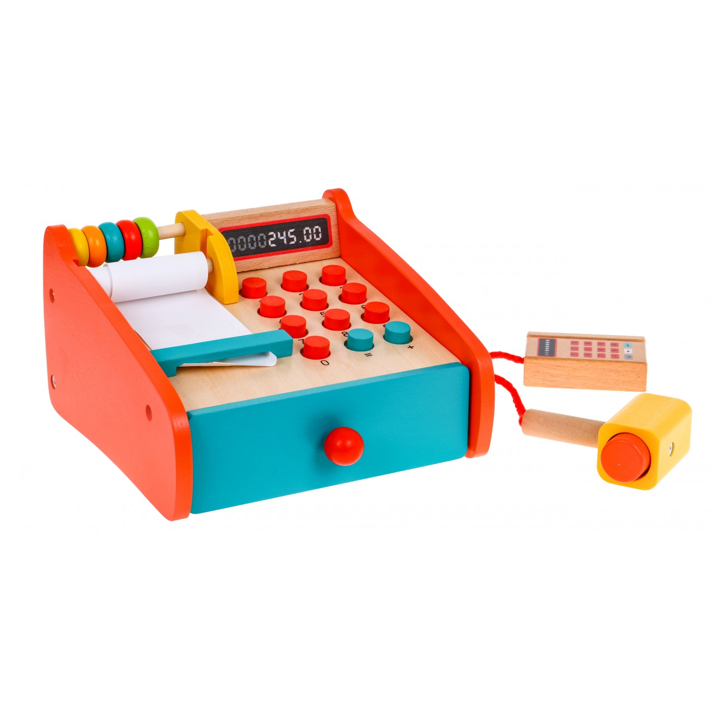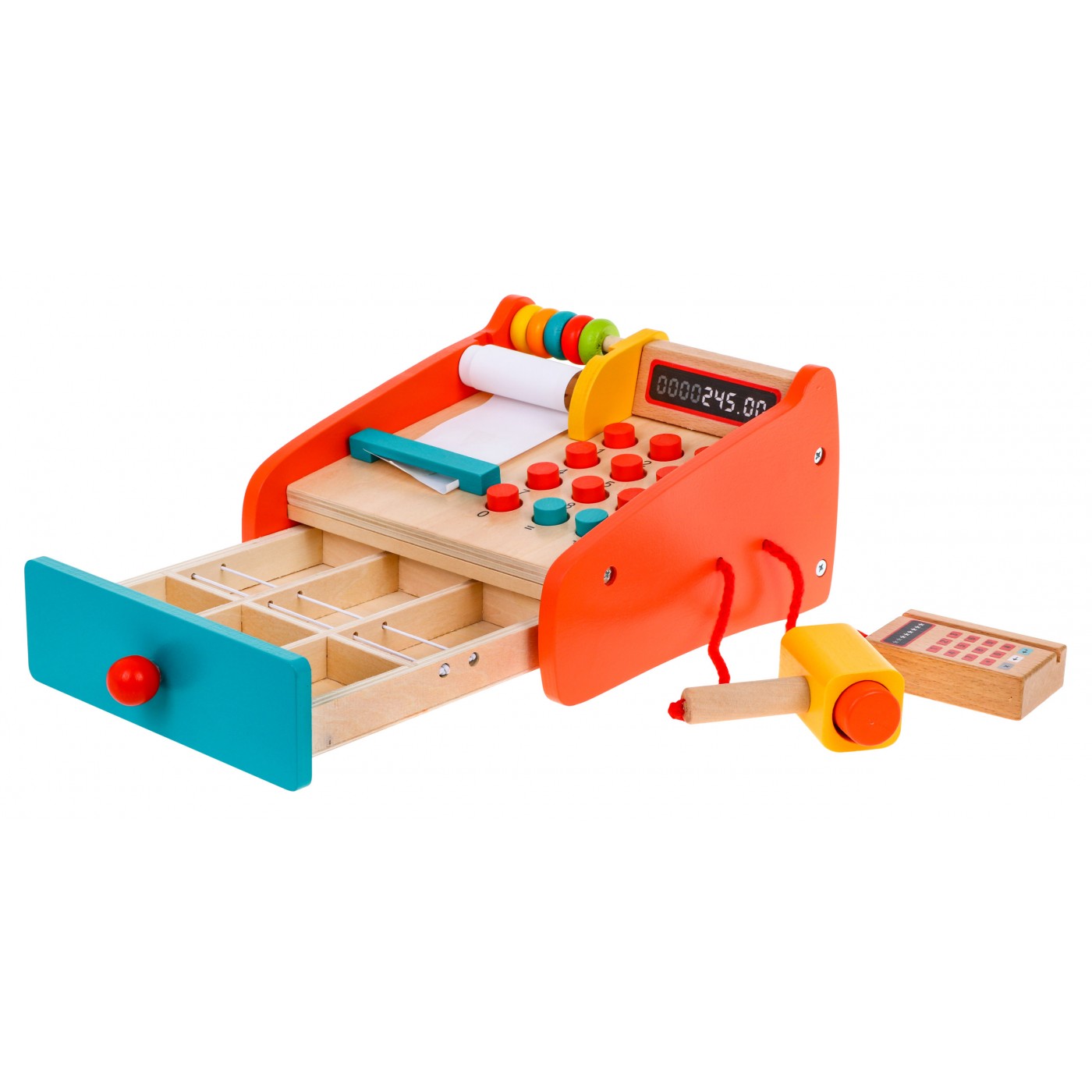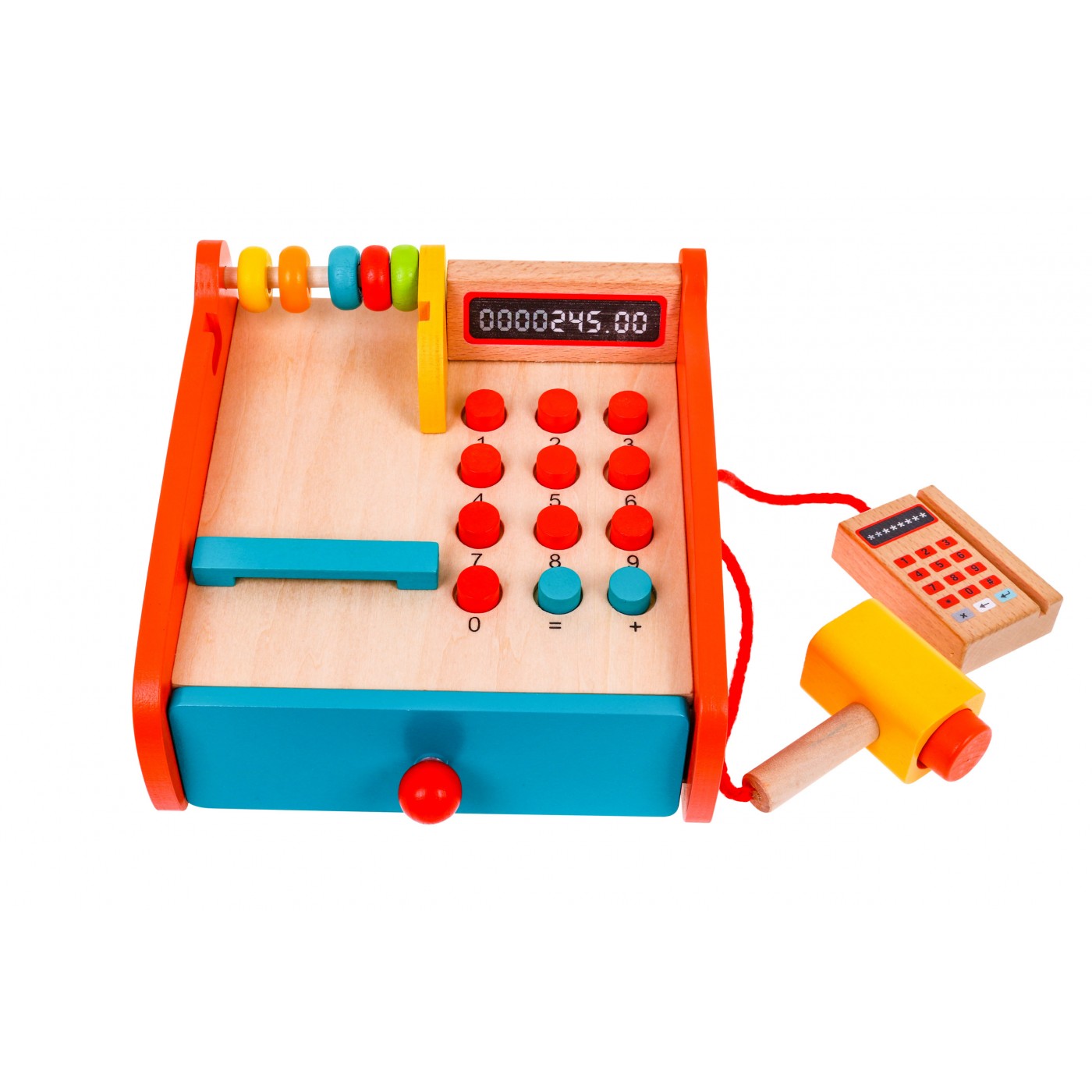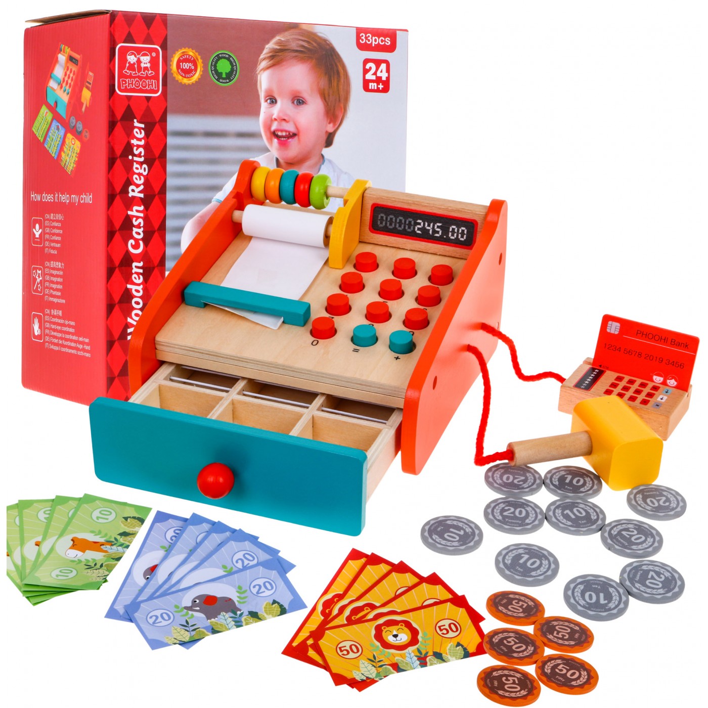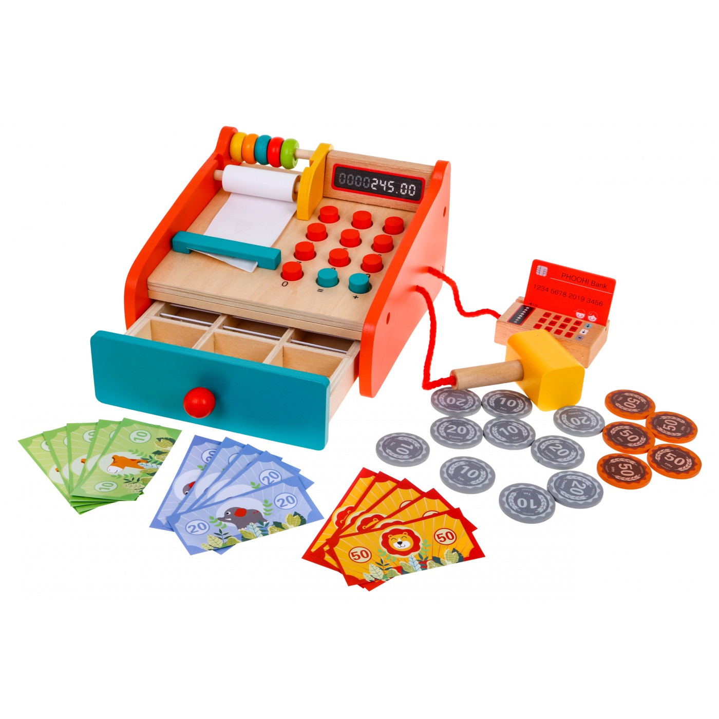 Drevená obchodná pokladňa pre deti 2+ Vysúvacia zásuvka + Počítadlo + Terminál + Čítačka + Príslušenstvo