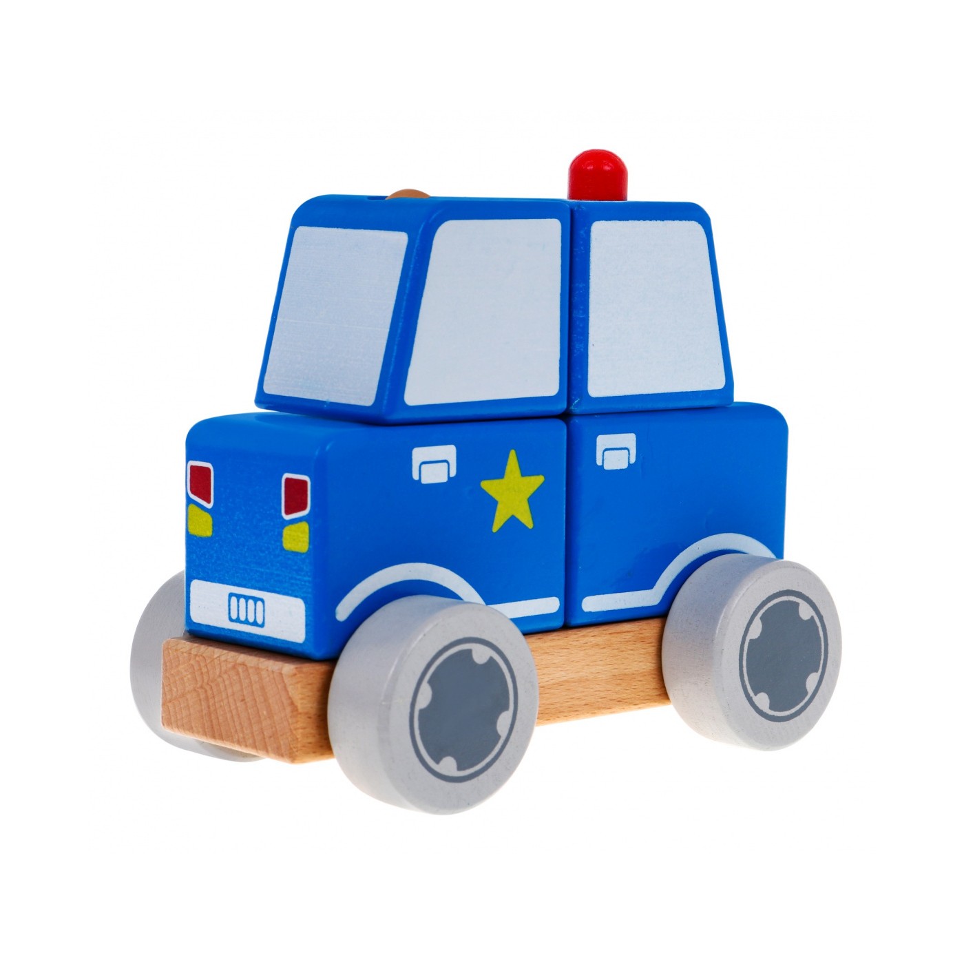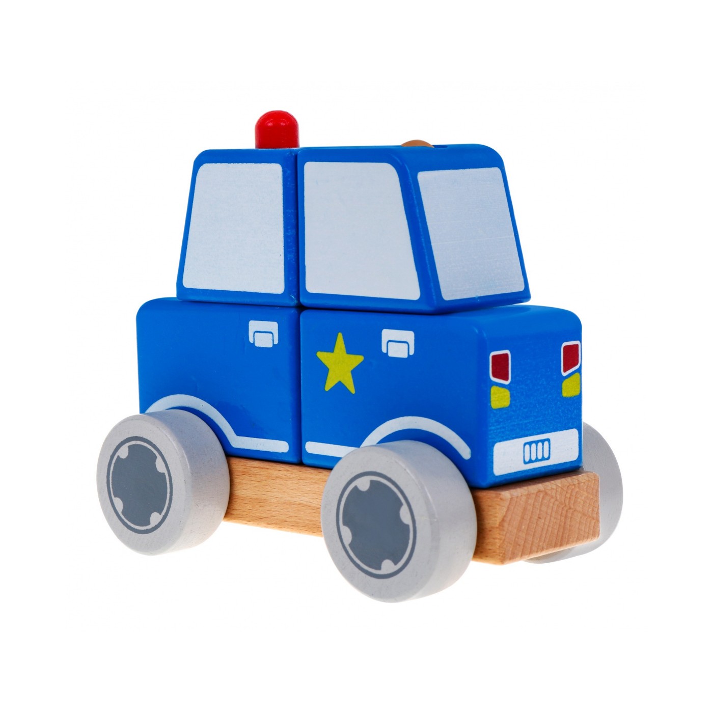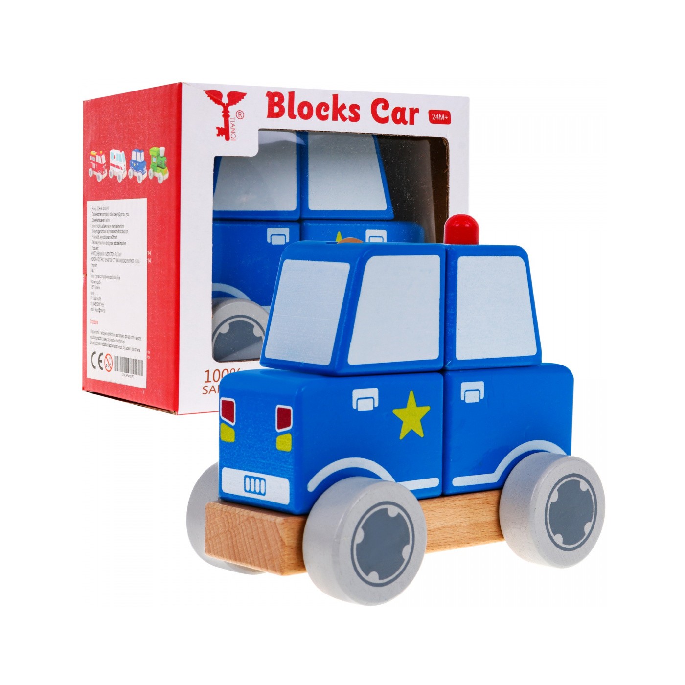 | Drewniane autko policyjne to zabawka przeznaczona dla kreatywnych maluszków od drugiego roku życia. Autko składa się z podstawki i czterech klocuszków. Do podstawki po bokach, przymocowane zostały drewniane ruchome kółeczka , a na górze 2 kołeczki. Na kołeczki dziecko nakłada klocuszki tak by powstał pojazd. Wszystkie elementy zabawki są z drewna, pomalowane nietoksycznymi farbami. Przez zabawę dziecko wspomaga umiejętności koordynowania ręka-oko oraz uczy logicznego myślenia. | |