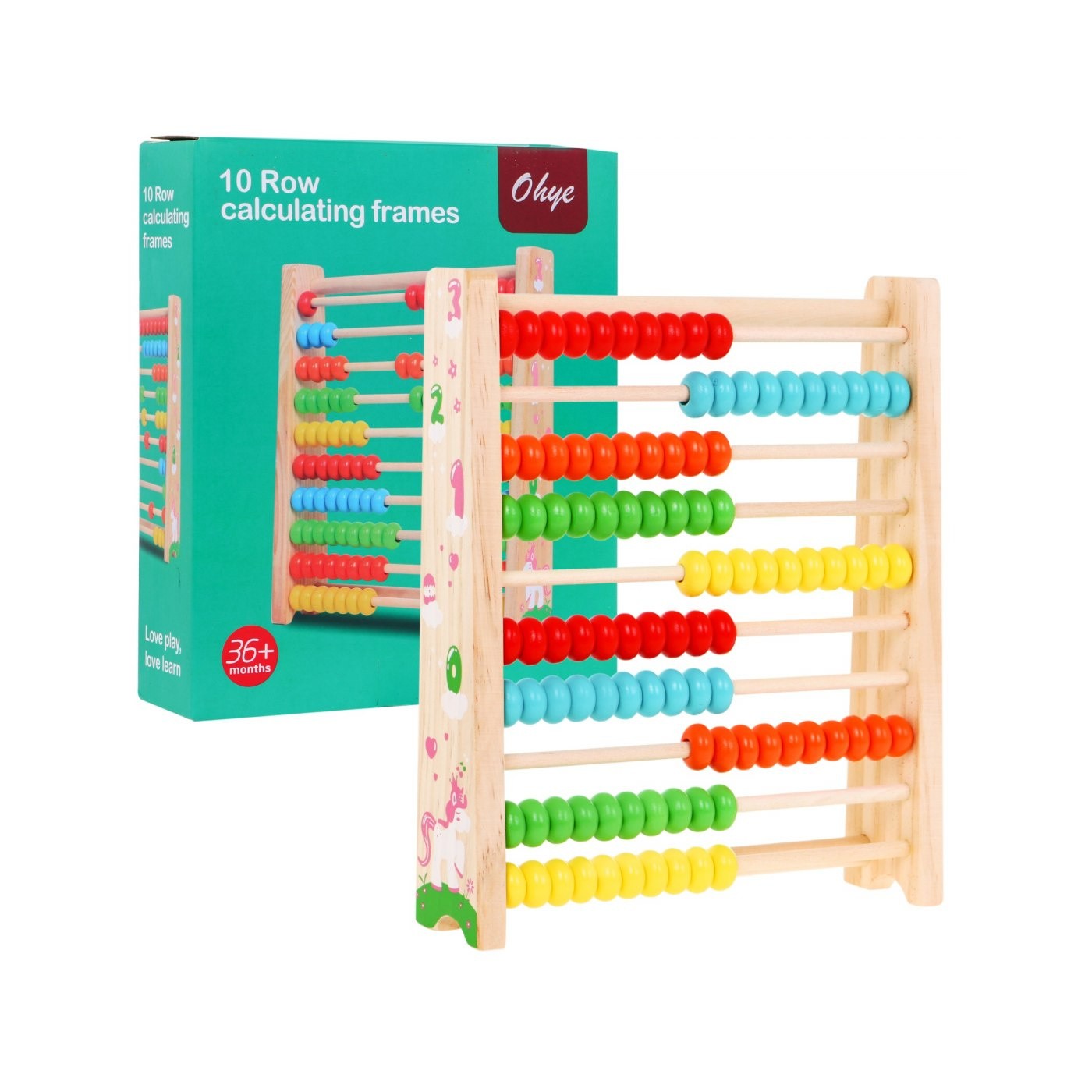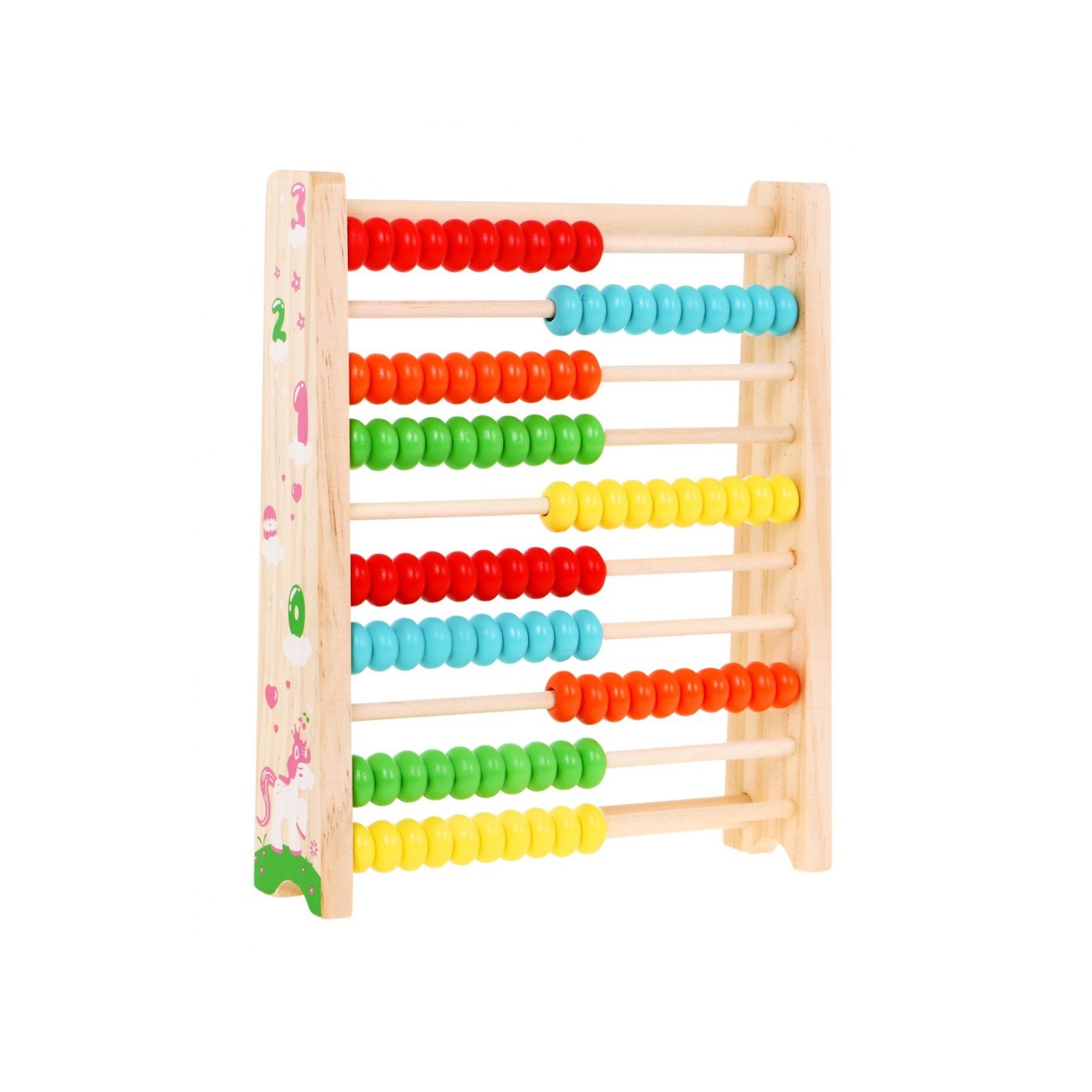 | Drewniane liczydło to zabawka edukacyjna dla dzieci od 3-go roku życia. Liczydło posiada kolorowe koraliki i zdobione obrazkami boki, pięknie wygląda i przyciąga uwagę dziecka. Zabawka jest bardzo pomocna przy nauce dodawania i odejmowania, jednocześnie uczy kolorów oraz kształtuje manualnie. | |