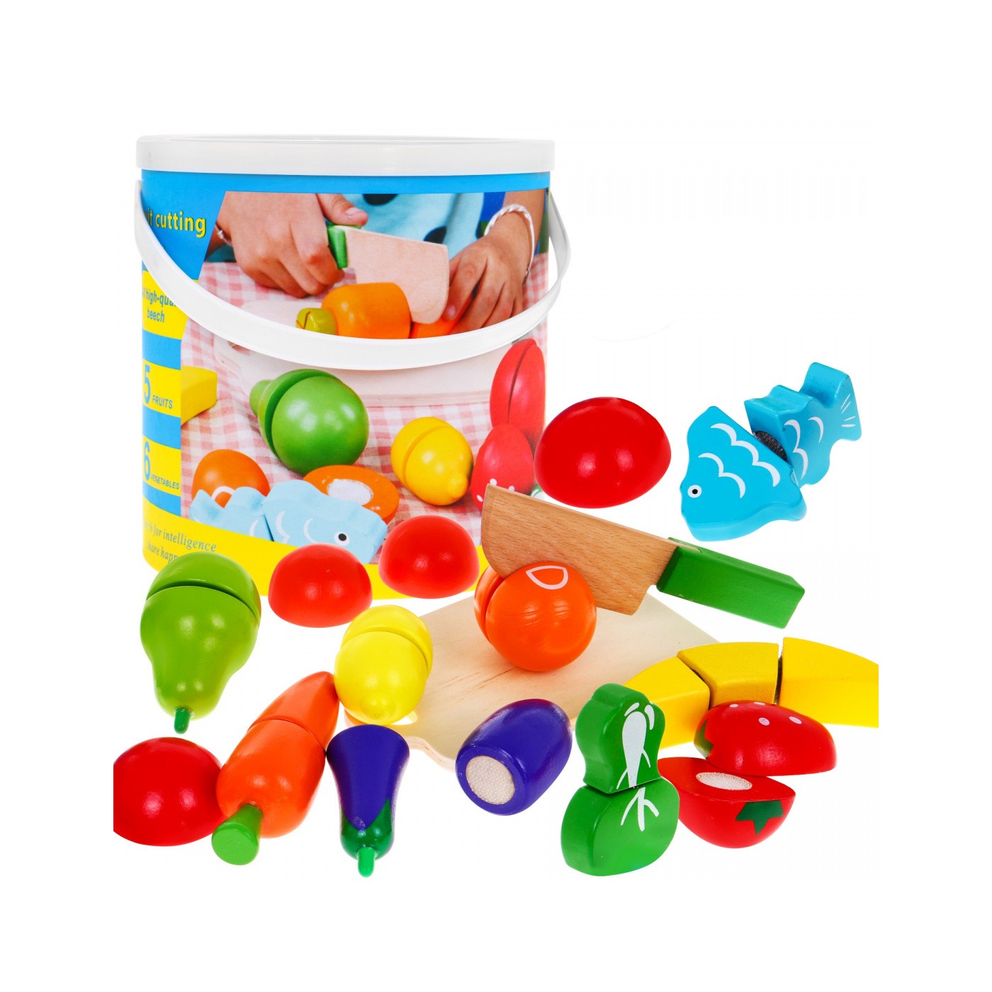 Drevená sada zeleniny a ovocia na krájanie pre deti 2+ Krájacia doska + Nôž