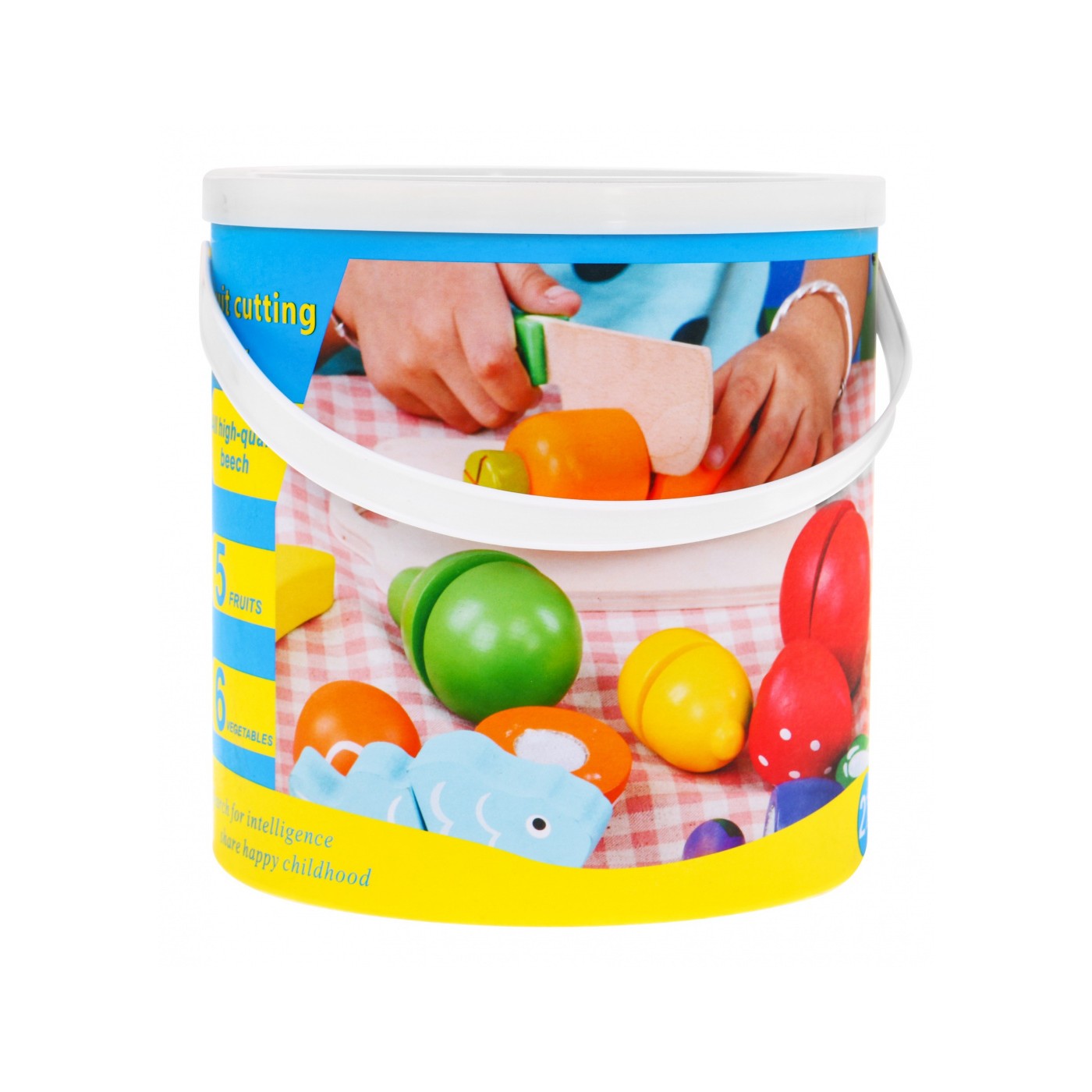 | | Drewniany zestaw owoców i warzyw to zabawka przeznaczona dla dzieci od drugiego roku życia. Każdy element zestawu wykonany został z drewna, pomalowanego nietoksycznymi, bezpiecznymi farbami. Warzywa i owoce posiadają rzepy w środku, tak aby dziecko mogło je „kroić” dołączonym do kompletu drewnianym nożykiem. Zabawa tym pakietem ćwiczy koncentrację, koordynację, logiczne myślenie, oraz uczy rozpoznawać kolory i kształty. |