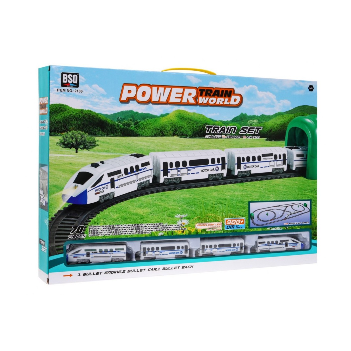 | | Zestaw składa się z 70 elementów, długość toru aż 900 cm. Tory posiadają charakterystyczny i łatwy sposób łączenia, dzięki czemu są bezpieczne i wytrzymałe w użytkowaniu. Kolejka i wagony wykonane są z najwyższej jakości plastiku, co zapewnia długotrwałą żywotność i wytrzymałość poszczególnych elementów zestawu. Zabawka posiada funkcje świetlne (czerwona dioda na przodzie kolejki) oraz dwa tryby prędkości (wolny i szybki). Zabawka przeznaczona jest dla dzieci od 4 roku życia i posiada certyfikat CE. Zabawka zasilana jest bateriami typu 2 x AAA (brak w zestawie). |