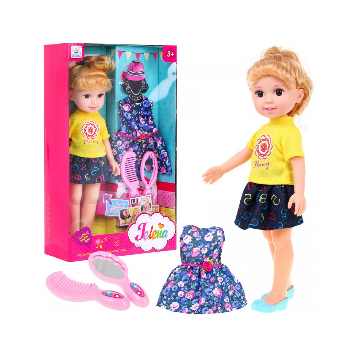 Veľká Bábika na stajlovanie pre deti 3+ blondínka + 2 Oblečenia + Hrebeň + Zrkadlo