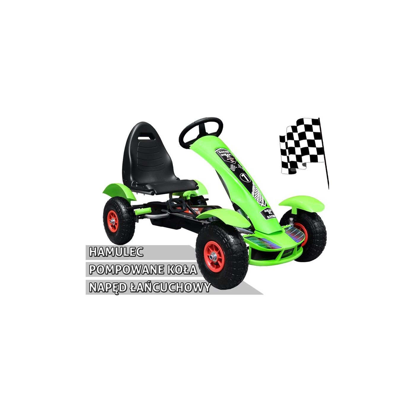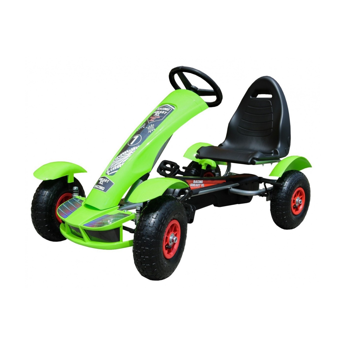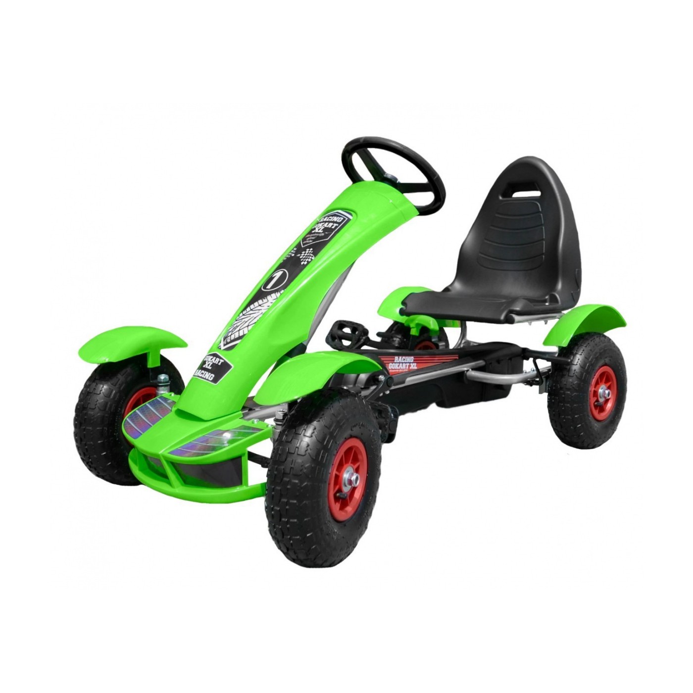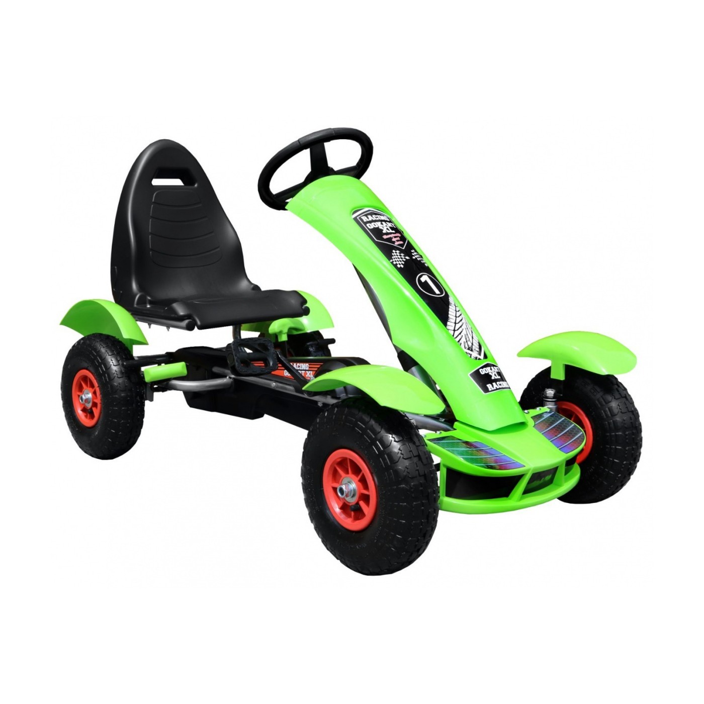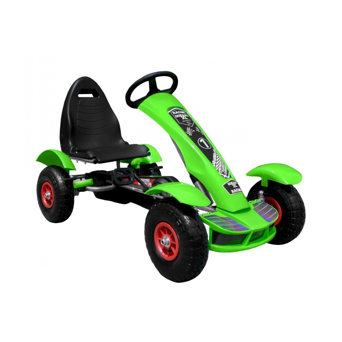 Autíčko na pedále Racing XL pre deti 3+ Zelené + Nafukovacie kolesá + Regulácia sedadla + Voľný chod