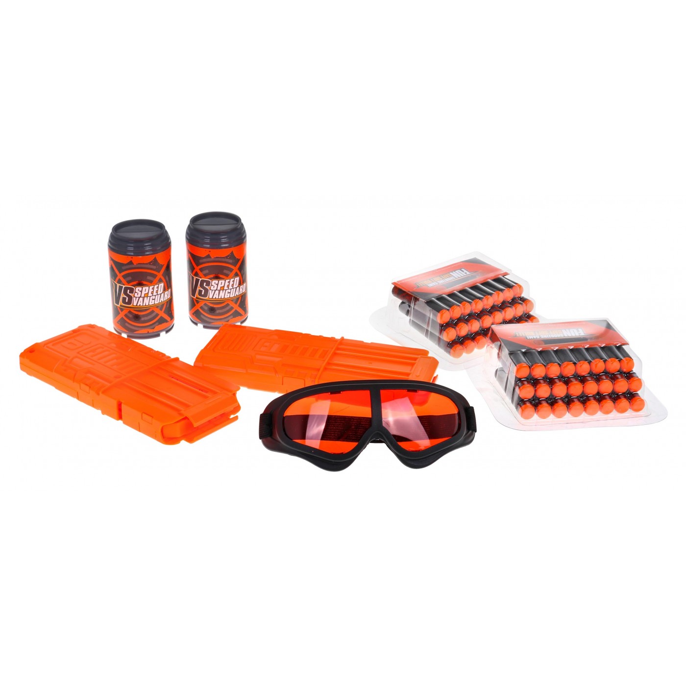 | - karabin z lufą i kolbą ok. 67 cm x 31 cm x 4,5 cm, - karabin bez lufy i kolby ok. 35 cm x 31 cm x 4,5 cm, - karabin bez lufy z kolbą ok. 49 cm x 31 cm x 4,5 cm, - karabin bez kolby z lufą ok. 53,5 cm x 31 cm x 4,5 cm, - magazynek ok. 19,5 cm x 8,5 cm x 2 cm, - okulary z gumką ok.17 cm x 7 cm, - atrapy puszek – cele ok. 9,5 cm x 5,5 cm, - opakowanie ok. 96 cm x 39 cm x 8 cm. | |