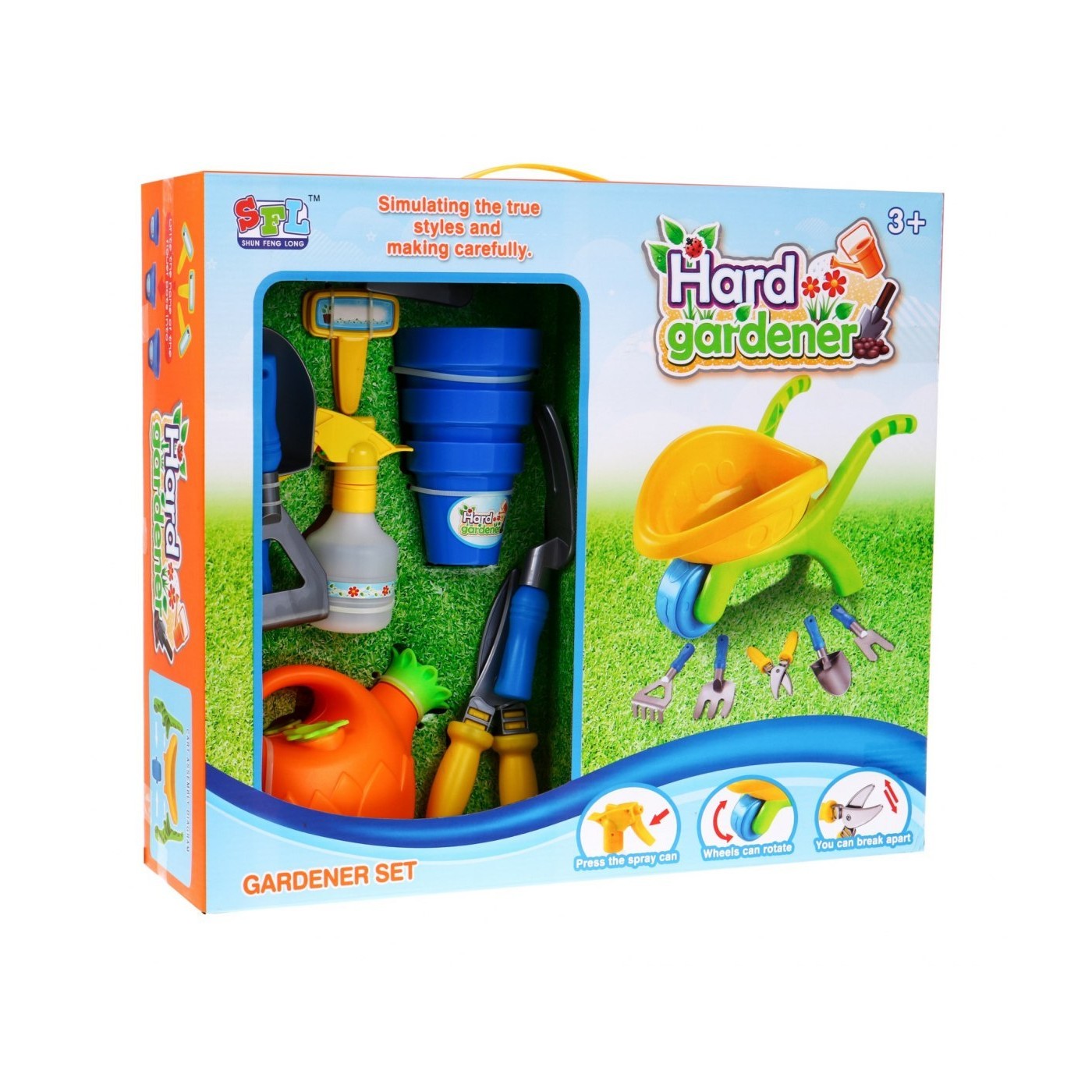 | | Idealny zestaw do zabawy na świeżym powietrzu, nauczy dziecko dbać o czystość w ogrodzie i pielęgnować roślinki. Zabawka zarówno dla chłopca jak i dziewczynki. Zabawka przeznaczona jest dla dzieci powyżej 3 – go roku życia i posiada certyfikat CE. |