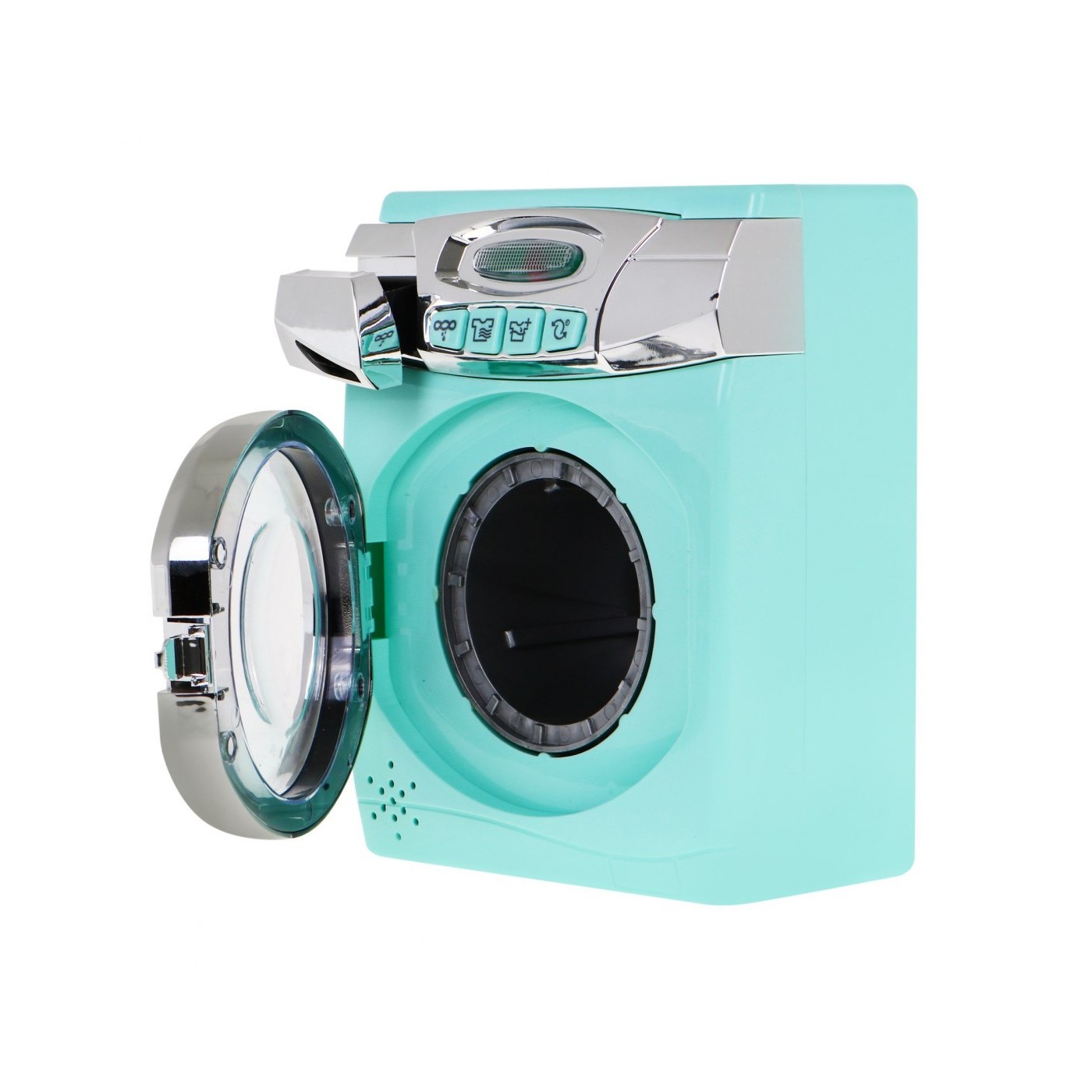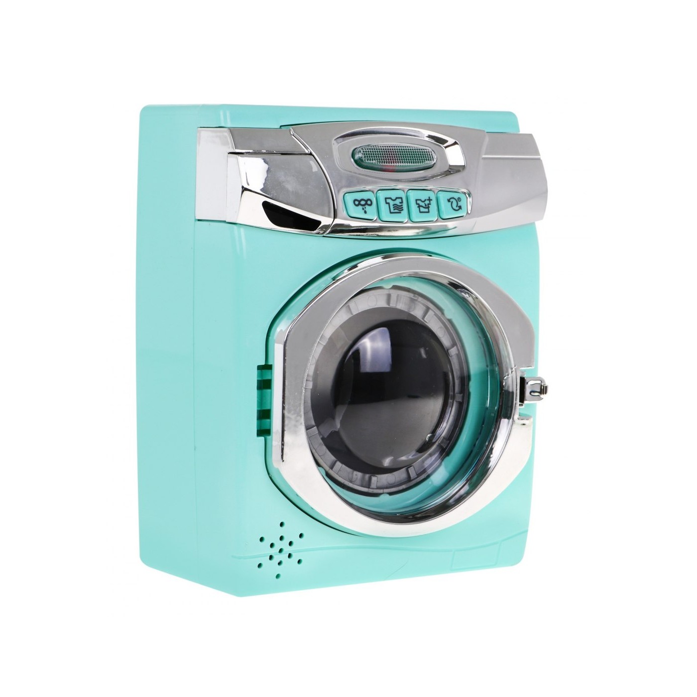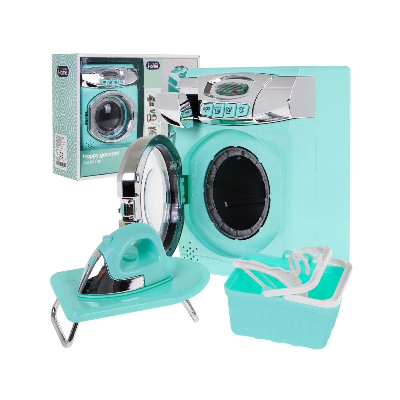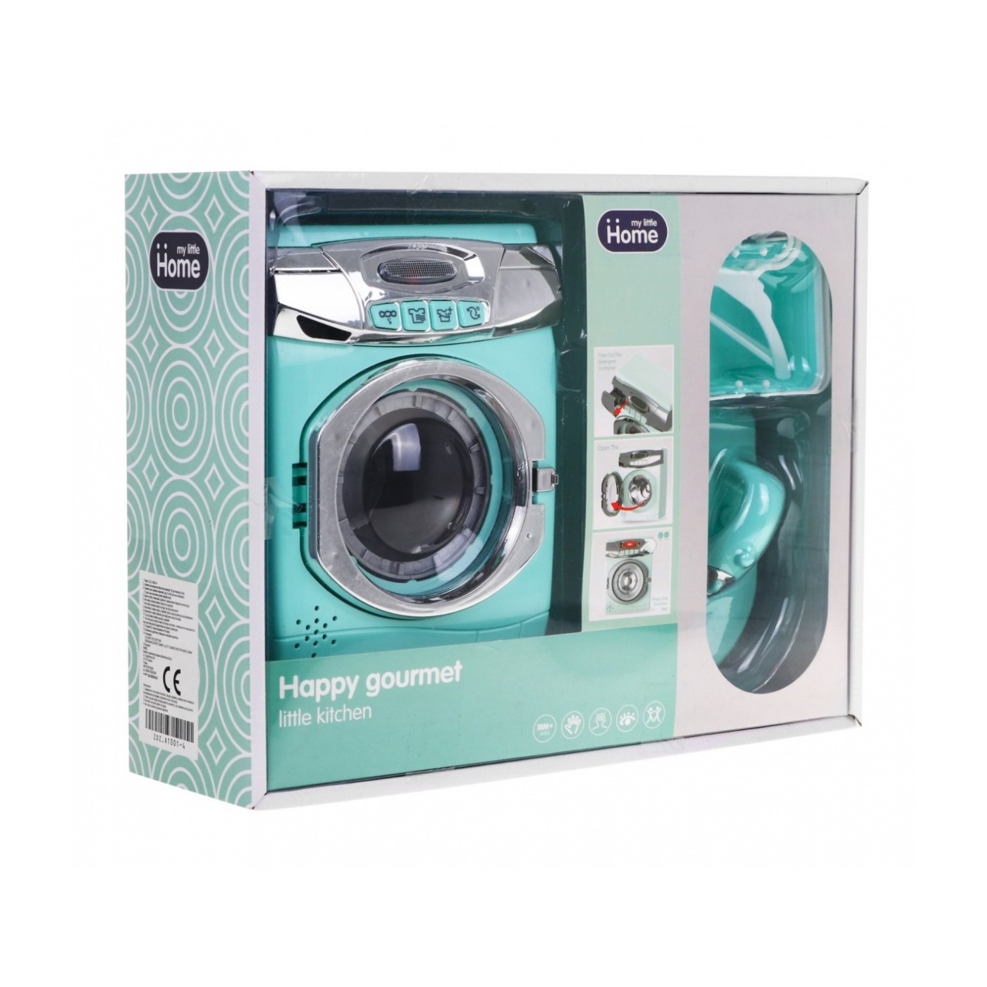 | | Zestaw interaktywna pralka, deska do prasowania i kosz na bieliznę to propozycja dla wszystkich dzieci, które lubią naśladować swoich rodziców podczas ich codziennych domowych obowiązków. Pralka zasilana jest bateriami typu AA- 3 x 1,5V (brak w zestawie). Posiada efekty dźwiękowe i świetlne. Przyciskami ustala się programy prania i w zależności od programu słychać różne odgłosy pracy pralki oraz świeci się dioda z przodu pralki. Programy prania: - pierwszy i drugi program słychać odgłosy prania, bęben obraca się, - trzeci – odgłos odpompowania wody, - czwarty – odgłosy napełniania wody, bęben pralki wiruje. Pralka posiada otwieraną komorę na detergenty oraz otwierany bęben. |