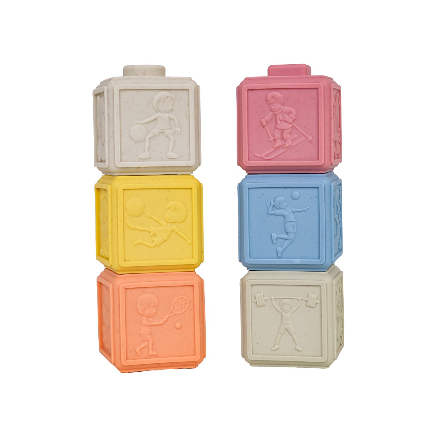 Ekologická sada mäkkých senzorických kociek pre deti od šiestich mesiacov. Rôzne farby stimulujú detské zmysly a rozmanité tvary podporujú kreatívnu hru. Vďaka rozmanitým textúram poskytuje každá kocka dieťaťu iný zmyslový zážitok. Kocky sa dajú použiť na terapeutické alebo vzdelávacie účely, alebo ako senzorické hračky pre deti. Vďaka svojej štruktúre fungujú perfektne aj ako hryzátka.