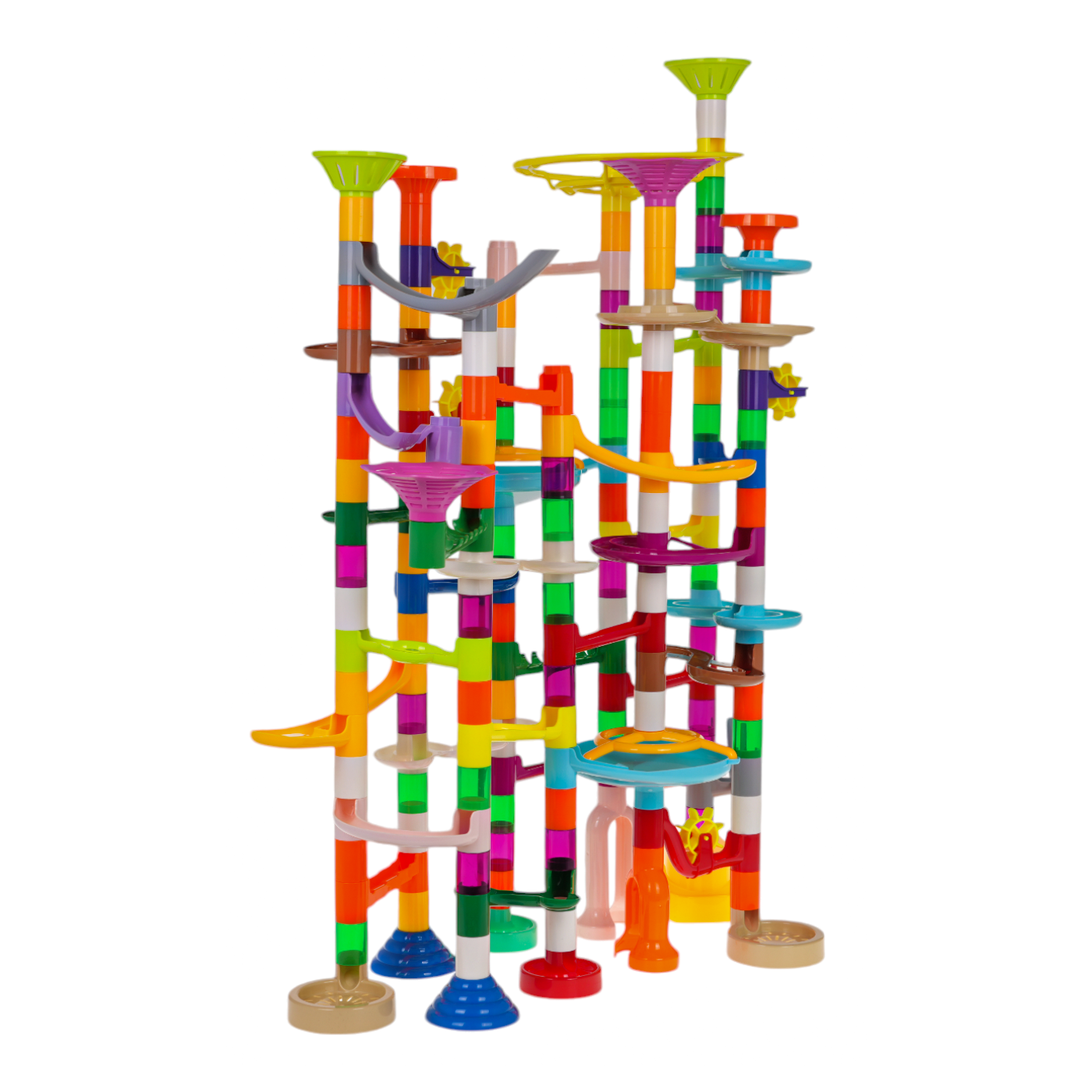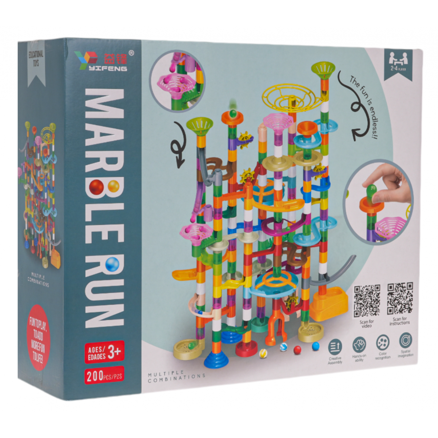 Veľká, farebná, odolná, kvalitne spracovaná guličková dráha je vhodná pre deti od 3 rokov, ale určite vzbudí záujem aj u starších detí. Hra zahŕňa zostavenie konštrukcie trate sami a následné hádzanie loptičiek cez tunely. Môžete postupovať podľa obrázkového návodu, ktorý je súčasťou súpravy, alebo si vytvoriť vlastnú vežu. Uvedenie loptičiek do pohybu a sledovanie ich prechodu kľukatými tunelmi prináša veľa radosti, upokojuje a upokojuje. Hračka má pozitívny vplyv na rozvoj kreativity, fantázie a manuálnych zručností.
