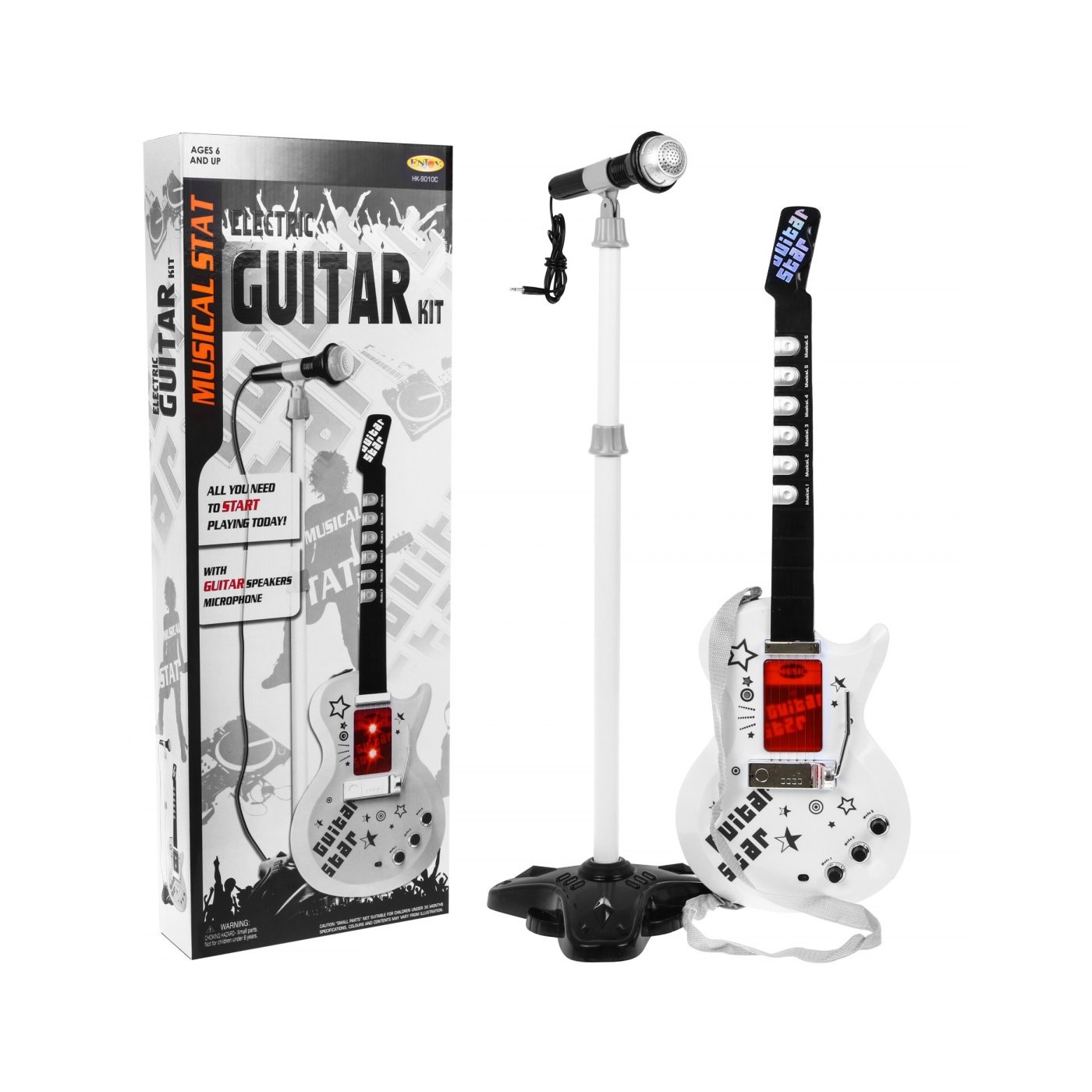 Elektrická gitara + Mikrofón pre deti 6+ Hudobný nástroj Zvuky + Svetlá