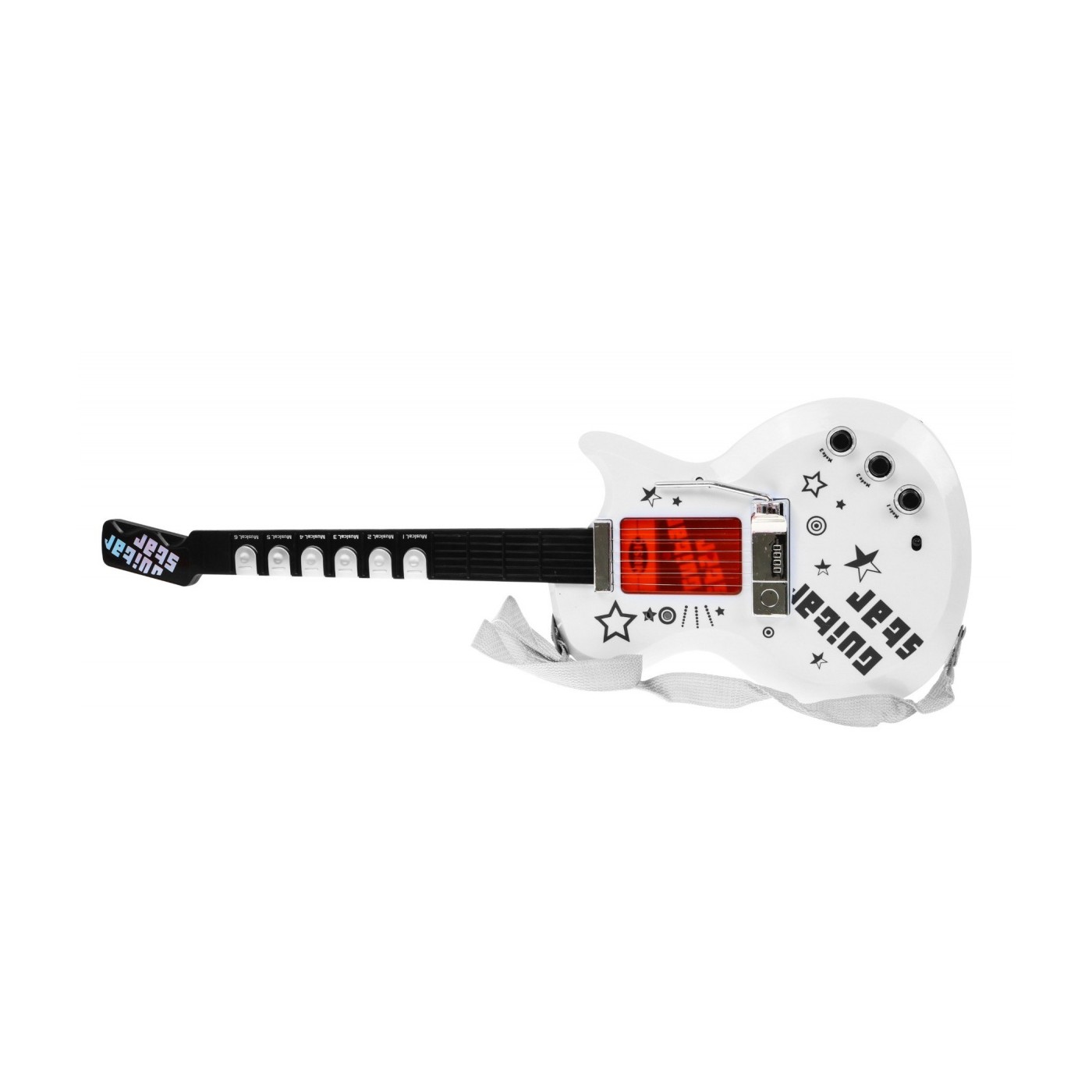 | | Niepowtarzalna gitara elektryczna dla przyszłego gitarzysty wraz z mikrofonem w zestawie. Gitara to niezwykle inspirujący instrument muzyczny z grupy strunowych szarpanych, który odgrywa niezwykle ważną rolę w muzyce bluesowej, country, flamenco, rockowej oraz w wielu formach popu. Dziecko już w pierwszych latach życia wykazuje zainteresowanie zabawkami grającymi, tańczy, śpiewa, próbuje grać na prostych instrumentach. Obecność muzyki w rozwoju dziecka ma zdecydowanie pozytywny wpływ. Talent ujawniony w tak wczesnym okresie ma szansę znacznie się rozwinąć w przyszłości, dlatego też nie można przegapić tego momentu. Jeżeli Twoje dziecko z niewyobrażalnym zachwytem patrzy na gitarzystów, udaje, że gra na wyimaginowanej gitarze i ma poczucie rytmu - to może mieć talent do gry na każdej gitarze. Zabawka wyposażona jest w 6 metalowych strun, 3 tony gitary, 7 melodii i 12 krótkich solówek. |