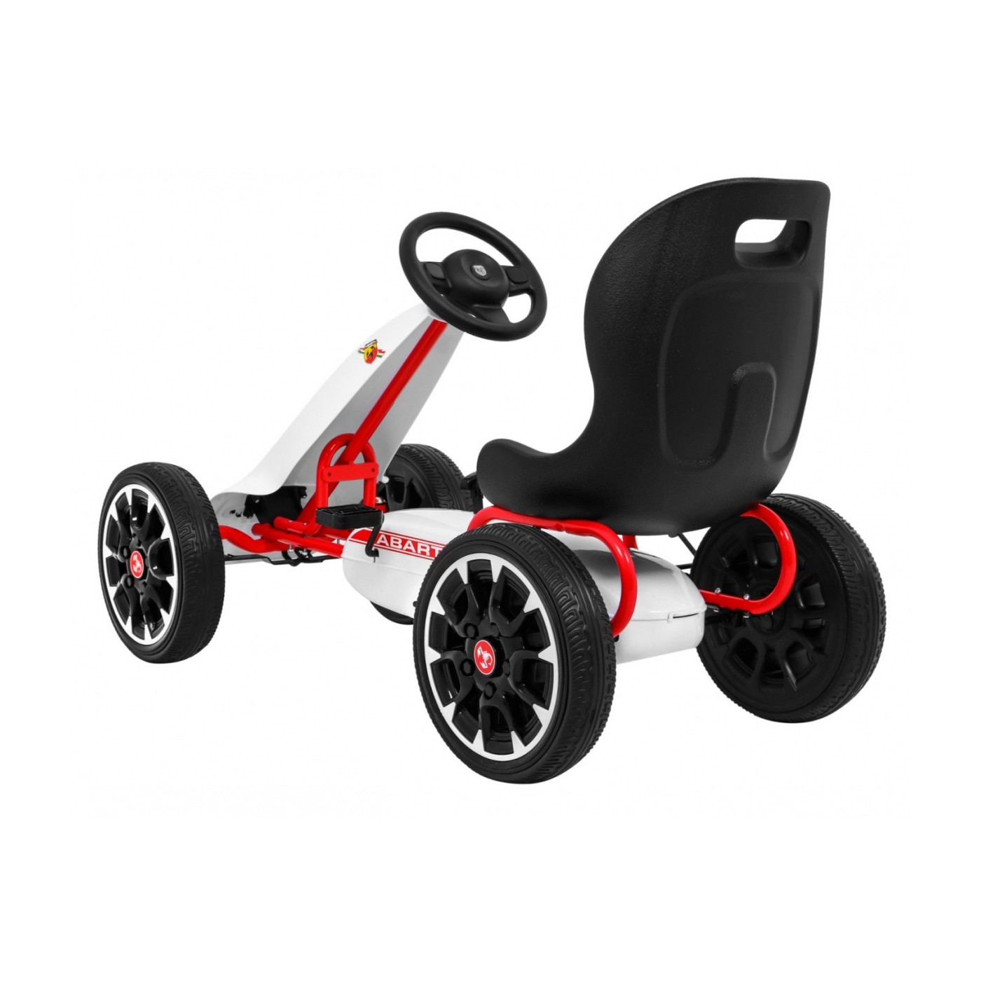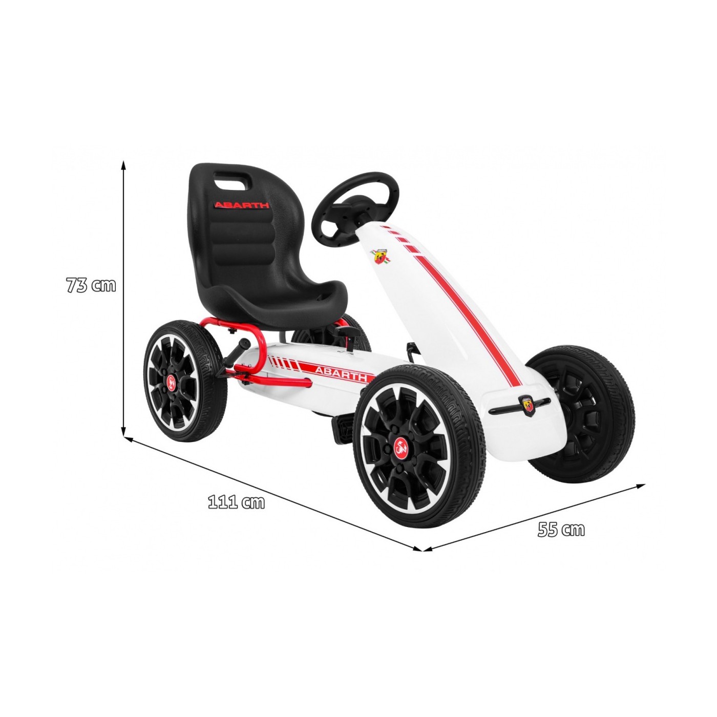 Motokára ABARTH na pedále pre deti Biela + Kolesá EVA + Ručná brzda + Voľný chod