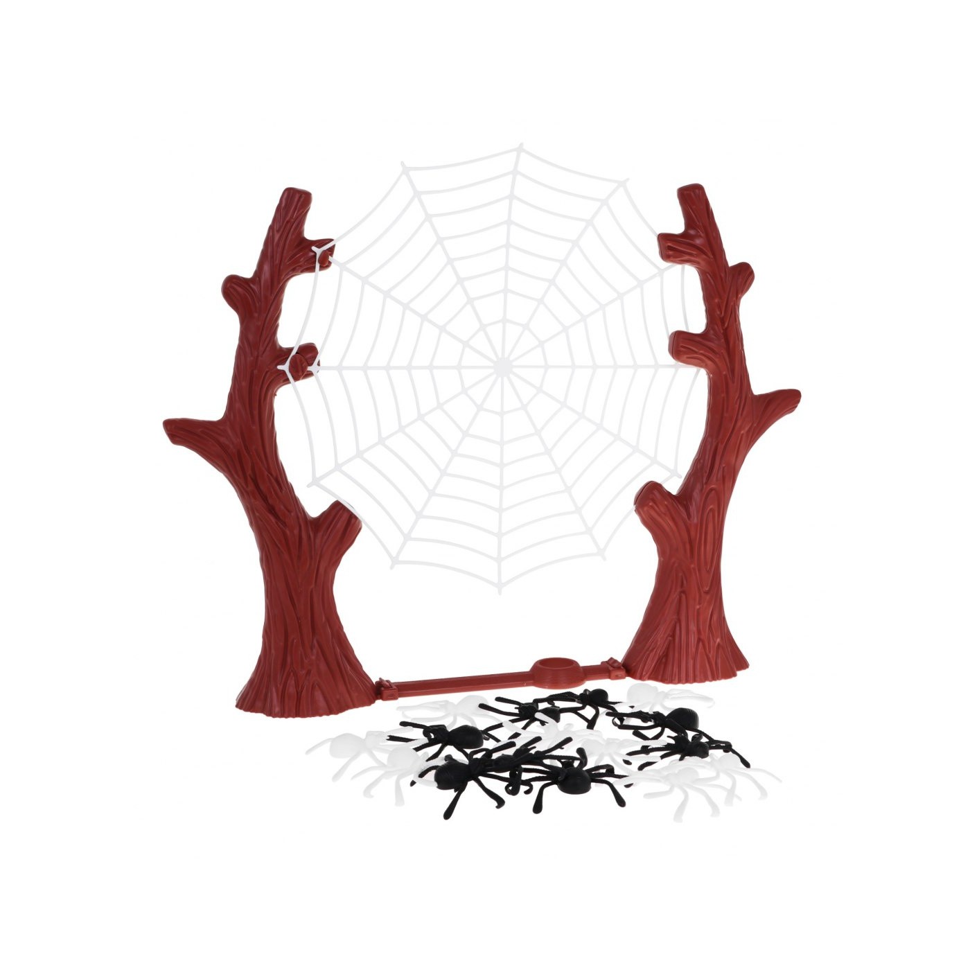 | - 4 duże białe pająki, - 4 duże czarne pająki, - 4 małe białe pająki, - 4 małe czarne pająki. - 2 pnie drzew, - klamra spinająca, - pajęczyna, - instrukcja.