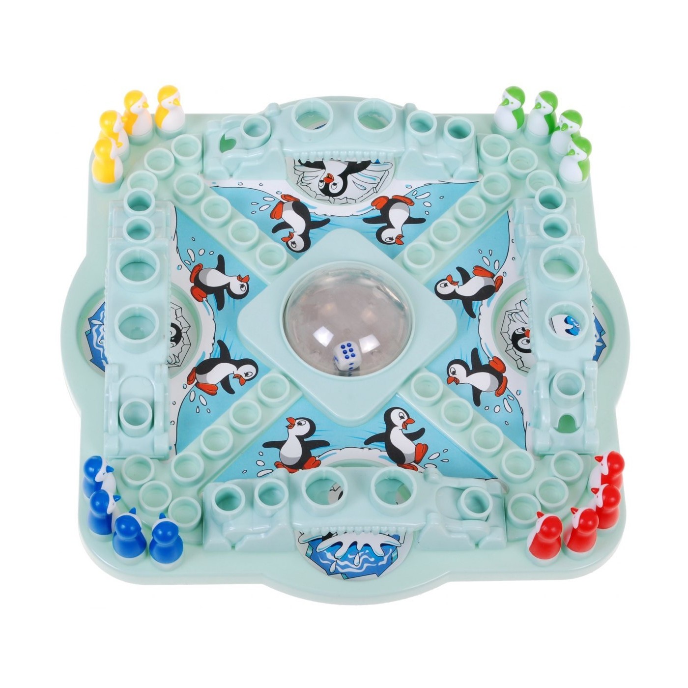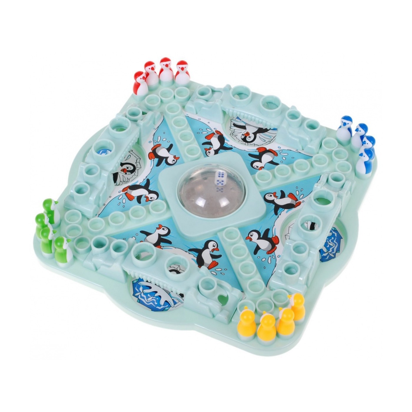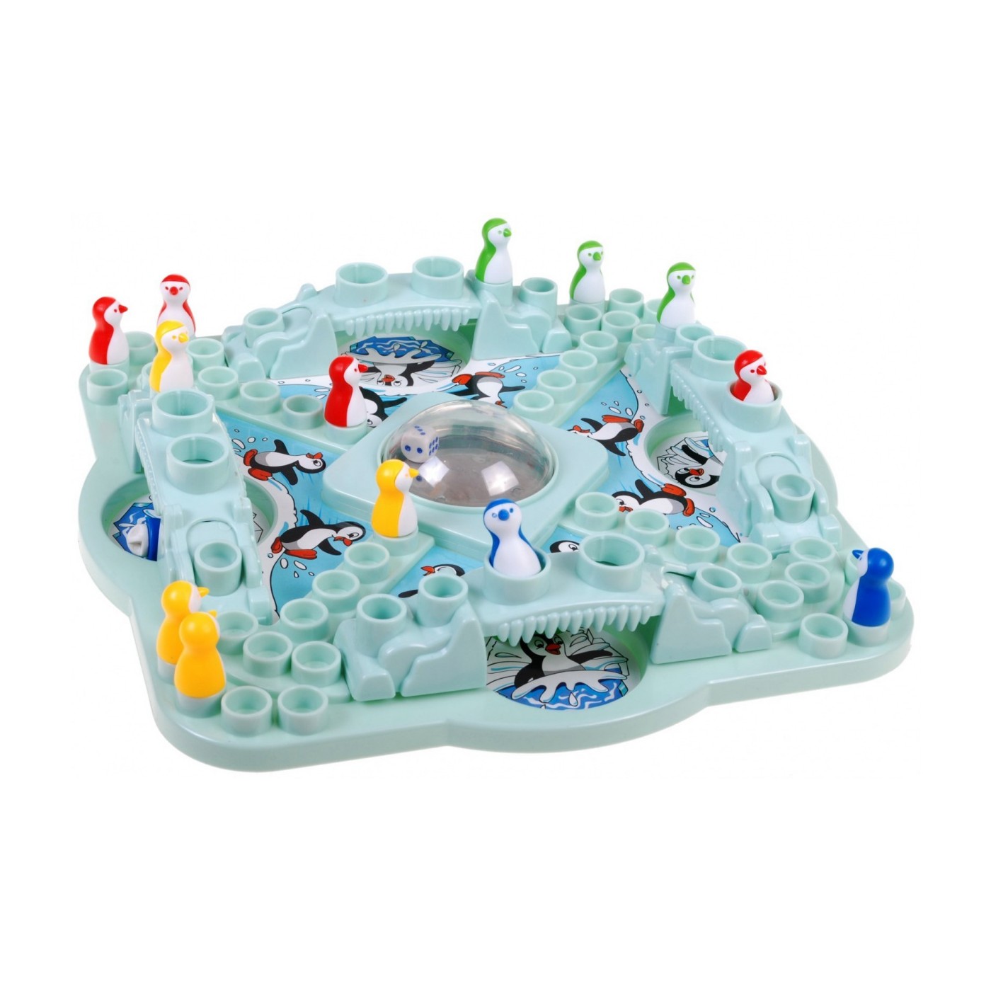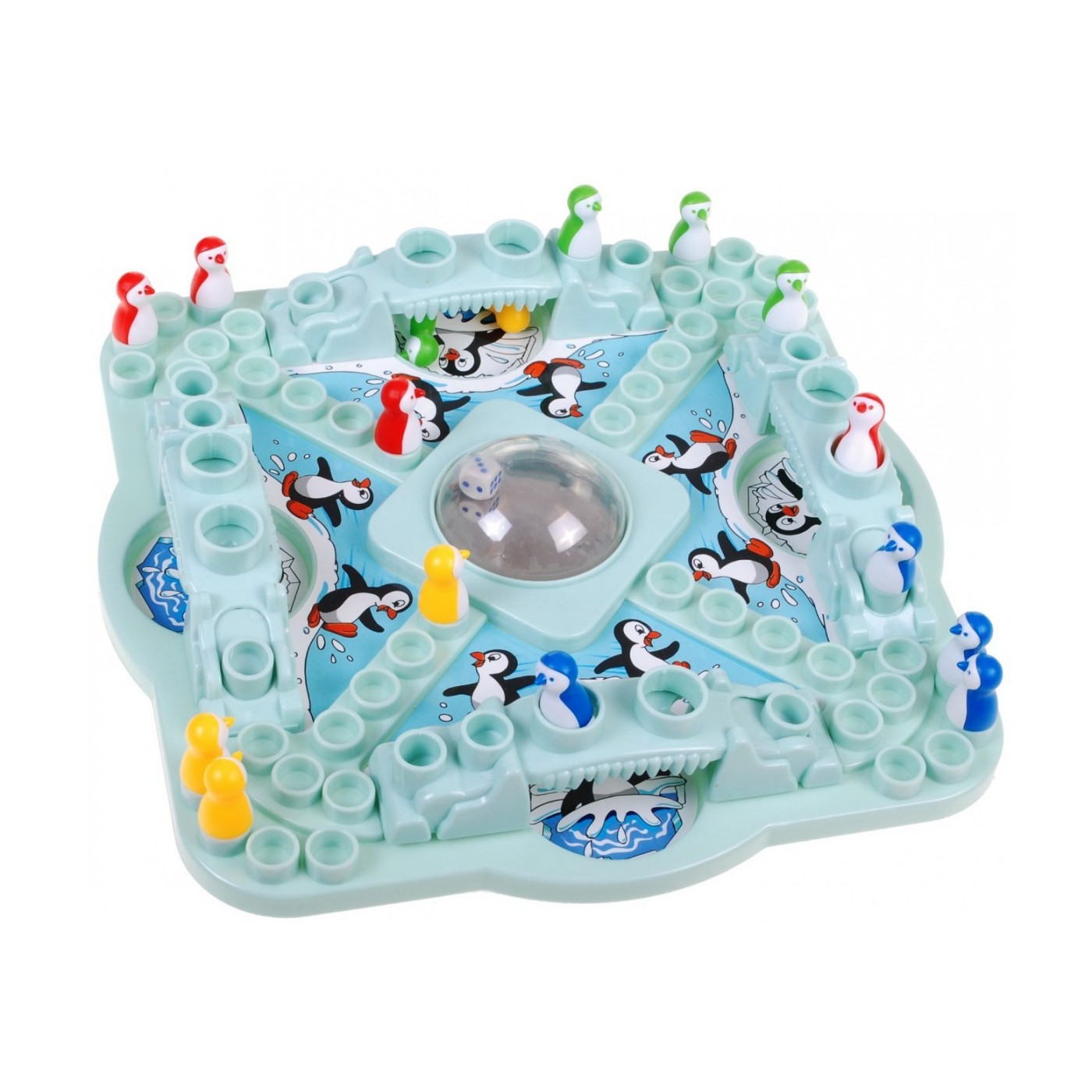 | Pingwiny poruszają się po specjalnie zaprojektowanej planszy z „lodowymi mostami” zgodnie z ruchem wskazówek zegara. Każda drużyna startuje z narożnika, po wyrzuceniu 6 oczek na kostce umieszczonej w centrum planszy, 1 pingwin wchodzi do gry. Pingwiny poruszają się o ilość oczek wskazanych przez kostkę. W trakcie tury możesz poruszać się tylko jednym pingwinkiem. Kiedy twój pingwin stanie na ruchomej części „lodowego mostu” możesz skorzystać z opcji uruchomienia strasznej pułapki i zrzucić stojące na moście pingwiny przeciwnika do lodowatej wody. Zrzucone pingwiny wracają do pól startowych, aby móc ponownie wykonać nimi ruch należy na kostce wyrzucić 6 oczek. Aby zwyciężyć wyścig należy obejść całą planszę i ustawić bezpiecznie w domu całą drużyną. |