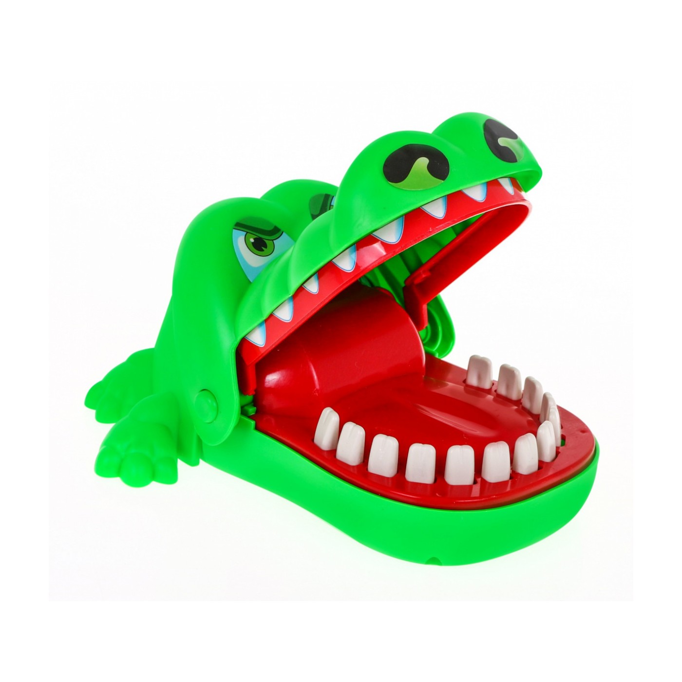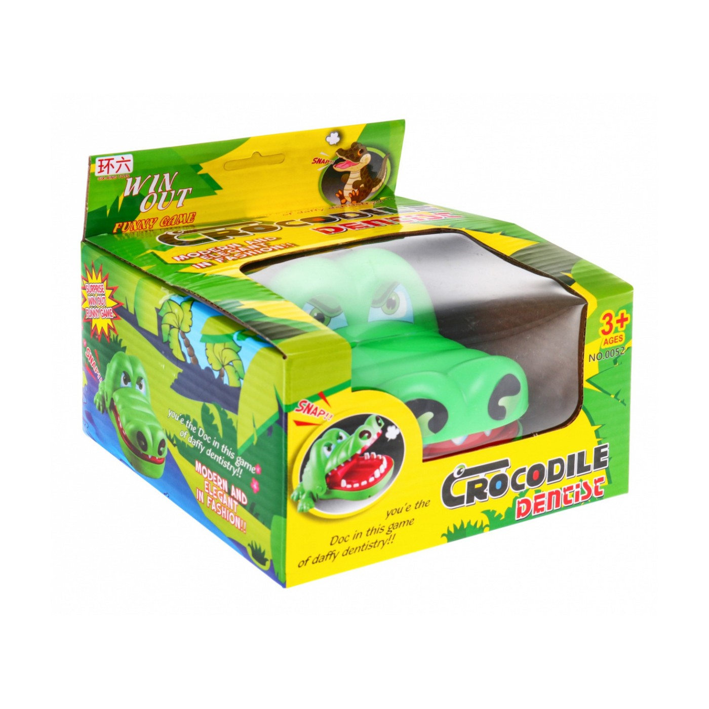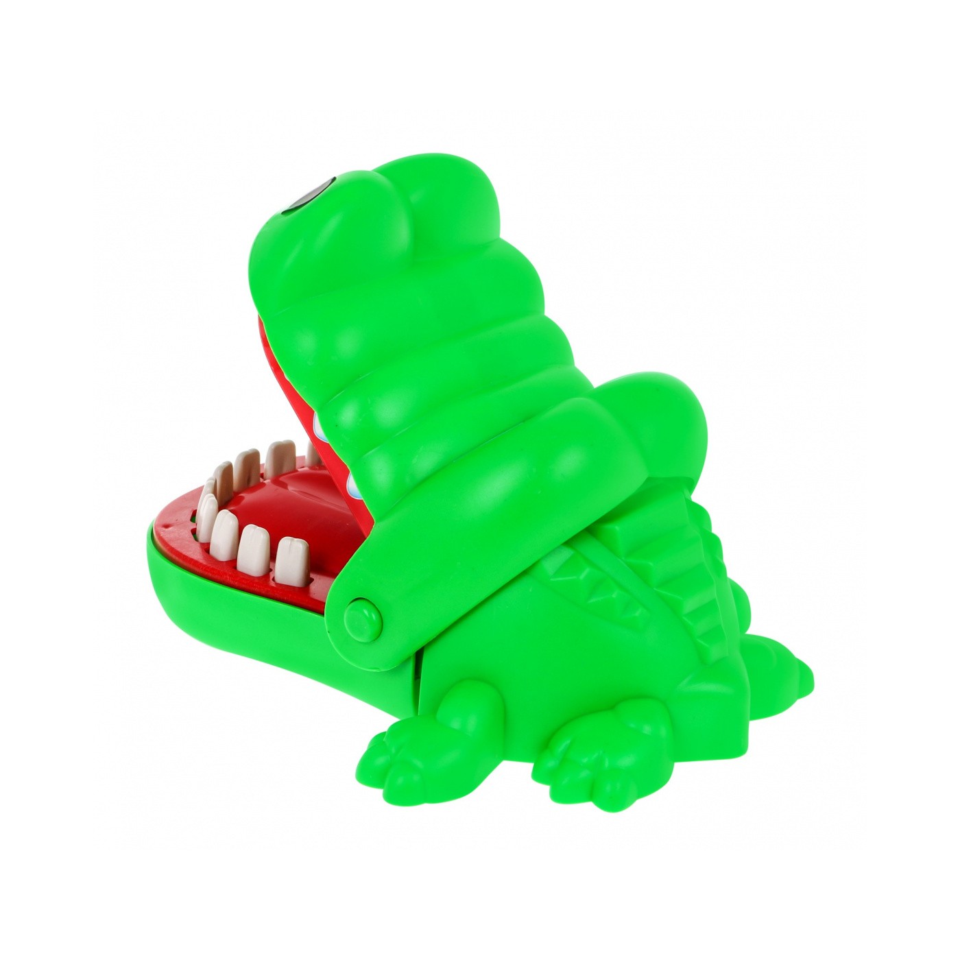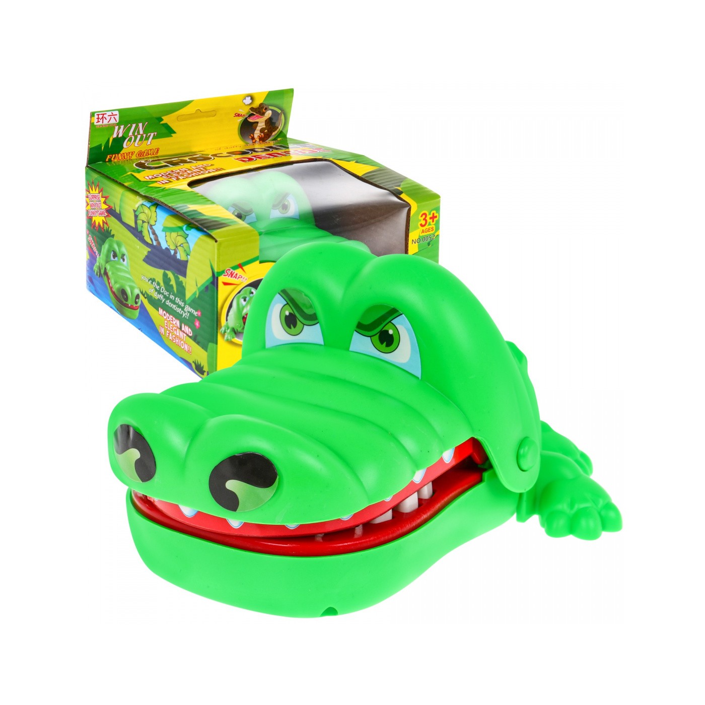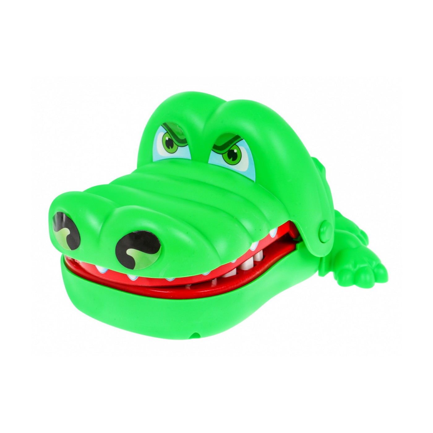 | Mini gra – można ją zabrać wszędzie ze sobą. Zapewni świetną rozrywkę i pozytywnie wpłynie na rozwój umiejętności zręcznościowych Twojej pociechy. Zabawka przeznaczona jest dla dzieci od 3-go roku życia. Można w nią grać samodzielnie lub w grupie. Krokodyla boli ząbek, musimy mu pomóc ale trzeba bardzo uważać jeżeli urazimy go dotykiem bardzo się zdenerwuje i nas ugryzie. Gra kończy się w momencie naciśnięcia chorego ząbka krokodyla. Za każdym razem jest to inny ząbek, dlatego zabawa szybko się nie nudzi. Ząbki krokodyla wykonane zostały z lekkiego tworzywa, więc nie ma się co obawiać ugryzienia, to nic nie boli. Zabawka dostarcza graczom dreszczyk emocji, nigdy nie wiadomo w którym momencie paszcza się zamknie, spodoba się małym i dużym.