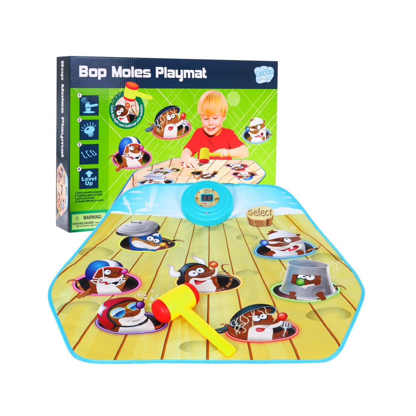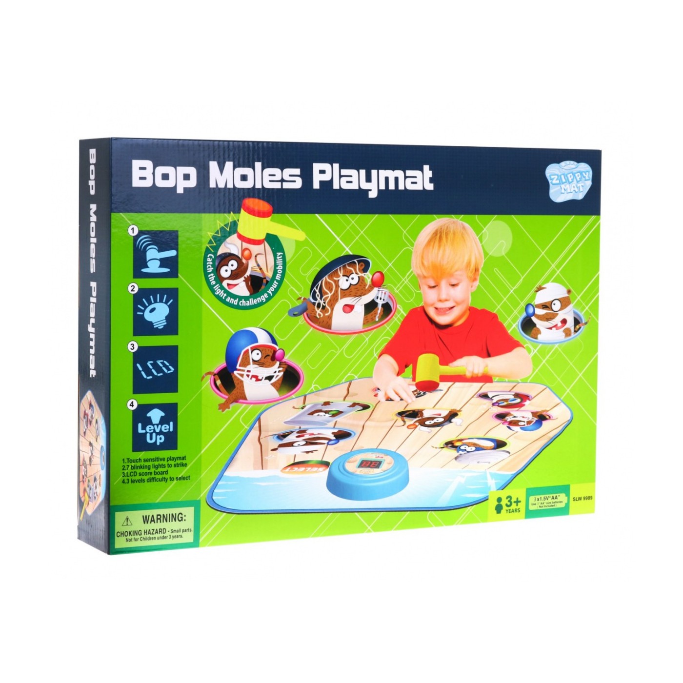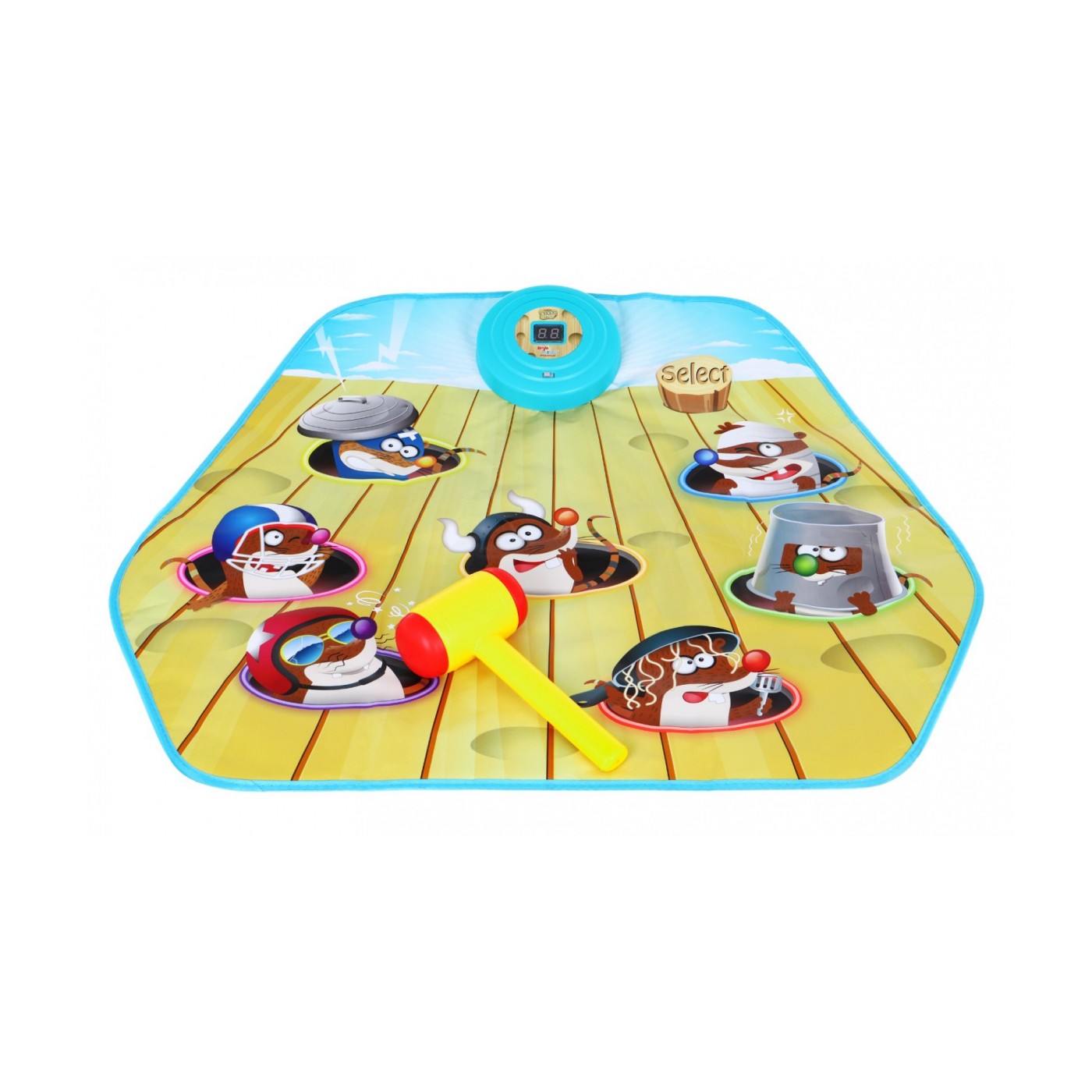 | | Zabawna, wciągająca gra rodzinna dla małych i dużych, rozwijająca zręczność i koordynację ruchową. Gra składa się z planszy, na której umiejscowionych jest siedem moli. Każdy z moli ma lampkę na nosie. Gracz powinien użyć młotka (w zestawie) do uderzenia mola, ilekroć zaświeci się lampka na jego nosie. W górnej części maty znajduje się ekran LCD, wyświetlający wyniki. Gra posiada 3 poziomy. W pierwszym poziomie gracz musi zdobyć 20 z 30 punktów, aby przejść poziom. W drugim poziomie prędkość jest większa, gracz musi zdobyć 60 z 65 punktów. W trzecim poziomie prędkość jest większa niż w drugim a gracz musi zdobyć 95 na 100 punktów. Gra przeznaczona jest dla dzieci od trzeciego roku życia. Zasilana jest bateriami typu AA (3x1,5V – brak w zestawie). |