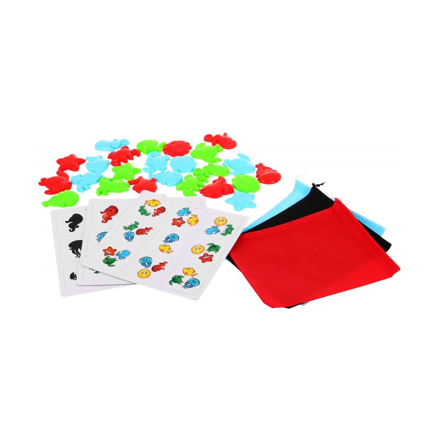 | | Zasady gry Każdy gracz bierze jedną torbę oraz 8 zwierzątek. Zwierzątka należy umieścić w torbie. Gracze wyciągają karty na stół i odwracając je mieszają i tasują. Jeden z graczy odsłania kartę a pozostali szukają zwierzątka pasujące do wskazanego na karcie. UWAGA, niektóre zwierzątka różnią się od tych na kartach. Gracz ma za zadanie dopasować co to za rodzaj zwierzątka. Pierwszy, który prawidłowo rozpozna wszystkie zwierzątka morskie, dostanie tę kartę jako nagrodę. Osoba, która zbierze najwięcej kart wygrywa. Gra dla 1-3 graczy. Wiek 3 + Certyfikat CE |
