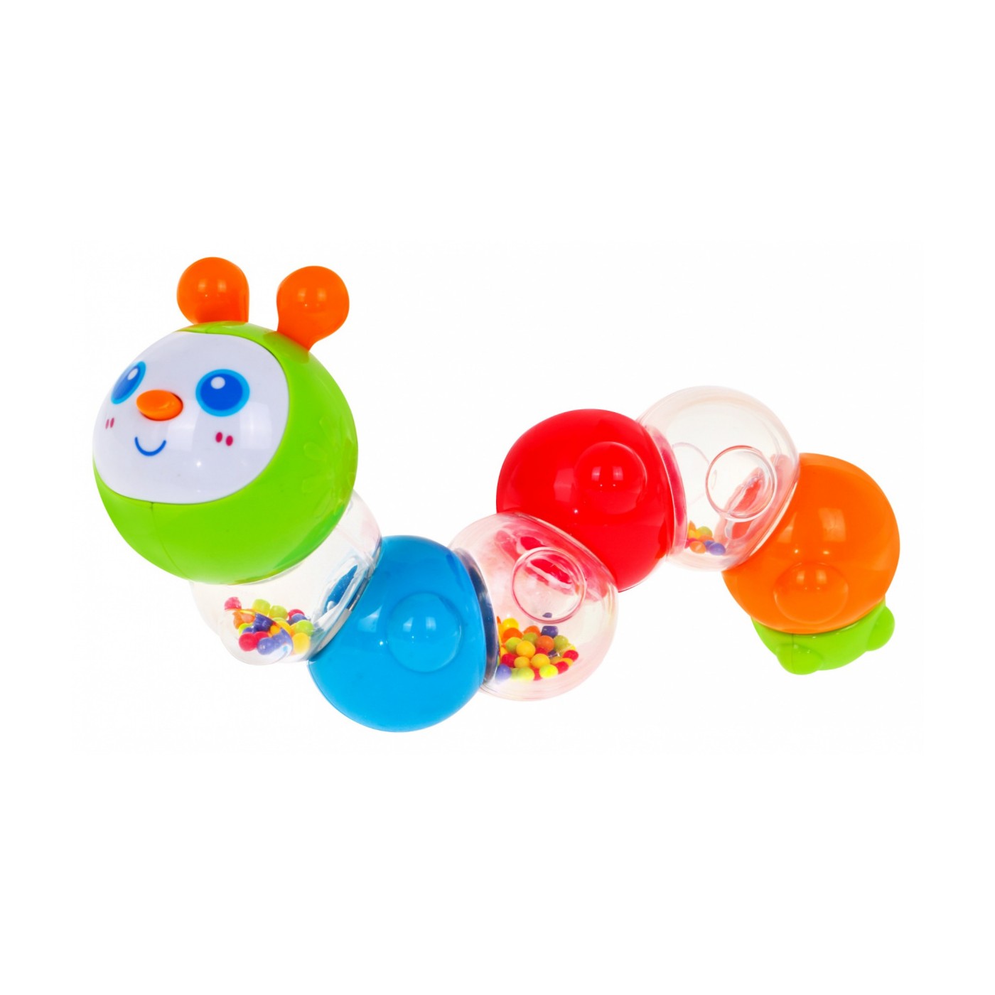 | | Grzechotka gąsienica to propozycja dla maluszków od 3 miesiąca życia. Posiada 8 edukacyjnych segmentów. Każdy segment obraca się wokół własnej osi. W kilku segmentach są piłeczki a inne zawierają wypustki zachęcające dziecko do sięgania i chwytania. Zabawka zasilana jest bateriami typu 3 x 1,5V AG13, baterie zawarte są w zestawie. Po naciśnięciu na nosek gąsienicy słychać wesoły śmiech dziecka lub muzykę a buzia gąsienicy podświetla się na kolor czerwony. Gąsienica może przybierać różne kształty. Zabawka pozytywnie wpływa na prawidłowy rozwój zmysłów, stymuluje wzrok, słuch, dotyk. |