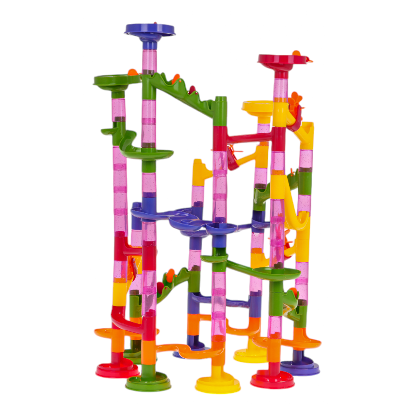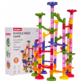 Farebná odolná guličková dráha pre deti od 3 rokov, ale určite vzbudí záujem aj u starších detí. Hra zahŕňa zostavenie konštrukcie trate sami a následné hádzanie loptičiek cez tunely. Môžete postupovať podľa obrázkového návodu, ktorý je súčasťou súpravy, alebo si vytvoriť vlastnú vežu. Uvedenie loptičiek do pohybu a sledovanie ich prechodu kľukatými tunelmi prináša veľa radosti, upokojuje a upokojuje. Hračka má pozitívny vplyv na rozvoj kreativity, fantázie a manuálnych zručností.