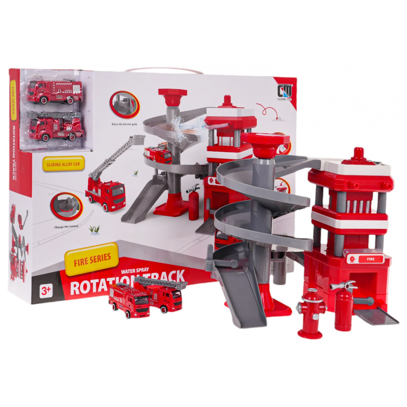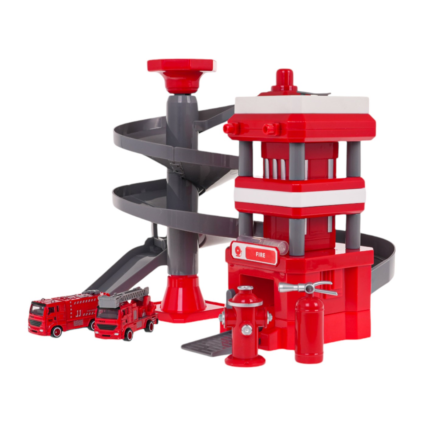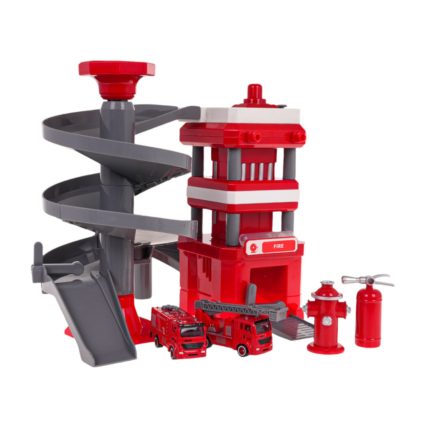 Hasičská zbrojnica s vodnou funkciou, šmykľavkou a hasičskými autami v cene pre deti od 3 rokov. Na streche hasičskej zbrojnice je nádoba na vodu. Po naliatí vody do nádoby a stlačení tlačidla umiestneného vedľa nádrže bude voda vytekať z prednej časti strechy. V spodnej časti hasičskej zbrojnice sa nachádza garáž pre hasičské vozidlá s pohyblivou zábranou. Súprava obsahuje dve hasičské autá s kovovými korbami a rebrík v jednom hasičskom aute sa zdvíha, spúšťa a vysúva. Sada obsahuje aj hydrant a hasiaci prístroj.