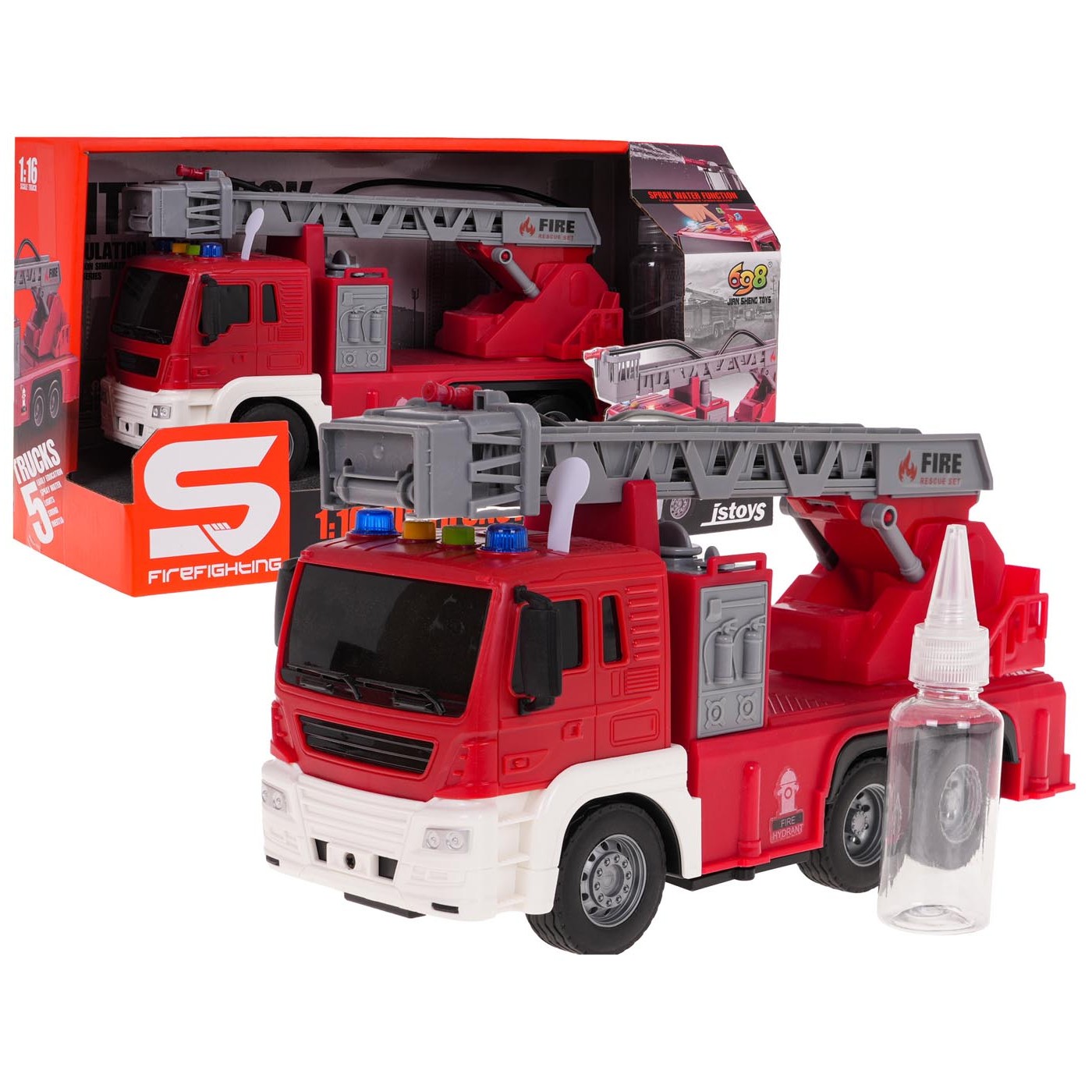 Interaktívna hasičská zbrojnica vyrobená v mierke 1:16 s vodnou funkciou pre deti od 3 rokov. Záštita je vyrobená z najkvalitnejšieho plastu v živých farbách. Má gumené pneumatiky, ktoré dobre priľnú k zemi, a pohon Friction . V hornej časti hasičského auta sú tlačidlá zodpovedné za generovanie zvukov sirén, zvukov štartovania vozidla a chodu motora. Po stranách zvukových tlačidiel sú tiež svietiace svetlá. Môžeme zdvíhať a spúšťať rebrík hasičského auta a posúvať ho dopredu (ručne). Po naplnení nádrže umiestnenej vedľa kabíny vozidla vodou a stlačení čerpadla bude voda vytekať z hadice. Hračka je napájaná 3 x AG13 batériami (sú súčasťou balenia).