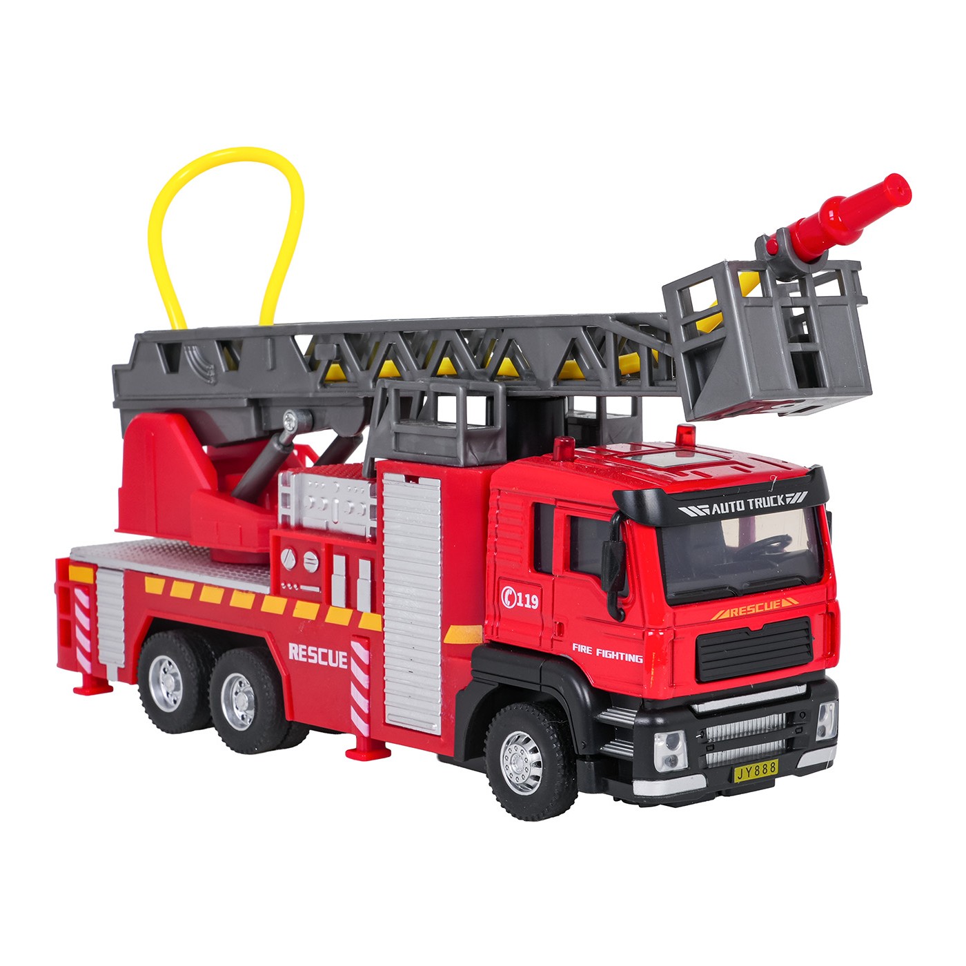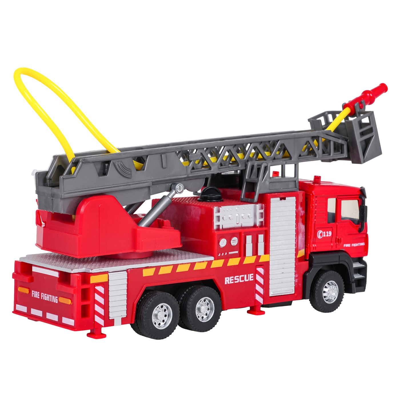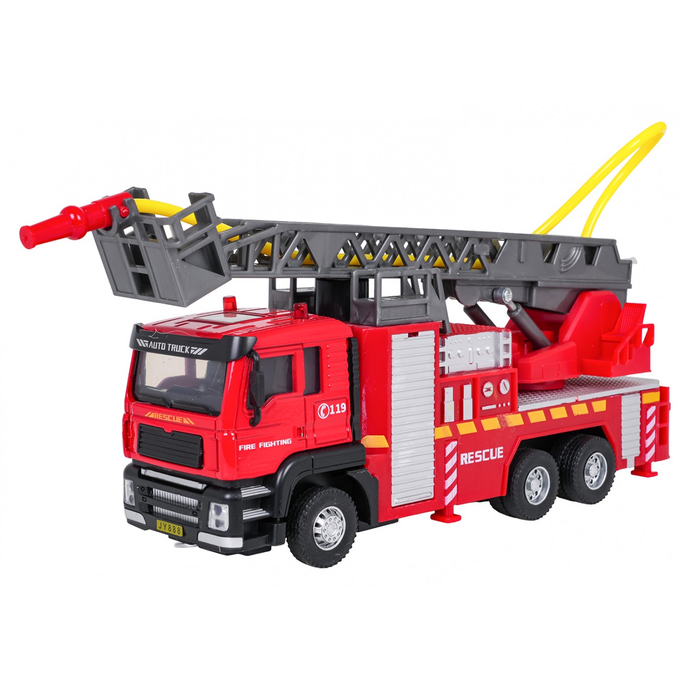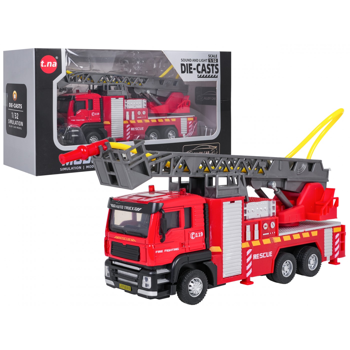 Interaktívna hasičská stanica v mierke 1:32 s funkciami vody, svetla a zvuku pre deti od troch rokov. Stanica je vyrobená z vysoko kvalitného plastu v žiarivých farbách. Je vybavená gumenými pneumatikami s dobrou priľnavosťou a sťahovacím mechanizmom. Stlačením hornej časti kabíny vozidla sa spustí zvuk hasičského auta a blikajúce strešné svetlá. Rebrík hasičského auta sa dá manuálne zdvíhať, spúšťať a vysúvať. Naplňte nádrž umiestnenú vedľa kabíny vodou a stlačte čerpadlo, aby ste uvoľnili vodu z hadice. Hračka je napájaná 3 batériami AG13 (súčasťou balenia).