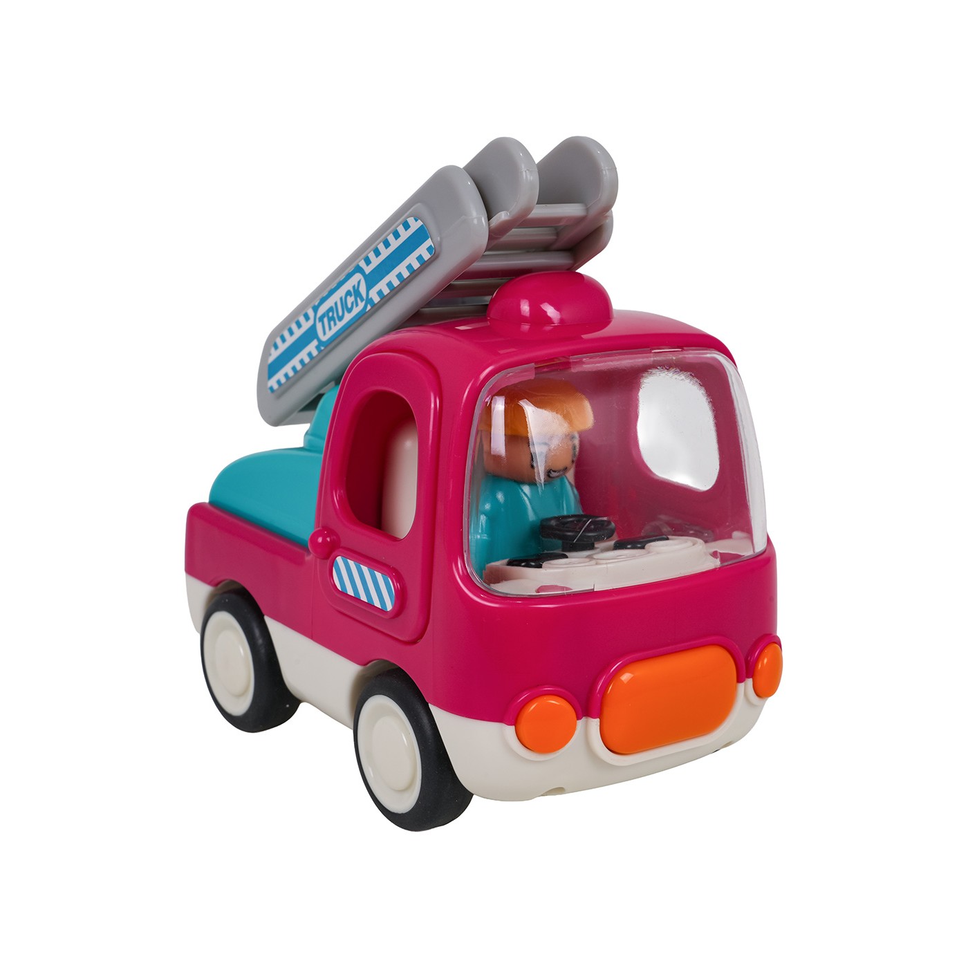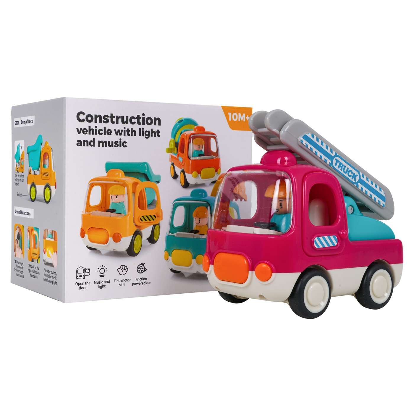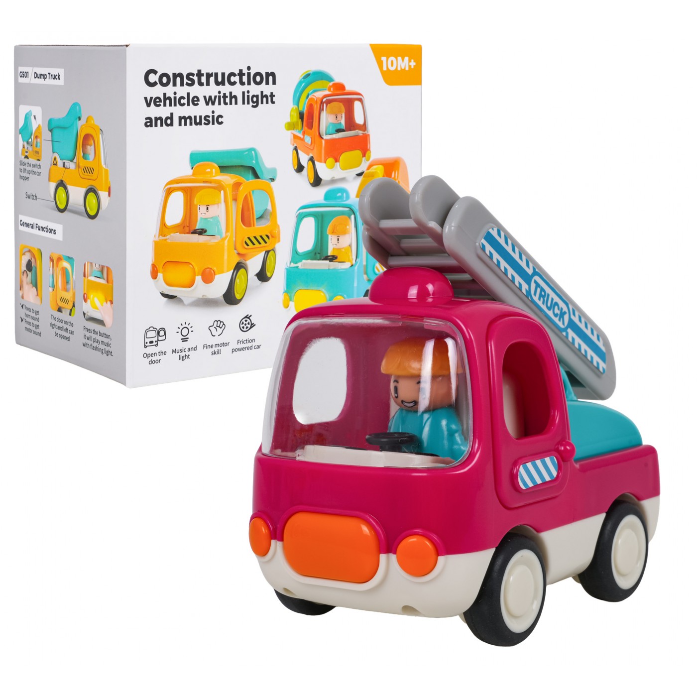 Vlastnosti: - pre deti od desiatich mesiacov veku, - hračka vyrobená z najkvalitnejšieho plastu, - zvukové efekty: veselé melódie (tlačidlo na prednej strane vozidla), zvuk štartovania vozidla a klaksón (tlačidlá vo vnútri kabíny), - svetelné efekty: blikajúce tlačidlo, ktoré aktivuje melódie, - pohyblivé prvky: bočné dvere kabíny, výložník s rebríkom je možné vysunúť a otočiť o 180 stupňov, - gumené pneumatiky, - trecí pohon. |
