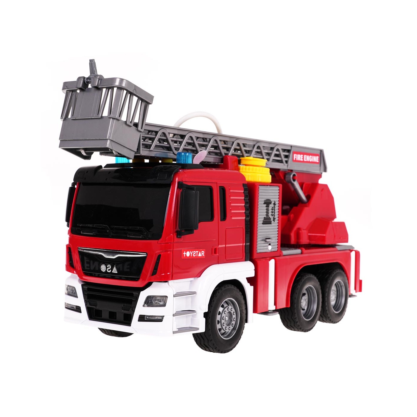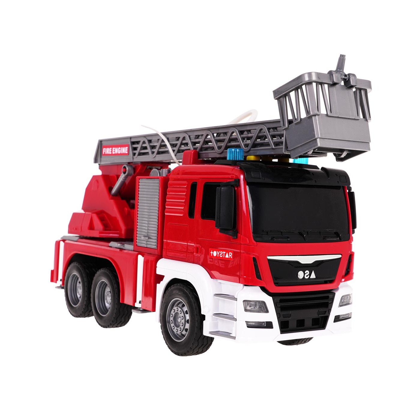 - určené pre deti od 3 rokov, - vyrobené z najkvalitnejšieho plastu v živých farbách, - gumené pneumatiky, - Pohon trecieho typu, - svetelné efekty: svetlá v hornej časti kabíny, - zvukové efekty: sirény, zvuky štartovania vozidla a chodu motora, - zdvihnutý, spustený a vysunutý rebrík s košíkom, - Výložník otočný o 360 stupňov (manuálne). - funkcia vody, - zvýšený bočný poklop vozidla s vchodom na požiarnu hadicu, - 4 výsuvné podpery, - otváracia klapka na ramene, - batérie sú súčasťou balenia. |