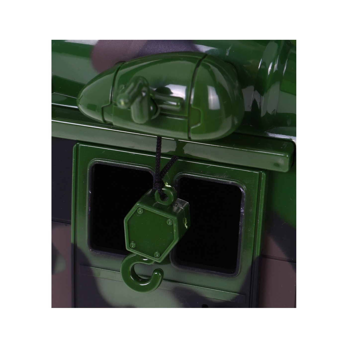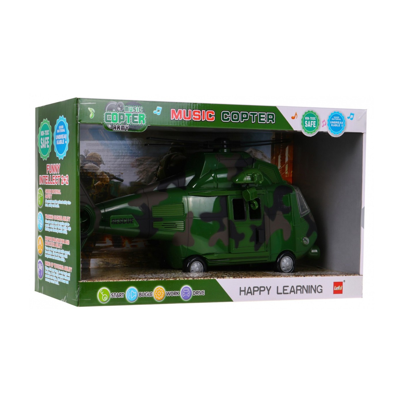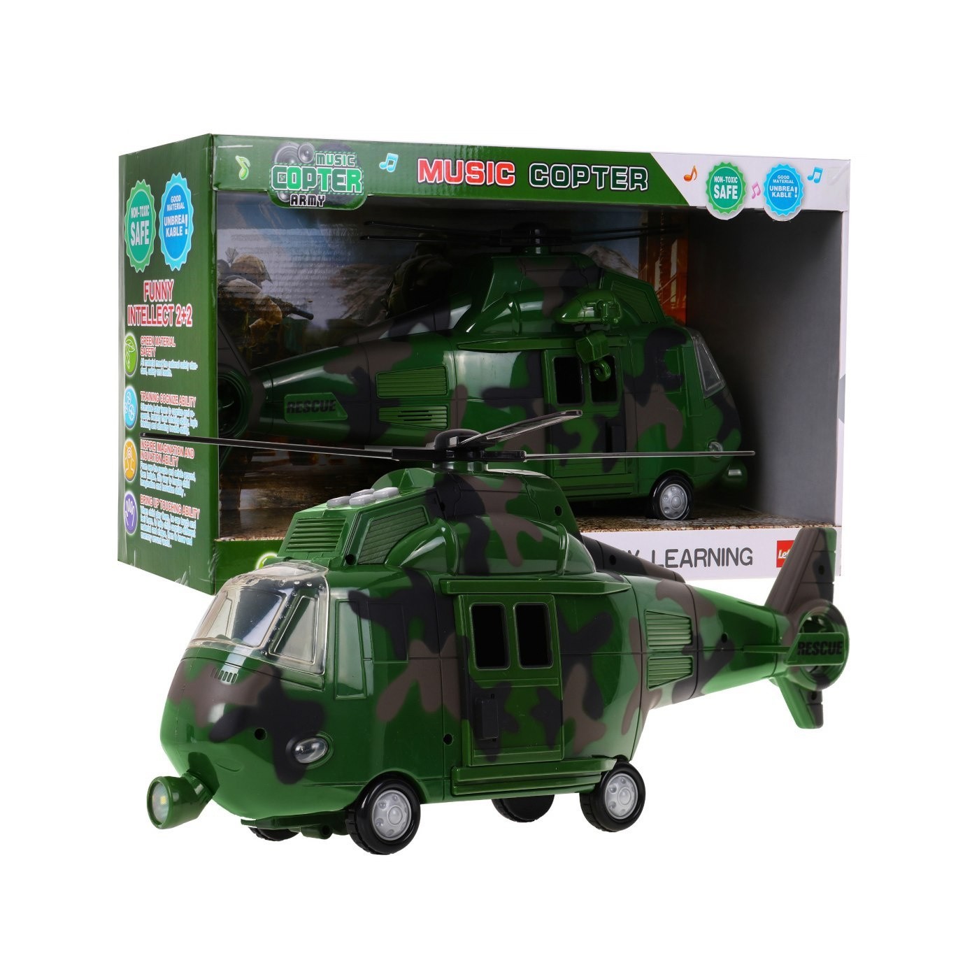 | | Helikopter wojskowy to doskonały sposób na prezent dla każdego małego fana marynarki wojennej. Piękne żywe kolory w tonacji moro, solidne wykonanie. Zabawka wyposażona jest w efekty świetlne i dźwiękowe. Po naciśnięciu cyferki 1 na górze helikoptera słychać dźwięki startu i pracy helikoptera, świecą się światełka po bokach i z przodu. Po naciśnięciu kolejno cyferek 2,3,4 grają melodyjki i mrugają światełka. Zabawka posiada napęd na przednie koła. Z boku helikoptera znajduje się korbka, kręcąc nią opuszczamy hak na linie. Kręcąc w drugą stronę zwijamy linę. Drzwi po bokach zamykają się i otwierają. Otwierana kabina samolotu, można posadzić ulubioną figurkę. Zabawka zapakowana w kolorowe pudełko, idealne nadaje się na prezent. Zabawka przeznaczona dla dzieci powyżej 3-go roku życia. Posiada certyfikat CE. Zabawka zasilana jest bateriami typu 2 x 1,5 AA (brak w zestawie). Baterie montujemy u góry helikoptera. |
