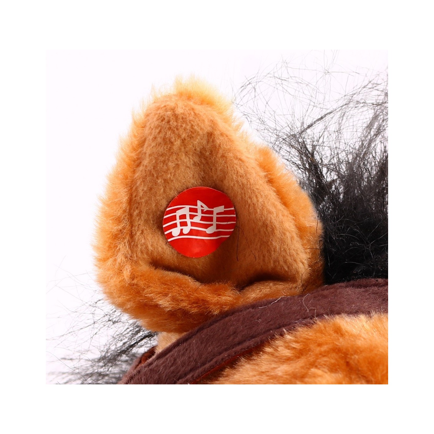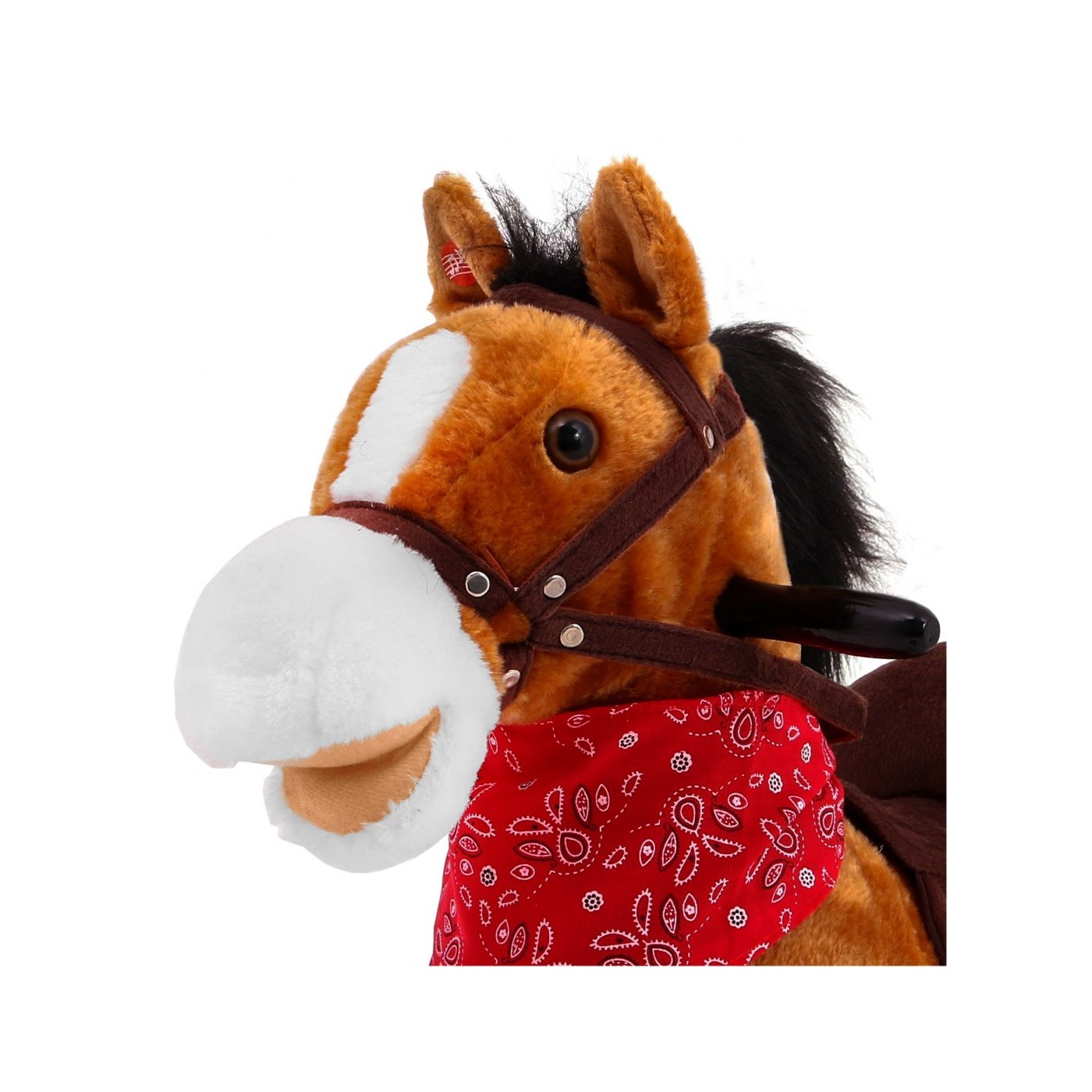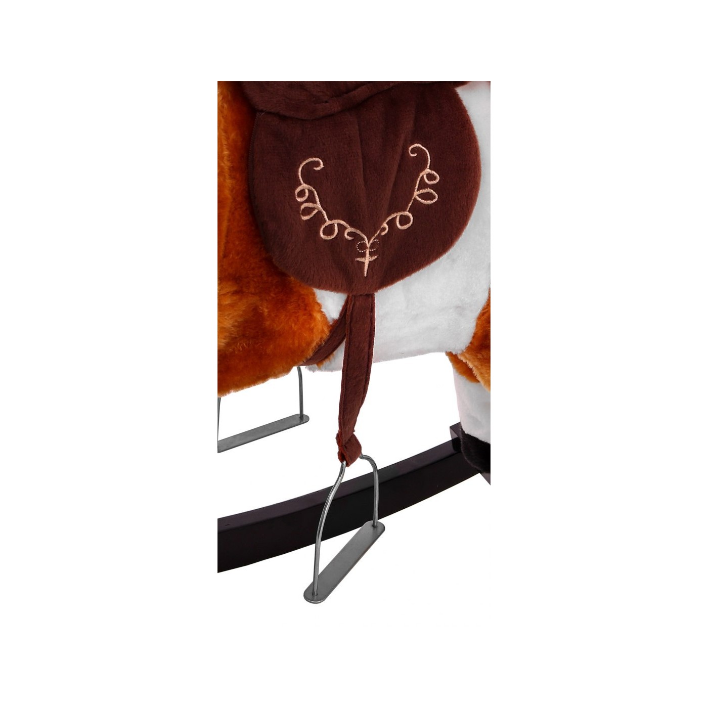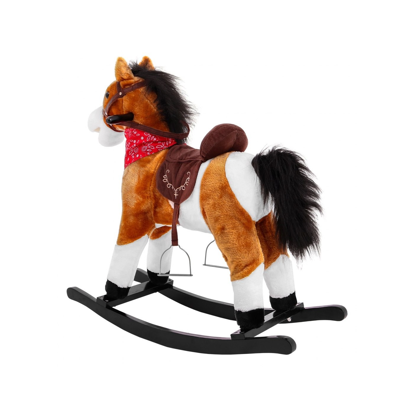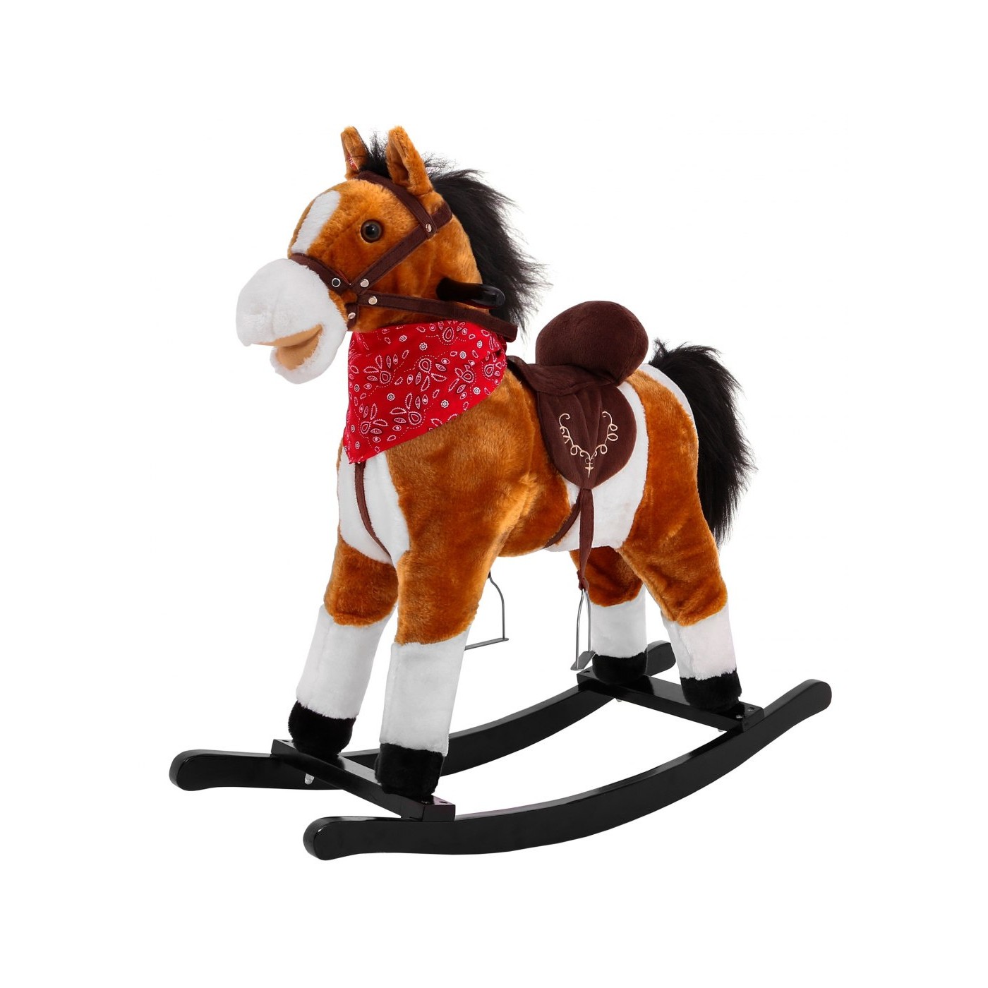 Plyšový hojdací koník so zvukovými efektmi pre deti od 3 rokov. Koník určite poteší každé dieťatko. Je mäkký na dotyk, má sedlo so strmeňmi, opraty a záves okolo krku. Na ľavom uchu koňa je senzor, ktorý spúšťa zvuk erdžania a cválania a pohybuje chvostom a papuľou. Na pravom uchu senzor spúšťa kovbojskú pieseň a pohybuje chvostom a papuľou. Hračka je napájaná 3 x AA 1,5 V batériami, batérie nie sú súčasťou balenia.