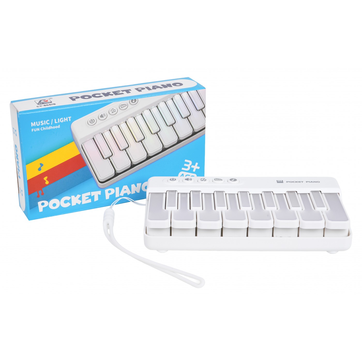 Prenosné biele piano pre deti od troch rokov. Piano bude užitočné pri učení sa hry vďaka osvetleným klávesom, ktoré ukazujú, ako hrať. Jeho ľahký a kompaktný dizajn umožňuje jednoduché prenášanie kamkoľvek. Hračka je napájaná 3 x 1,5 V AAA batériami (nie sú súčasťou balenia).