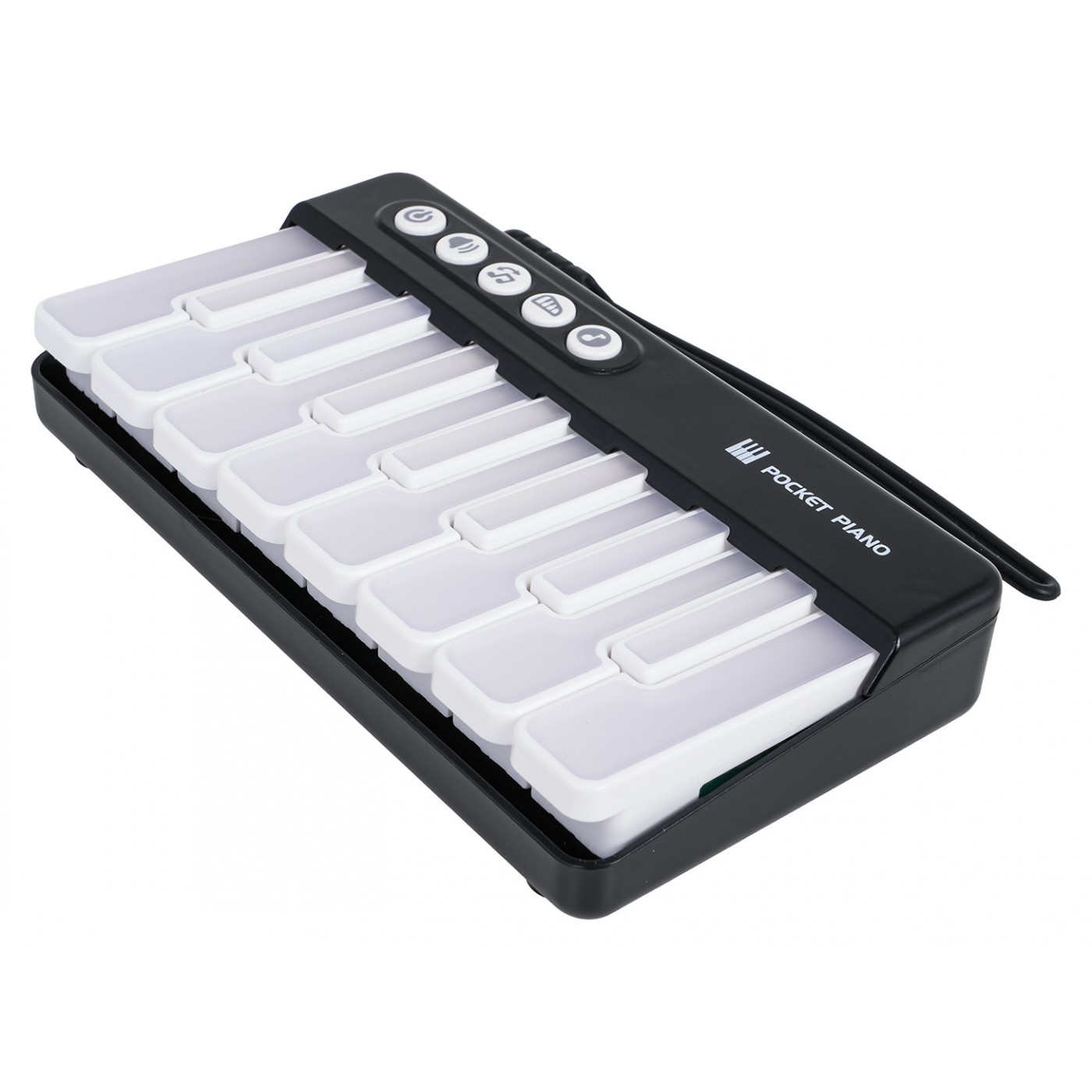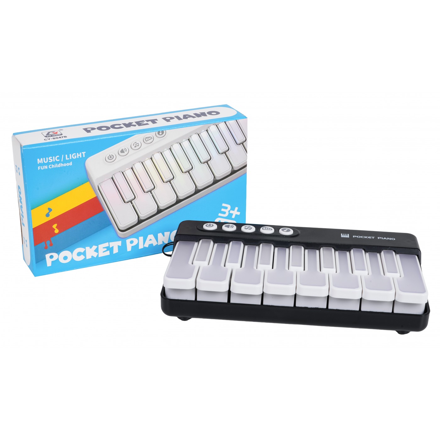 Prenosné čierne piano pre deti od troch rokov. Piano bude užitočné pri učení sa hry vďaka osvetleným klávesom, ktoré ukazujú, ako hrať. Jeho ľahký a kompaktný dizajn umožňuje jednoduché prenášanie kamkoľvek. Hračka je napájaná 3 x 1,5 V AAA batériami (nie sú súčasťou balenia).