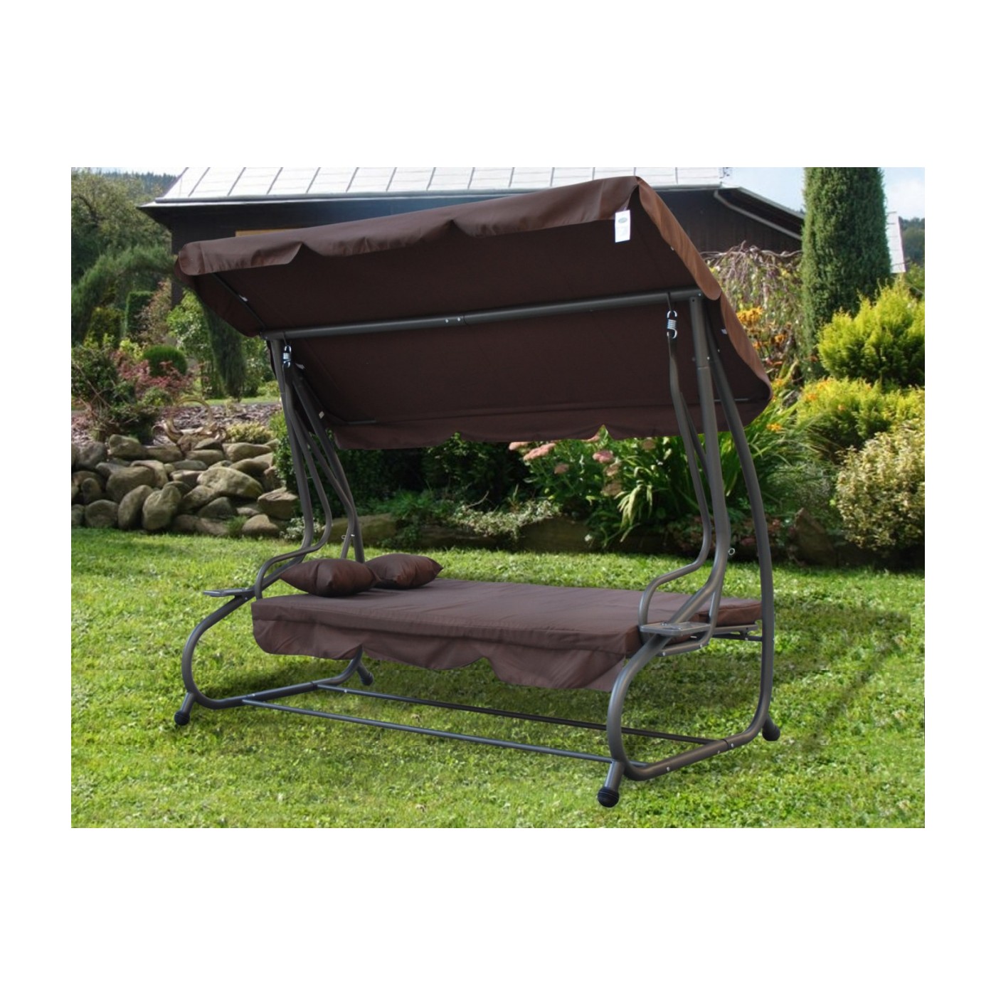 | Opis | Huśtawka ogrodowa z rozkładanym siedziskiem i regulacją daszka, ciemny brąz [8011 NEW CB]