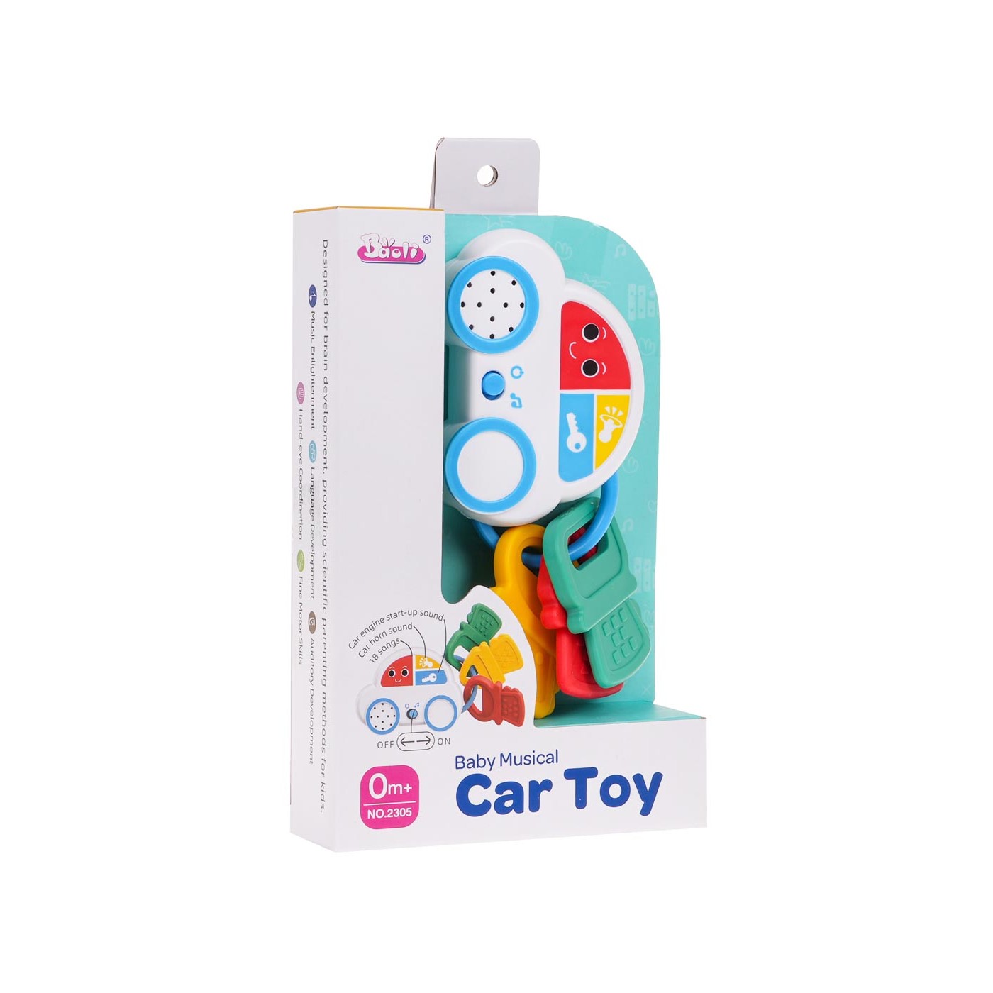 Interaktívne autíčko na kľúče pre deti od 6 mesiacov. Hračka je vyrobená z najkvalitnejšieho plastu v živých farbách. Nemá ostré konce a je pre bábätko úplne bezpečná. Kľúče pripevnené k autu možno použiť ako hryzátko. Autíčko je napájané 3 x AAA 1,5 V batériami (nie sú súčasťou balenia). Keď dieťa stlačí tlačidlo s kľúčom, budeme počuť zvuk štartovania auta. Tlačidlom klaksónu sa aktivuje zvuk klaksónu a pod tlačidlom smajlíka je 18 melódií.