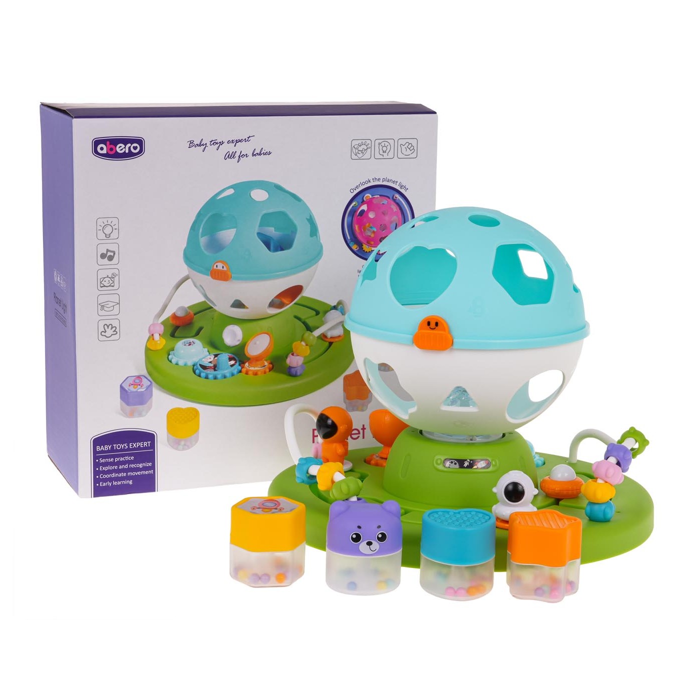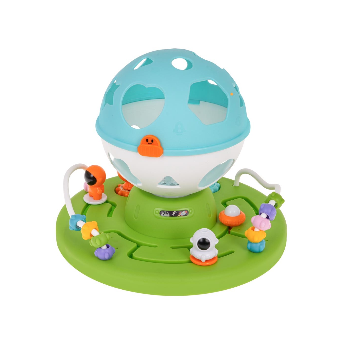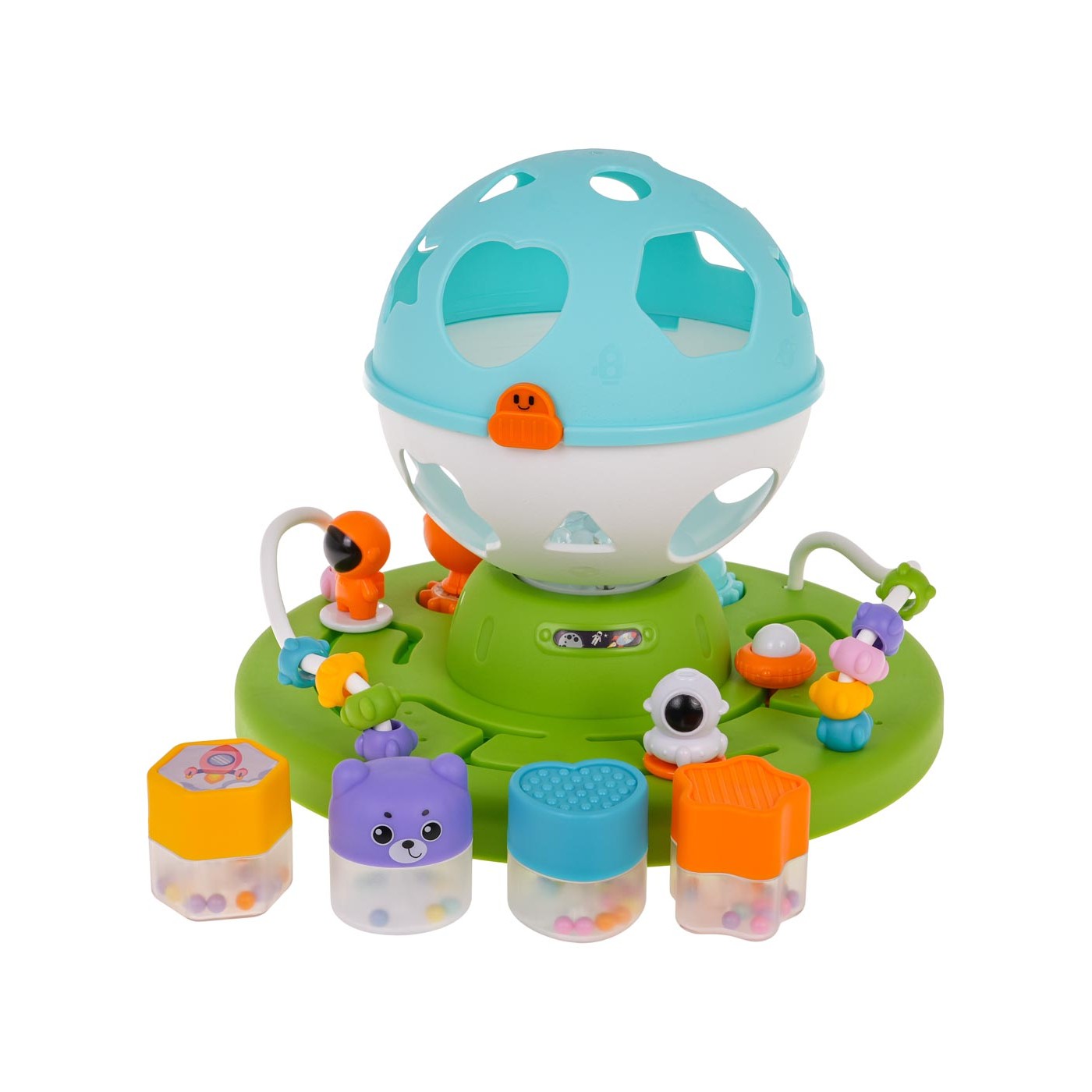 Interaktívna, vzdelávacia triedička s vesmírnou tematikou pre deti od 18 mesiacov. Triedička je vyrobená z najkvalitnejšieho plastu v živých farbách, ktoré upútajú pozornosť dieťaťa. Hračka pozostáva zo základne s ozubenými kolesami na točenie, labyrintov na prekonávanie a hádaniek. Na podstavci je tiež okrúhly triedič s otvormi v tvare geometrických obrazcov. Dieťa musí priradiť bloky zahrnuté v súprave k príslušným tvarom na triedičke. Po zhodení všetkých blokov možno triedič otvoriť a zábava môže začať odznova. Sada obsahuje 4 bloky. Každá z nich má navyše vo vnútri malé guľôčky, vďaka ktorým blok hrká. Triedič má aj svetelnú a zvukovú funkciu, zvnútra gule vychádza svetlo hviezd a je počuť melódie. Hra s týmto triedičom naučí vaše dieťa spájať a kategorizovať podľa tvaru a farby. Zlepšuje kognitívne a motorické zručnosti. Dieťa sa učí príčine a následku a zlepšuje zručnosti pri riešení problémov. Hračka je napájaná 3 x AA 1,5 V batériami (nie sú súčasťou balenia).