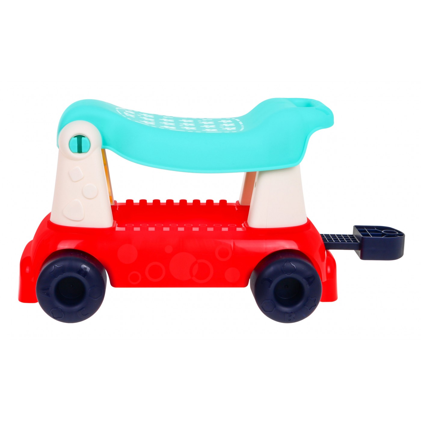 | Multifunkcyjny, interaktywny zestaw 4 w 1 to propozycja dla dzieci między 12 a 36 miesiącem życia. Ten zestaw łączy w sobie cztery różne opcje zabaw, można go używać jako chodzika, jeździka, wózka do ciągnięcia oraz bawić się nim na siedząco. Zestaw posiada funkcje dźwiękowe i świetlne. Zabawka zasilana jest bateriami typu 3 x AAA 1.5 V (brak w zestawie). Funkcje zabawki: - włącznie/wyłączanie/regulacja głośności, - odczepiany telefonik wydający odgłos po każdym naciśnięciu, - kolorowe klawisze - nauka dźwięków, nut, muzyki odgłosy związane z pociągiem, - kolorowe światełko w kominie pociągu, - zabawne okno – otwórz okno a usłyszysz dźwięki kreskówki, zamknij okno a usłyszysz dźwięki pociągu, - zegar z ruchomą wskazówką- nauka czasu oraz trening koordynacji wzrokowo-ruchowej, - otwierana książeczka z efektami dźwiękowymi, - barometr pociągu – przekręć aby otworzyć dźwięk barometru, - 3 kolorowe kwadraty z przekładanką, aby ćwiczyć małe rączki, - obrotowe koła zębate – kręć nimi by usłyszeć dźwięk jazdy pociągu, - siedzisko wklęsłe, antypoślizgowe, - schowek na zabawki pod siedziskiem. |