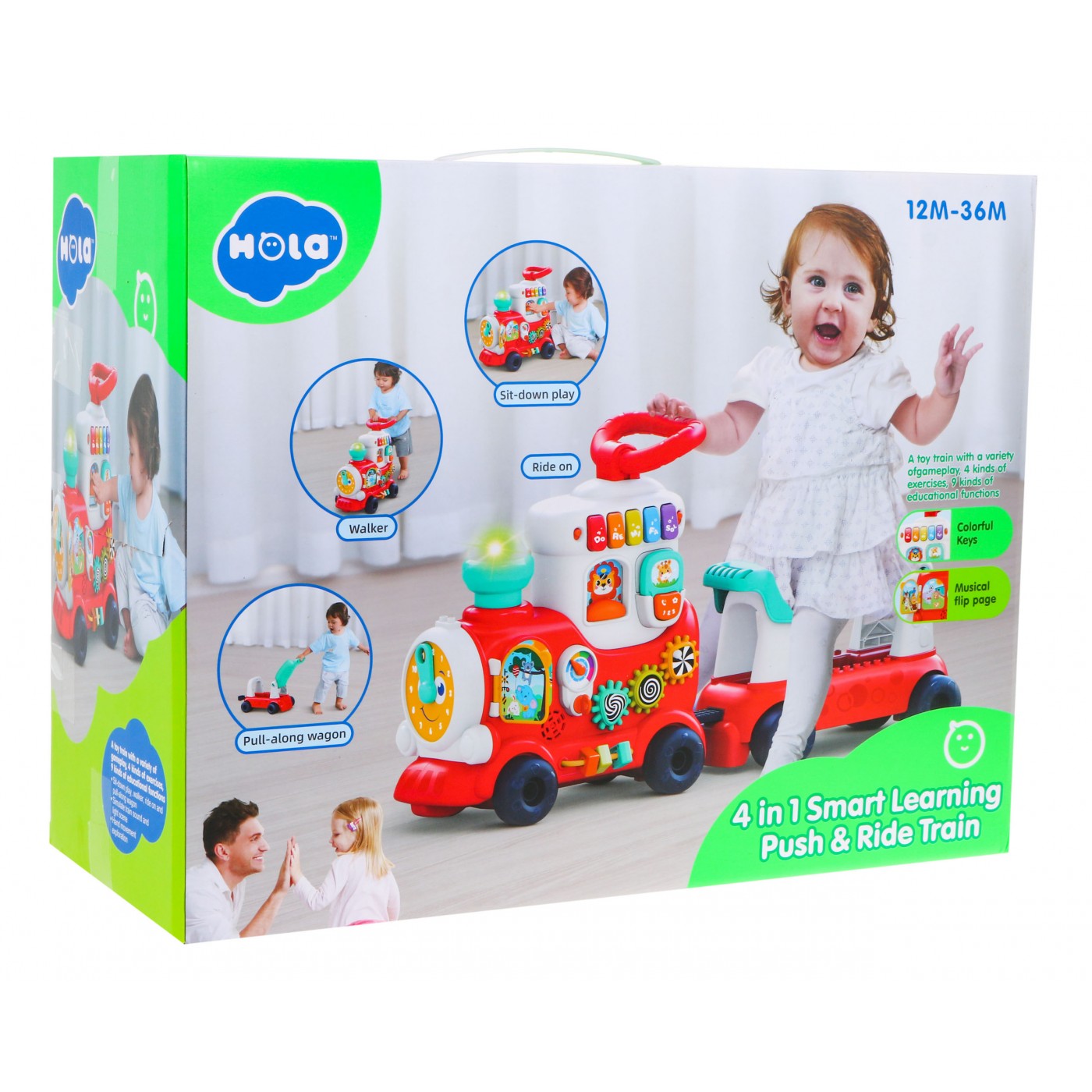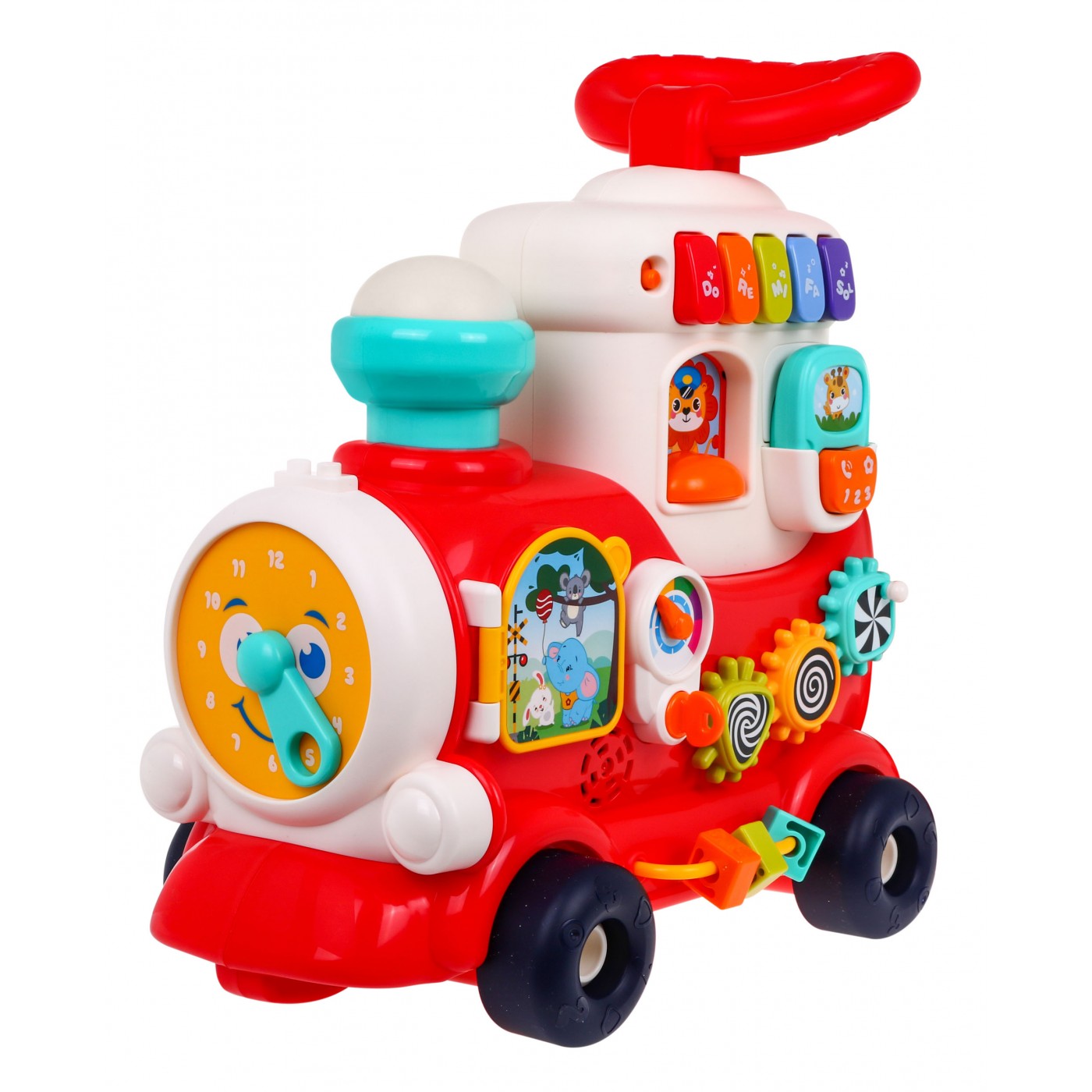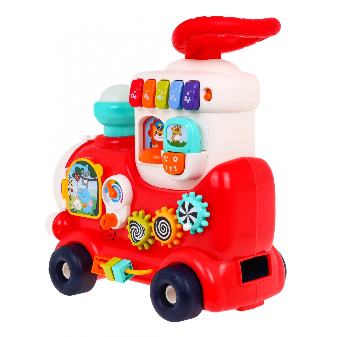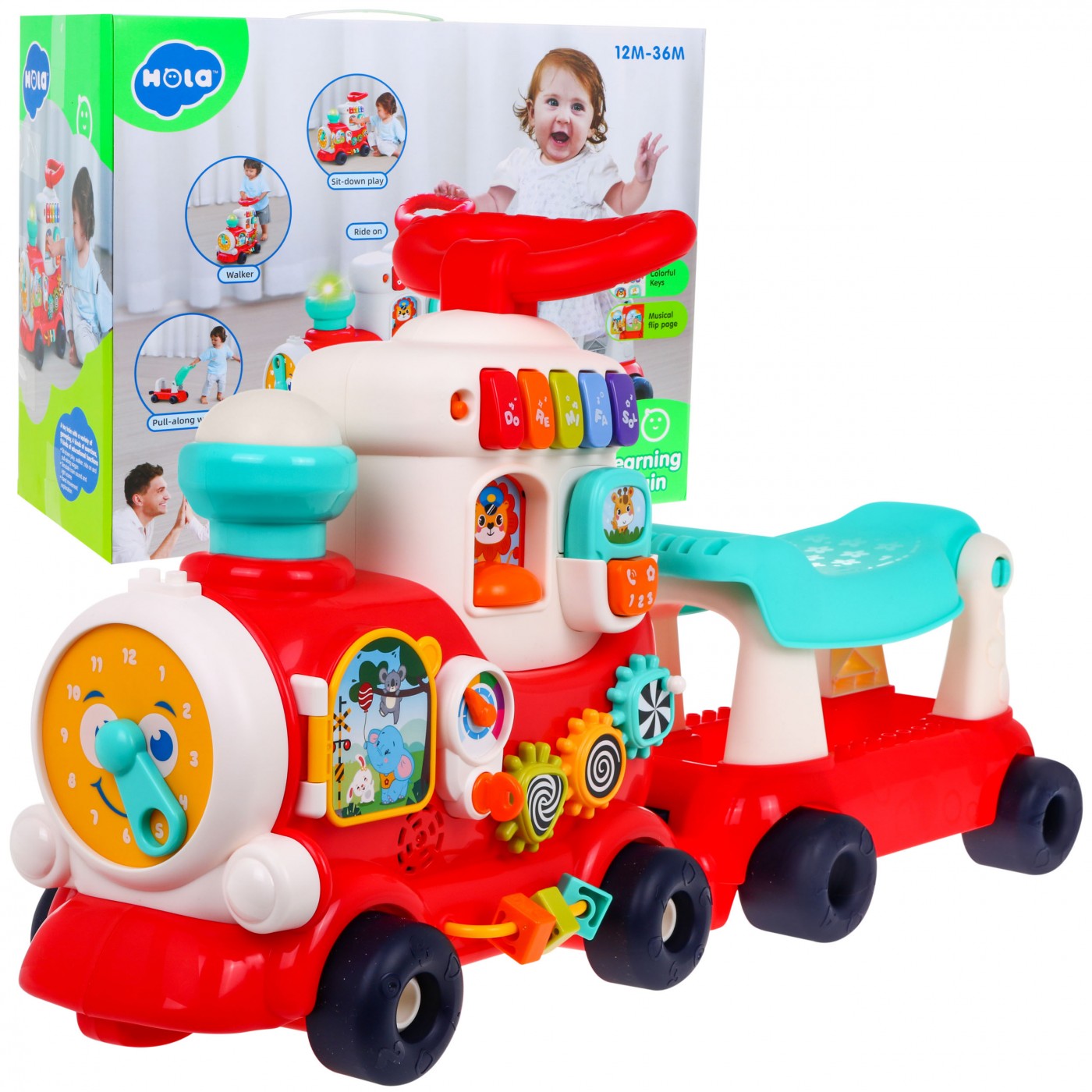 Interaktívna lokomotíva 4v1 pre deti 12m+ tlačná rukoväť+ chodítko + vozík + edukačná hračka