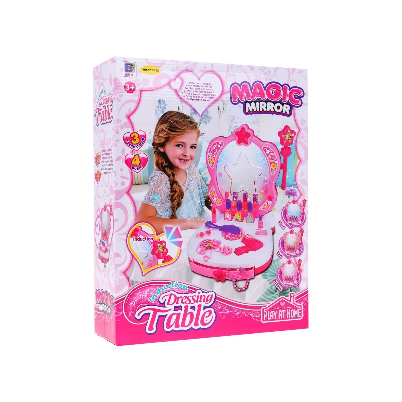 Interaktívny prenosný toaletný stolík pre dievčatká 3+ Zrkadlo + kozmetika + príslušenstvo
