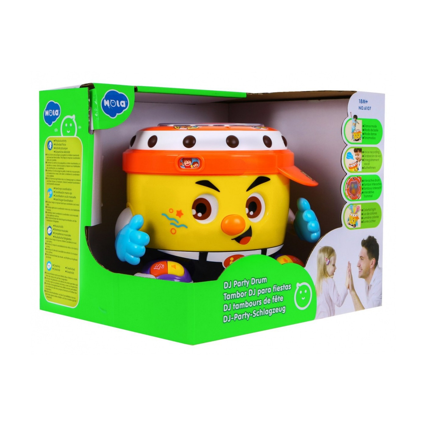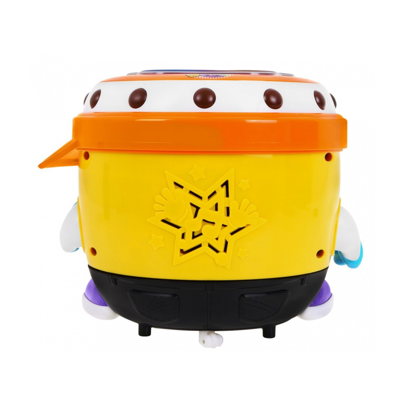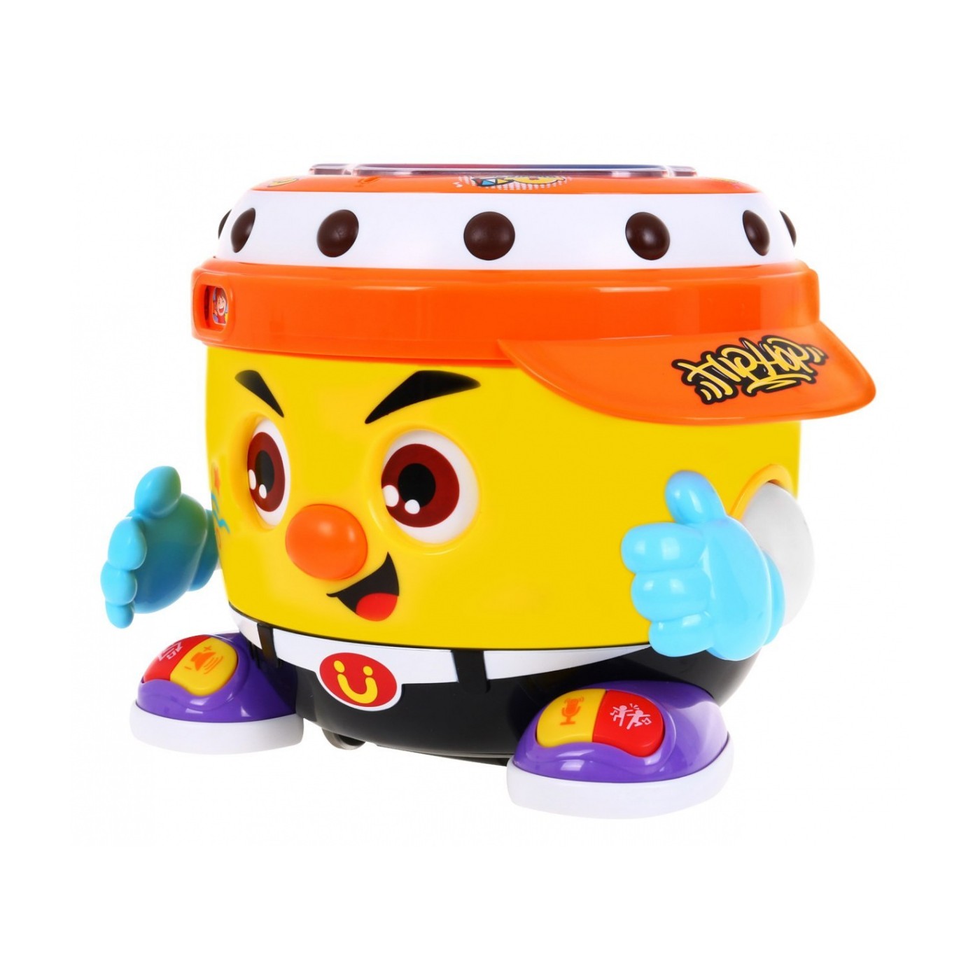 | Przedstawiamy Państwu niesamowity, wesoły, interaktywny bębenek dla dzieci już od 18 – go miesiąca życia. Bębenek zawiera bogaty zestaw melodii, dźwięków i efektów świetlnych. Podczas zabawy dziecko będzie rozwijać percepcję wzrokową, dźwiękową i dotykową. Dźwięki i melodie rozwijają wrażliwość muzyczną i doskonalą słuch. Funkcje zabawki: - regulator głośności, - wgrane, miłe dla ucha melodyjki, - migające światełka, - rytmy perkusji, - nagrywanie dźwięku, - możliwość zmiany trybów. Na spodzie zabawki znajduje się przełącznik, tryb 1 i tryb 2. W trybie 1 bębenek przesuwa się po podłożu jednocześnie ruszając nóżkami, rączkami, oczami. W trybie 2 bębenek pozostaje w miejscu, tańczy ruszając rączkami, nóżkami i oczkami. W górnej części bębenka znajduje się panel w który dziecko może uderzać a wydobywać będą się rytmy perkusji i migać światełka. Obrotowa czapka, po przekręceniu której słychać różne style muzyczne. Zabawka posiada funkcje nagrywania do czterech słów. Twoje dziecko może coś powiedzieć a bębenek zmieni słowa w piosenkę. Zabawka zasilana jest bateriami typu AA 5 x 1,5V – brak w zestawie. Zabawka bardzo starannie wykonana, żywe kolory, ucieszy każdego maluszka. Zabawka posiada certyfikat CE. | |