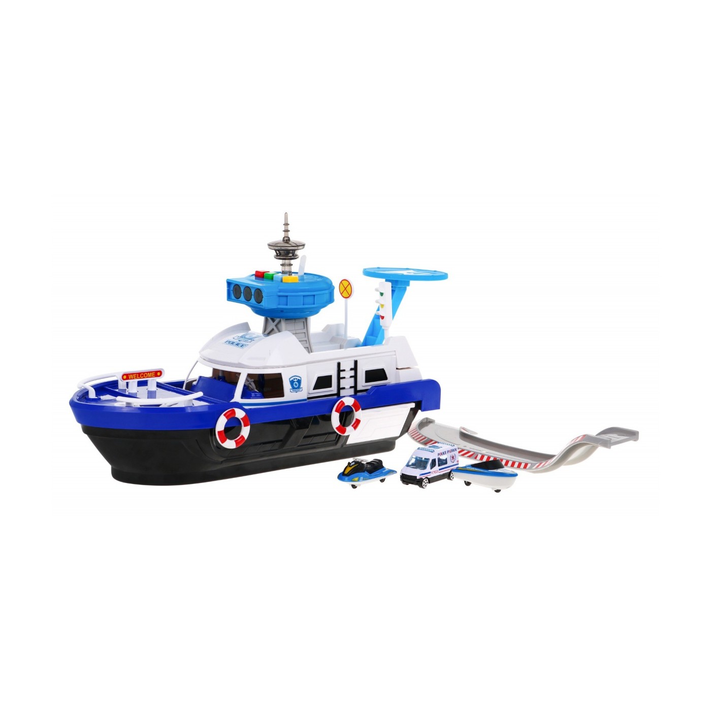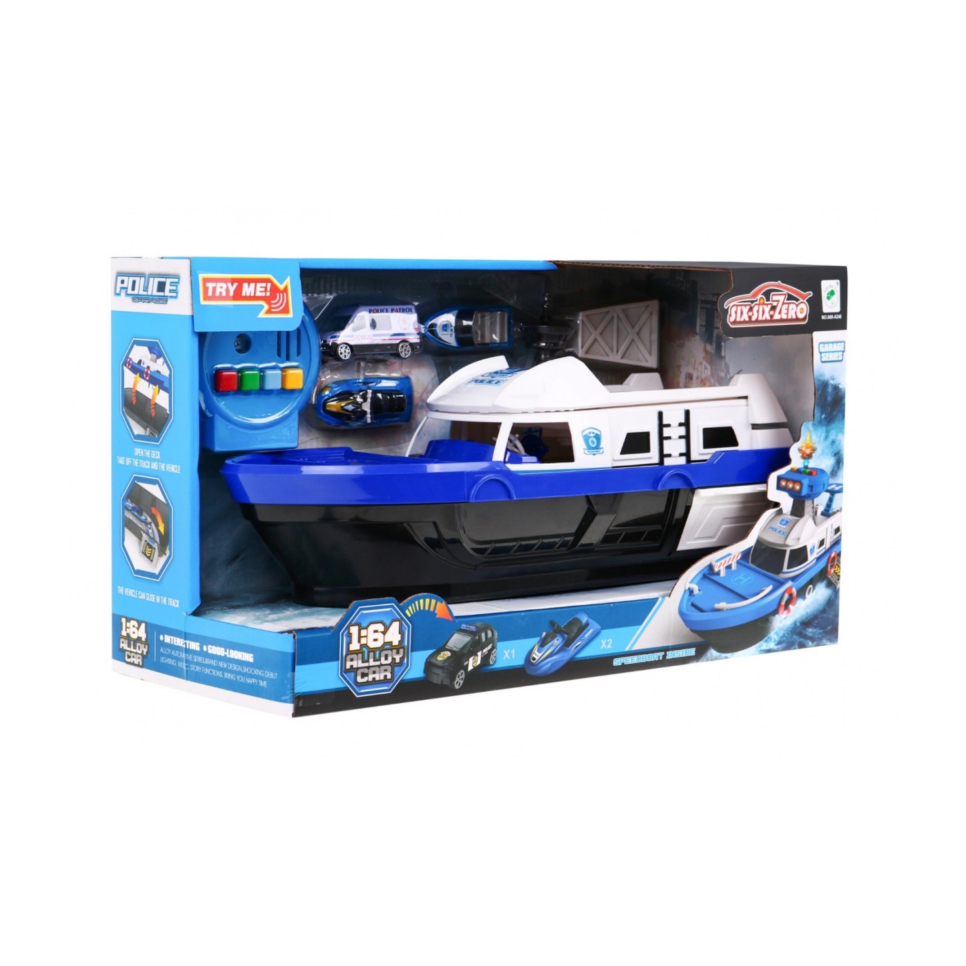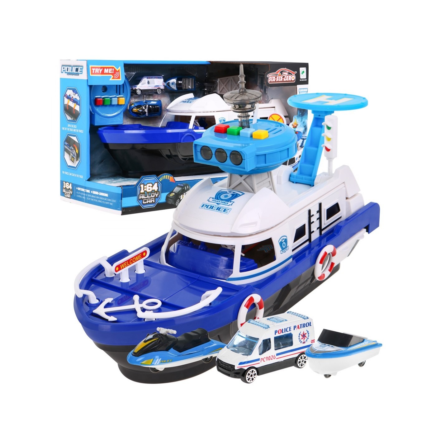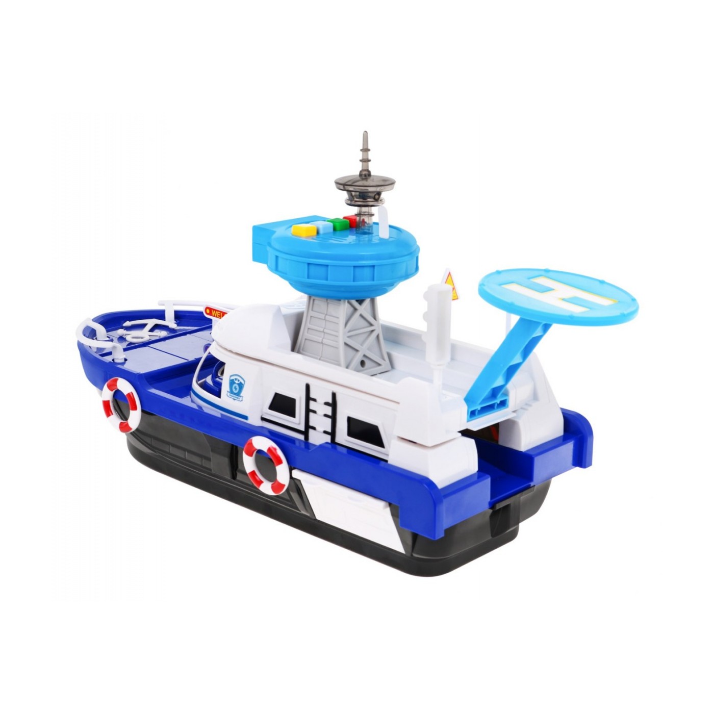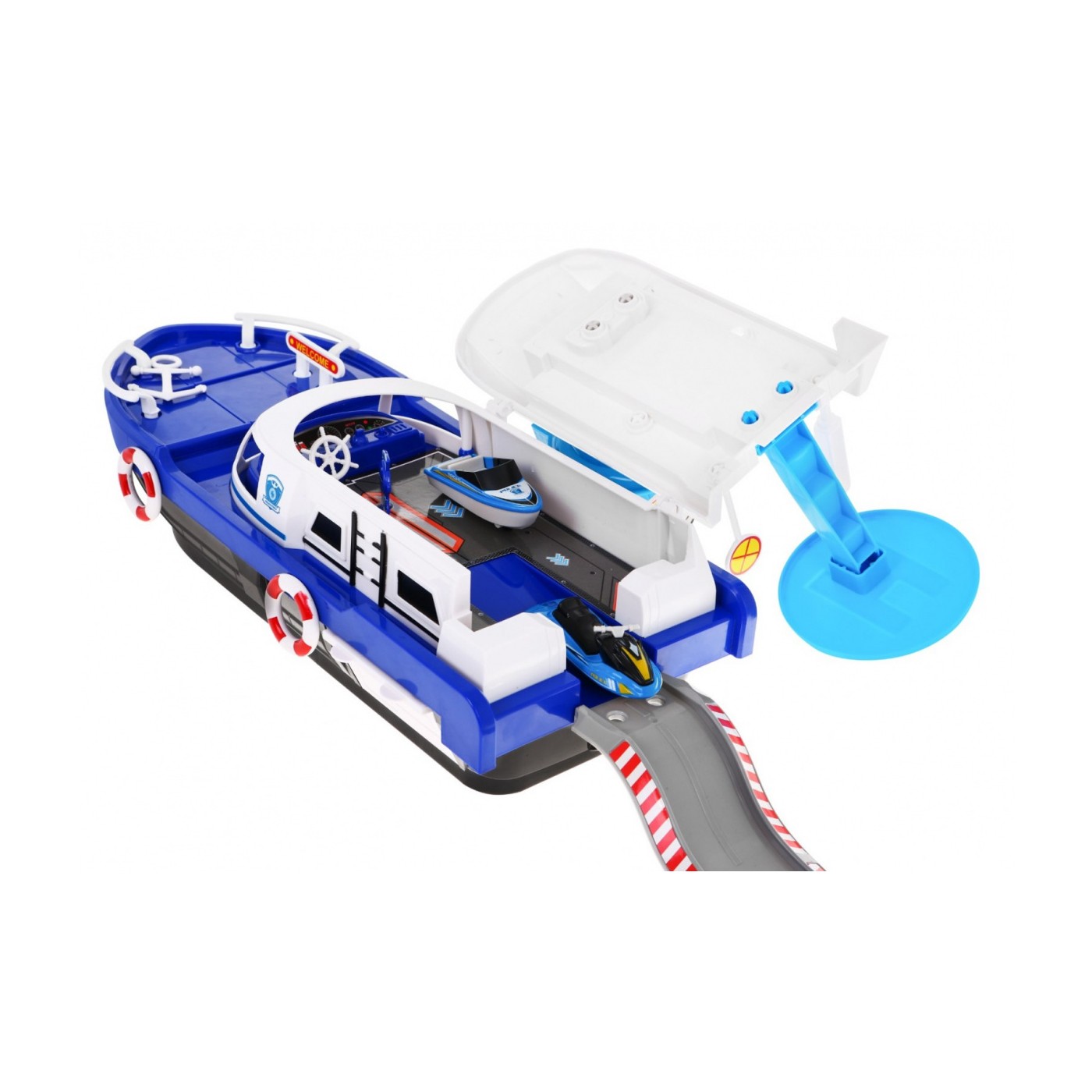 Interaktívna Policajná loď 2v1 pre deti 3+ Úložný priestor na autíčka + 3 vozidlá + Svietidlá Zvuky
