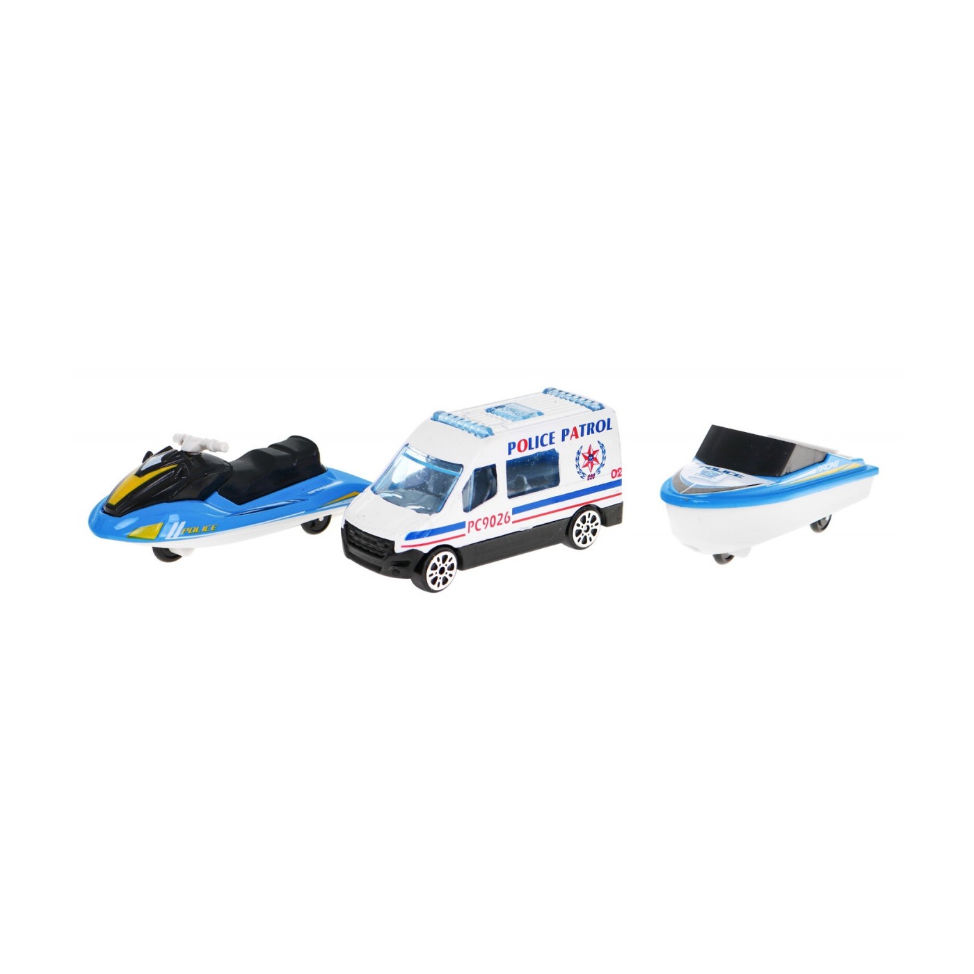 | - łódź policyjna z wieżą kontrolną, lotniskiem dla helikopterów, - doczepiana zjeżdżalnia, - furgonetka policyjna, - skuter wodny, - motorówka. | |