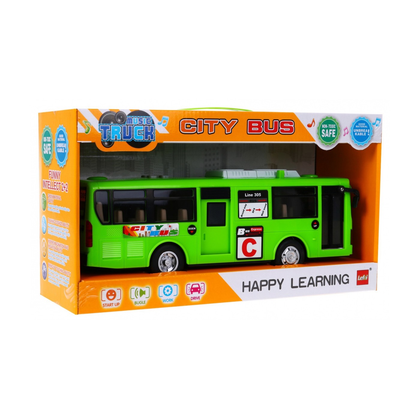 | | Realistyczny wygląd, solidne wykonanie. Twoje dziecko podczas zabawy będzie mogło wcielić się w rolę kierowcy, decydować kiedy zatrzymać się, otworzyć drzwi, zatrąbić. Drzwi autobusu otwierane są i zamykane za pomocą drążka znajdującego się na dachu autobusu. Świecące światła z przodu i w środku pojazdu. Panel z przyciskami na górze autobusu. Po naciśnięciu numeru 1 uruchamia się sygnał klaksonu. Po wciśnięciu numerów 2,3,4 słychać muzykę i migają przednie światła. Zabawka posiada napęd na tylne koła. Zabawka rozwija i kształtuje wyobraźnię dziecka, pomaga rozwijać umiejętności manualne. Przeznaczona dla dzieci od 3-go roku życia, posiada certyfikat CE. |