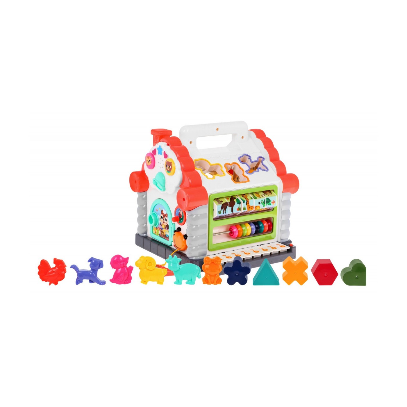 Interaktívny Domček senzorický pre deti 18m+ Hračka pre raný vývoj + Triedič tvarov + Pianíno + Počítadlo