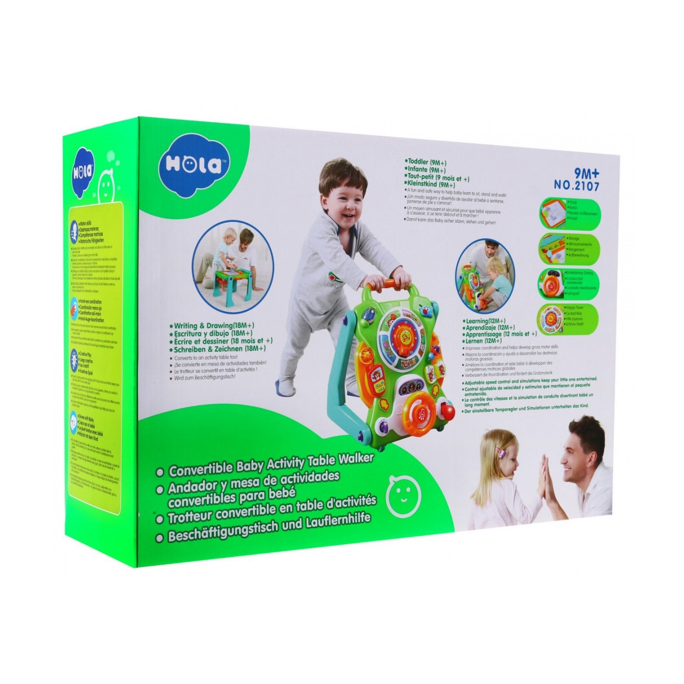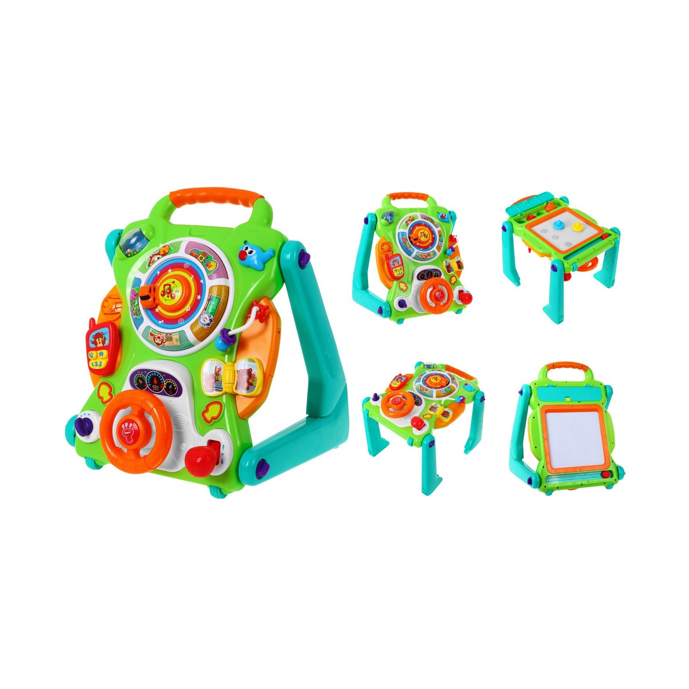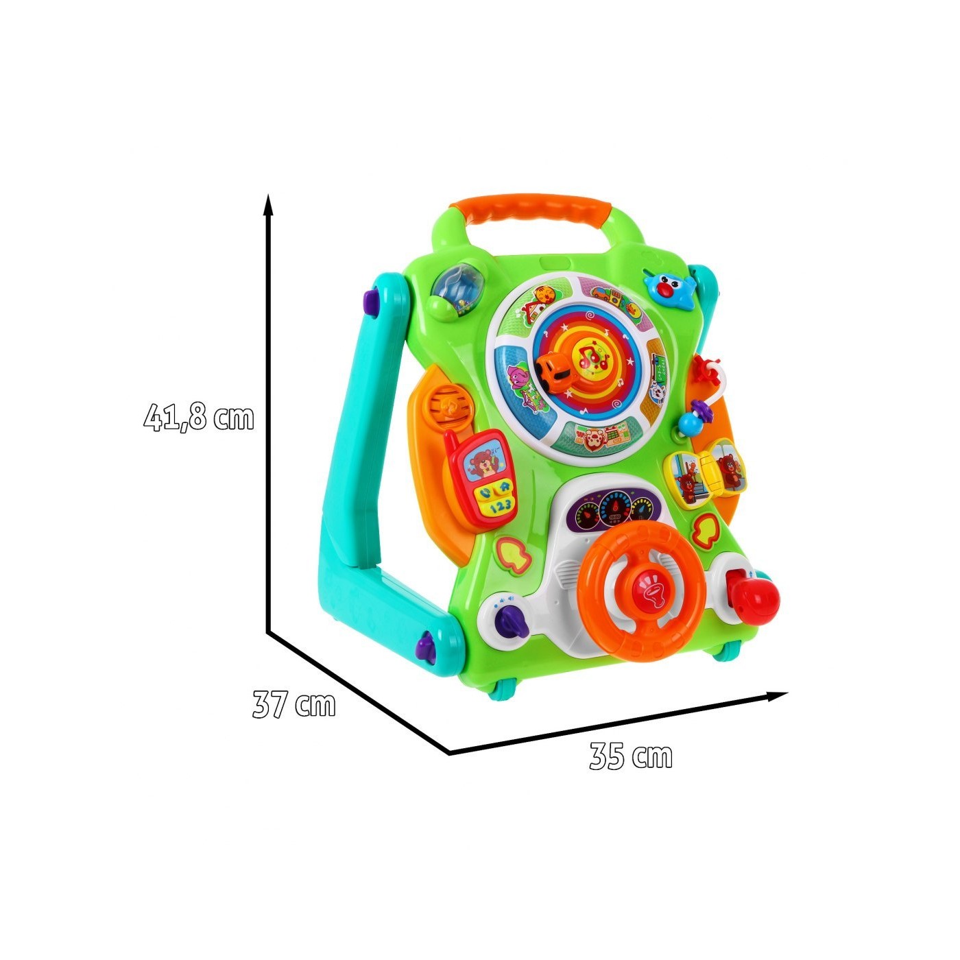 | | Interaktywny, wielofunkcyjny chodzik dla maluszków pomoże twojemu dziecku rozwijać siłę nóg, dzięki czemu dziecko szybko zacznie stawiać pierwsze kroki. Z tym chodzikiem nie można się nudzić, wesołe dźwięki, światełka, obrotowa kierownica. Z drugiej strony zabawki znajduje się znikopis z pieczątkami i rysikiem. Zabawkę zaprojektowano tak, aby rosła razem z dzieckiem. Ciekawa konstrukcja pozwala w bardzo prosty sposób przekształcić ją z jeździka na stolik. Stolik można odwracać stroną ze znikopisem lub zabaweczkami. Chodzik wykonany został bardzo starannie i dokładnie, bardzo żywe kolory, wesołe obrazki. Łatwy i szybki montaż i demontaż. Wielofunkcyjny chodzik rozwija: – zdolności manualne, – koordynację ruchową, – umiejętności rozróżniania kształtów, – kreatywność i wyobraźnię, – logiczne myślenie. Zabawka posiada: - wygodną rączkę do trzymania lub przenoszenia, - blokadę kół, - 4 nogi, - panel tylni a nim znikopis z pieczątkami i pisaczkiem magnetycznym, - panel przedni a na nim - obrotowy walec z kuleczkami w środku - samolocik wydający odgłos lotu - przesuwany samochodzik - kierownicę - dźwignię biegów z odgłosami jazdy do przodu i tyłu - książeczkę - grzechotkę - wyjmowany telefonik - regulację głośności Dzięki zabawie tym pchaczem zmysły twojego maluszka będą pobudzone efektami świetlnymi i dźwiękowymi. Zabawka przeznaczona dla dzieci powyżej 9-go miesiąca życia i posiada certyfikat CE. Zabawka zasilana bateriami typu 3 x AA (brak w zestawie). Zabawka zapakowana w kolorowe opakowanie typu „walizka” z rączką do trzymania. Instrukcja montażu i opis funkcji znajduje się w opakowaniu. |