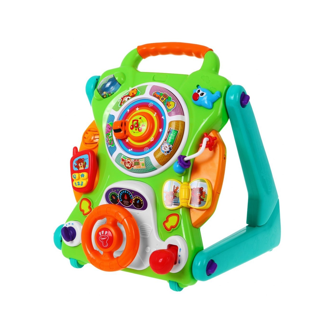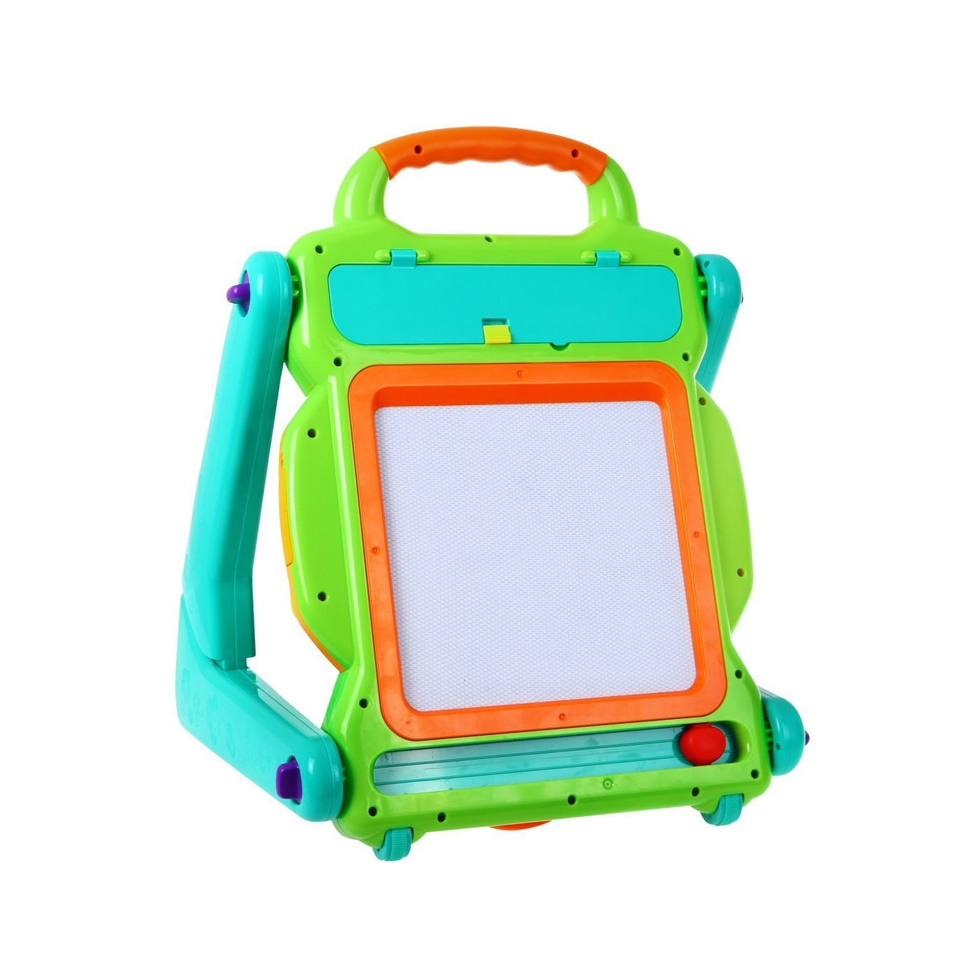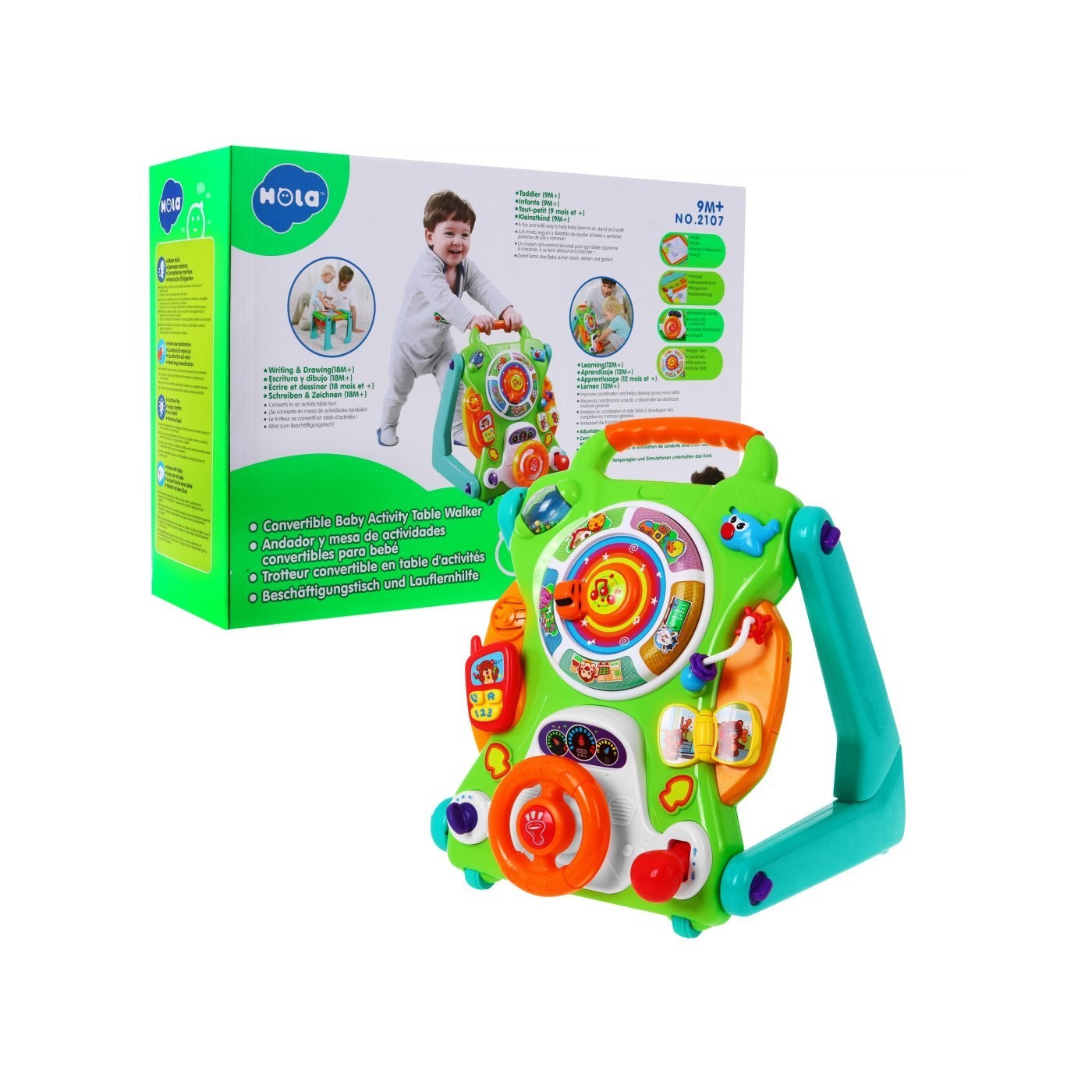 | | Interaktywny, wielofunkcyjny chodzik dla maluszków pomoże twojemu dziecku rozwijać siłę nóg, dzięki czemu dziecko szybko zacznie stawiać pierwsze kroki. Z tym chodzikiem nie można się nudzić, wesołe dźwięki, światełka, obrotowa kierownica. Z drugiej strony zabawki znajduje się znikopis z pieczątkami i rysikiem. Zabawkę zaprojektowano tak, aby rosła razem z dzieckiem. Ciekawa konstrukcja pozwala w bardzo prosty sposób przekształcić ją z jeździka na stolik. Stolik można odwracać stroną ze znikopisem lub zabaweczkami. Chodzik wykonany został bardzo starannie i dokładnie, bardzo żywe kolory, wesołe obrazki. Łatwy i szybki montaż i demontaż. Wielofunkcyjny chodzik rozwija: – zdolności manualne, – koordynację ruchową, – umiejętności rozróżniania kształtów, – kreatywność i wyobraźnię, – logiczne myślenie. Zabawka posiada: - wygodną rączkę do trzymania lub przenoszenia, - blokadę kół, - 4 nogi, - panel tylni a nim znikopis z pieczątkami i pisaczkiem magnetycznym, - panel przedni a na nim - obrotowy walec z kuleczkami w środku - samolocik wydający odgłos lotu - przesuwany samochodzik - kierownicę - dźwignię biegów z odgłosami jazdy do przodu i tyłu - książeczkę - grzechotkę - wyjmowany telefonik - regulację głośności Dzięki zabawie tym pchaczem zmysły twojego maluszka będą pobudzone efektami świetlnymi i dźwiękowymi. Zabawka przeznaczona dla dzieci powyżej 9-go miesiąca życia i posiada certyfikat CE. Zabawka zasilana bateriami typu 3 x AA (brak w zestawie). Zabawka zapakowana w kolorowe opakowanie typu „walizka” z rączką do trzymania. Instrukcja montażu i opis funkcji znajduje się w opakowaniu. |