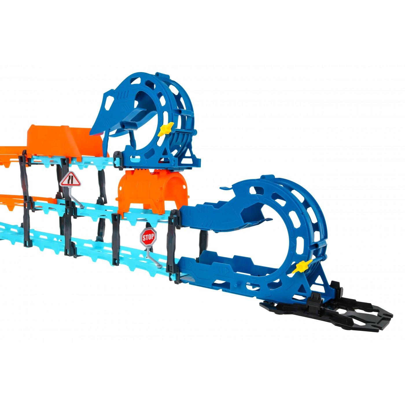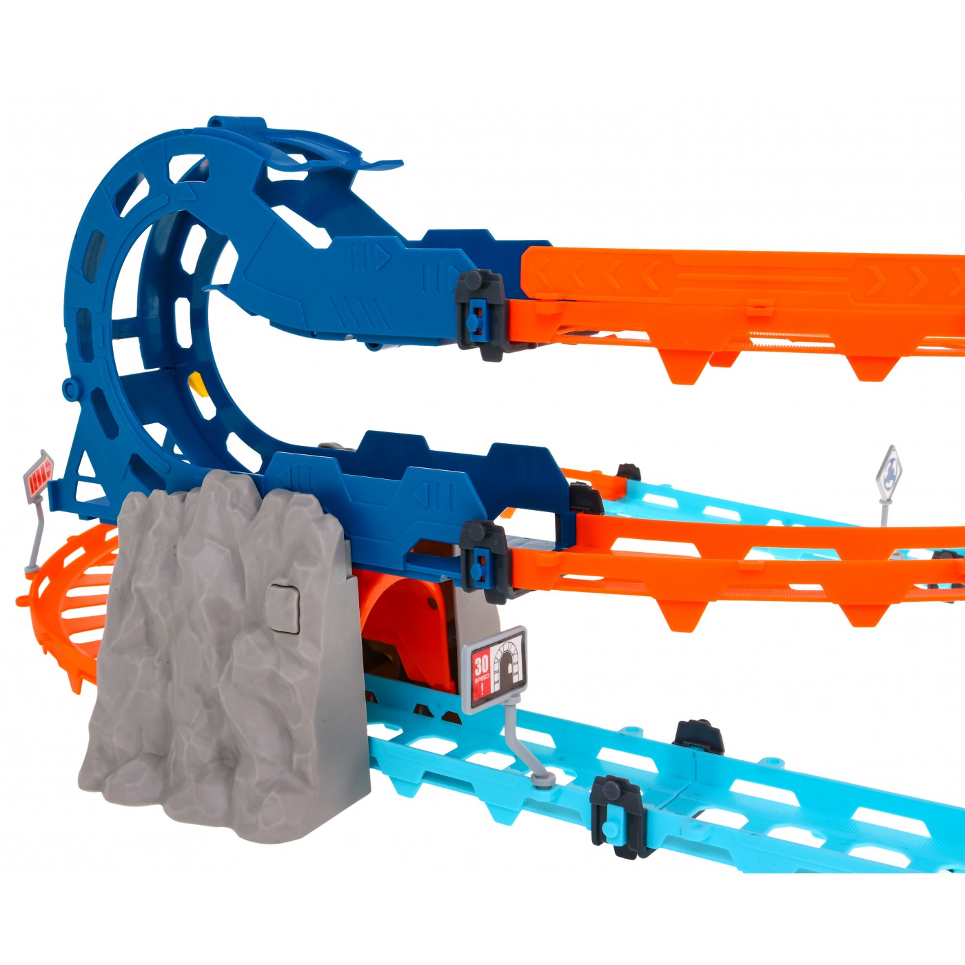 | | Ekstremalny wielopoziomowy tor wyścigowy z funkcją dźwięku i światła to propozycja dla dzieci powyżej trzeciego roku życia. Do zestawu dołączono jeden dwustronny pojazd zasilany akumulatorem typu 3,7V (zestaw zawiera). Samochód mknący po torze wykonuje obrót o 360 stopni, posiada światełka z przodu i gumowe tylne opony. Ładowany jest przez port USB. Tor posiada podświetlany tunel z odgłosami jazdy samochodu rajdowego - zasilanie bateriami typu 3 x AA 1,5V (brak w zestawie). |