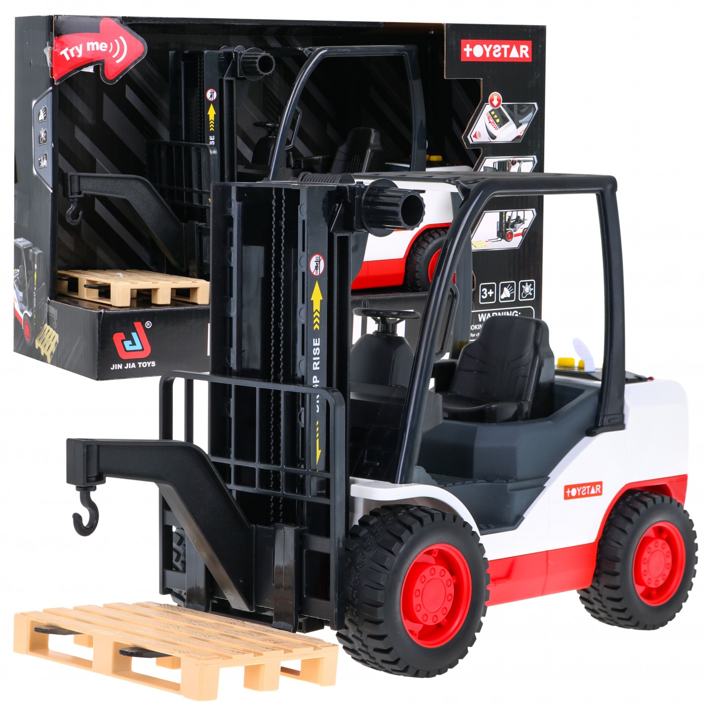Interaktívny vysokozdvižný vozík s pohonom pre deti 3+ Náklad + Pohyblivé vidly hák volant