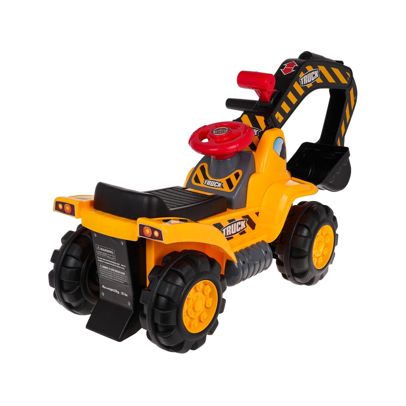 Bager, posúvač pre deti od 3 rokov. Vozidlo má veľké stabilné kolesá a je vyrobené z bezpečných materiálov v živých farbách. Pomocou páky manévrujeme s lyžicou a zbierame piesok. Maximálne zaťaženie rýpadla je 25 kg. Hračka na svojpomocnú montáž.