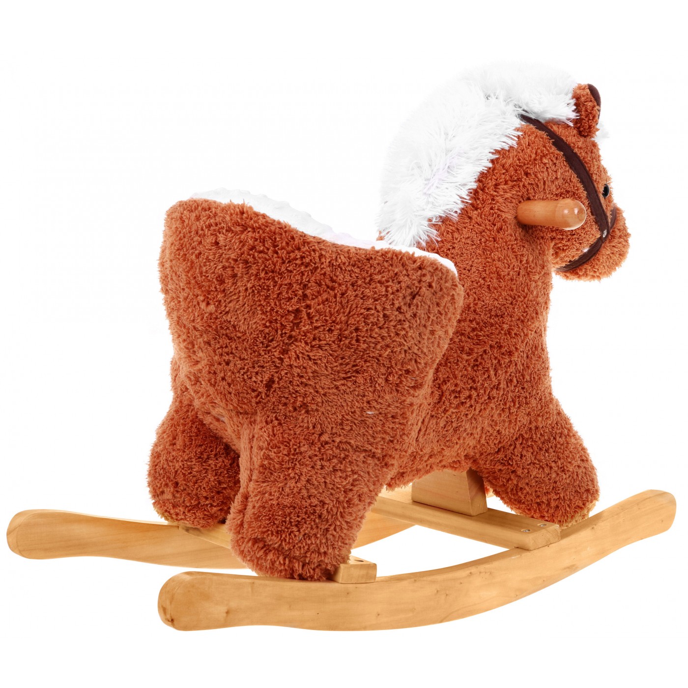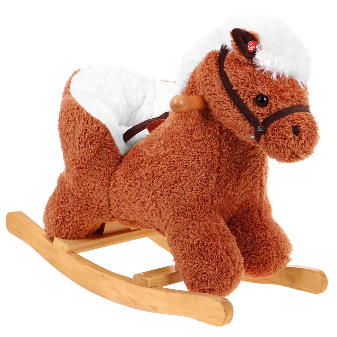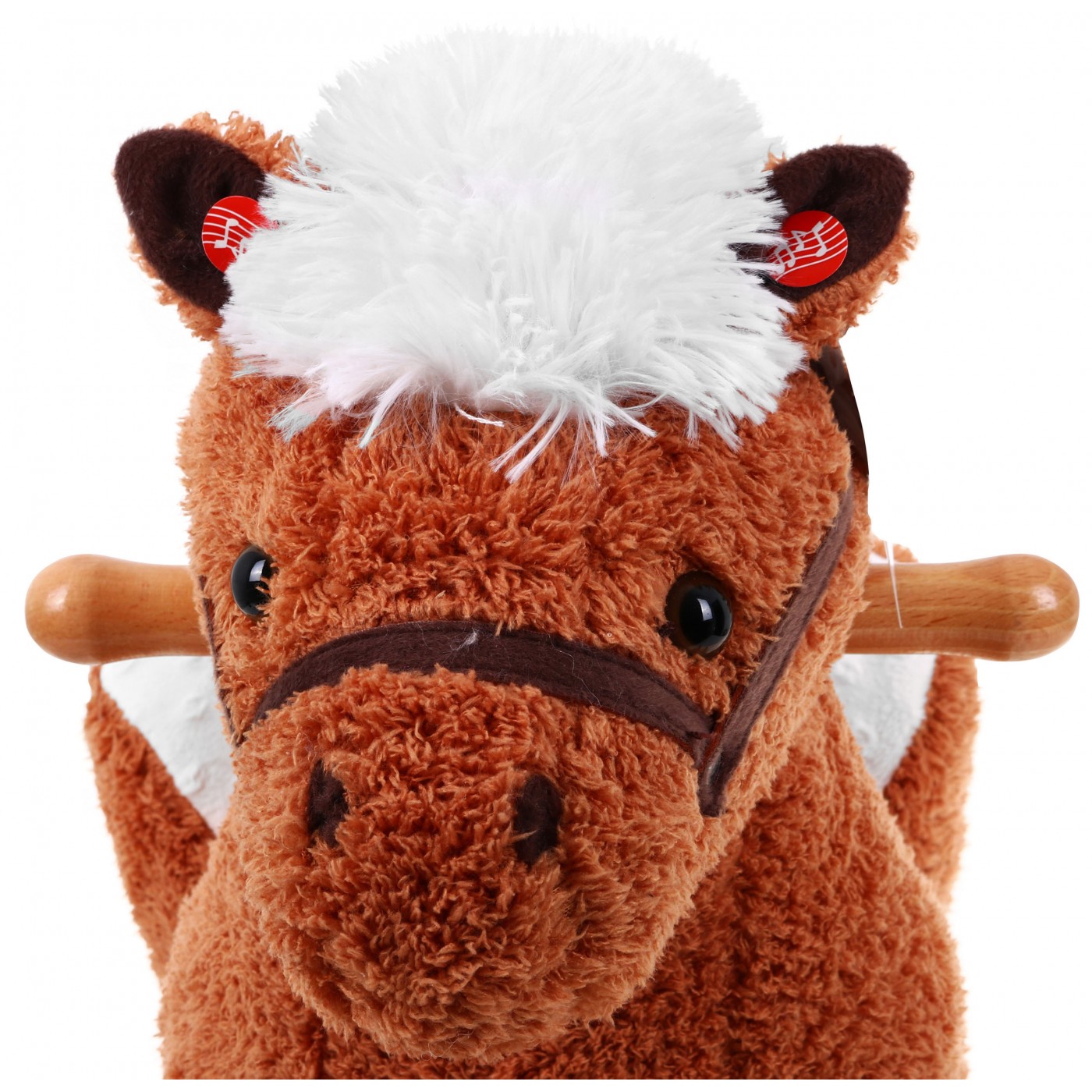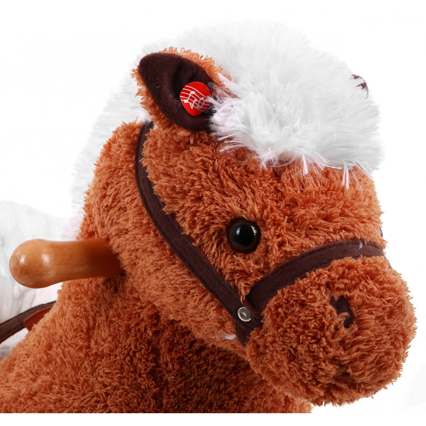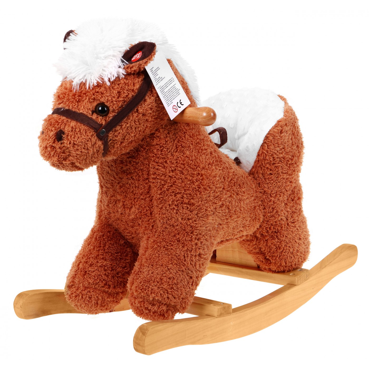 | | Zabawka została wykonana z bardzo miękkiego pluszu, niezwykle miłego w dotyku. Dodatkowym atutem jest wygodne oparcie i pasy, które pozwalają na bezpieczną zabawę. W prawym uchu konika znajduje się czujnik, który po naciśnięciu uruchamia odgłosy galopującego konia i rżenie, odgłosy te powodują, że zabawa staje się bardziej emocjonująca. Natężenie dźwięków zostało właściwie dostosowane do słuchania przez najmłodsze dzieci. Prezentowany konik dla najmłodszych to znakomity prezent dla najbardziej wymagającej pociechy, sprawi wiele radości i dostarczy niezapomnianych wrażeń. Jego niesamowite, piękne oczy zachęcają wszystkich do zabawy. Koń dodatkowo posiada drewniane uchwyty pozwalające na bezpieczną zabawę. Zabawka jest przeznaczona dla dzieci powyżej 1 roku i posiada certyfikat CE. |