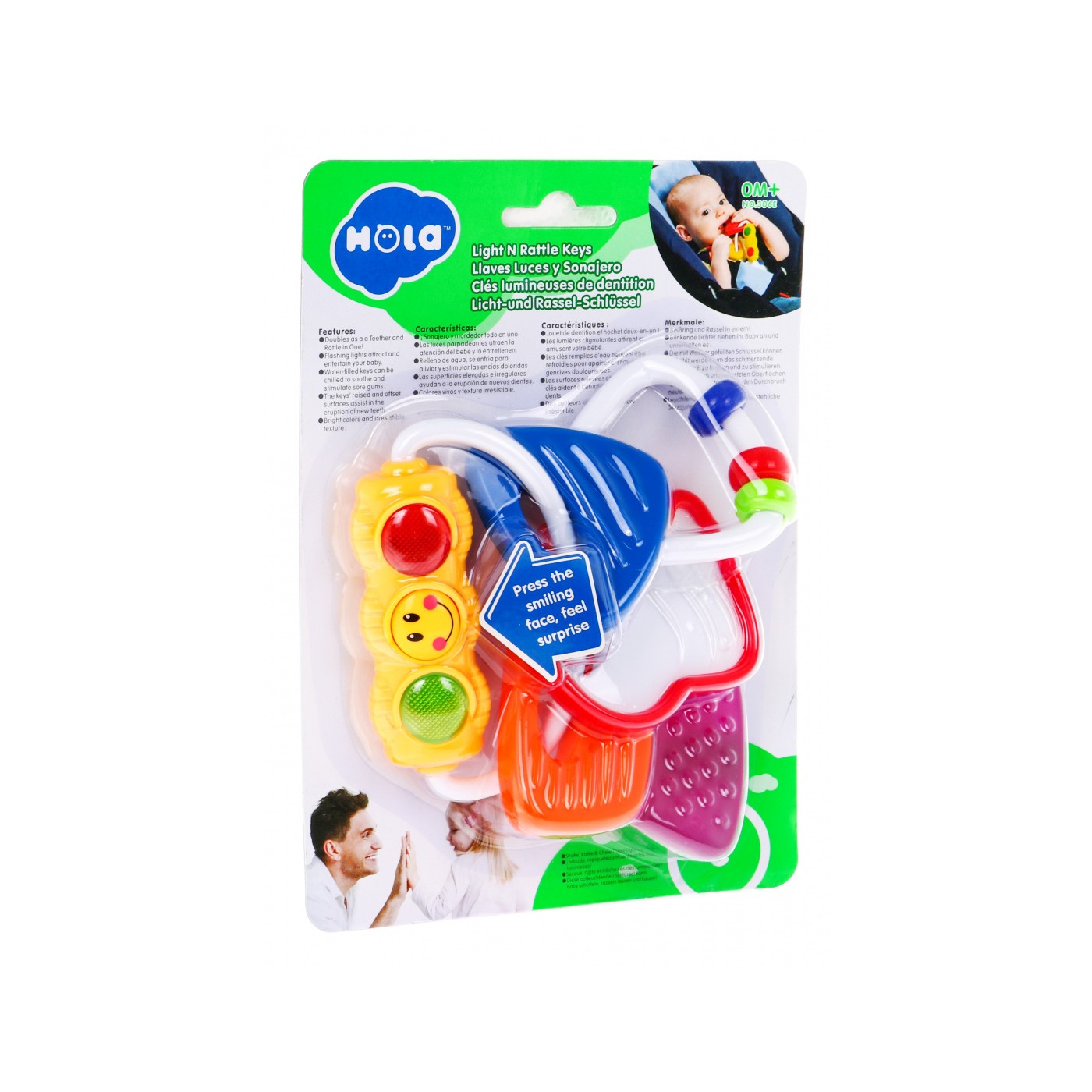 | | Grzechotka - gryzaczek to zabawka dla maluszków od pierwszych dni życia. Grzechotka posiada cztery edukacyjne elementy: 1. gryzaczek, który jest napełniony wodą, co uspakaja obolałe dziąsła pociechy, 2. element w kształcie klucza, który jest pokryty dodatkową fakturą, co pozwala dziecku rozwijać zdolności rozpoznawania przez dotyk, 3. kolejny element to wielobarwne koraliki – bezpieczne, przyciągają uwagę dziecka, 4. ostatni element zaopatrzony został w kolorowe światełka – uruchamiają się po naciśnięciu przycisku z uśmiechniętą buźką zapalają się czerwone i zielone światełka. Zabawka zasilana bateriami typu AG13/LR44x2 - w zestawie. Wymiary: - grzechotka - gryzak ok. 11 cm x 14 cm x 3 cm, - opakowanie ok. 19,5 cm x 14,3 cm x 5 cm. |